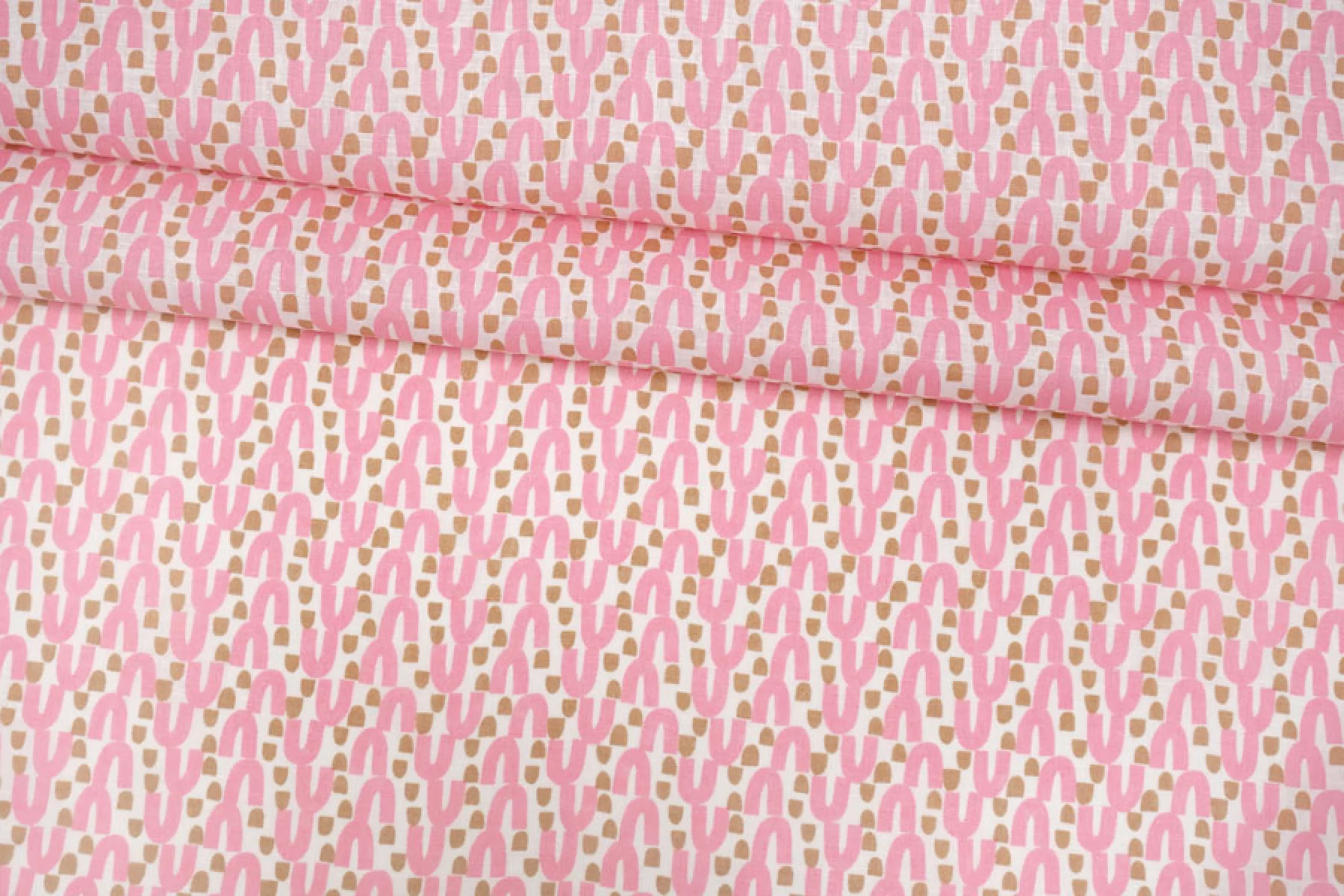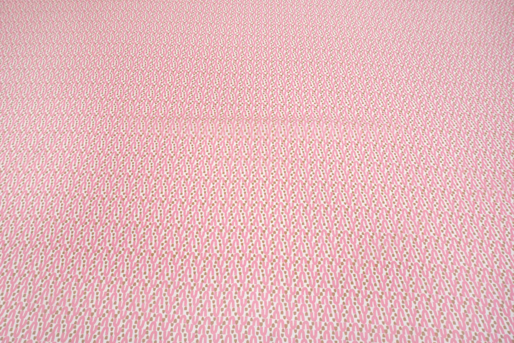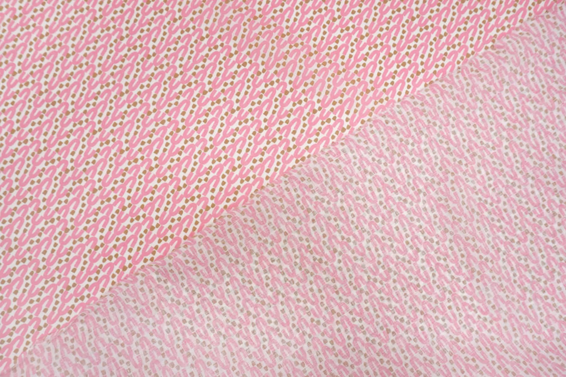 Прекрасный рубашечный лен с хлопком от бренда Max Mara с мелким принтом в виде абстракции розового цвета и цвета охры. Приятная и мягкая наощупь, гладкая. Чуть-чуть тянется плетение. Слегка просвечивает. Сминается. Форму немного держит. Отличный летний вариант на платья или рубашки. Учитывайте возможную усадку.