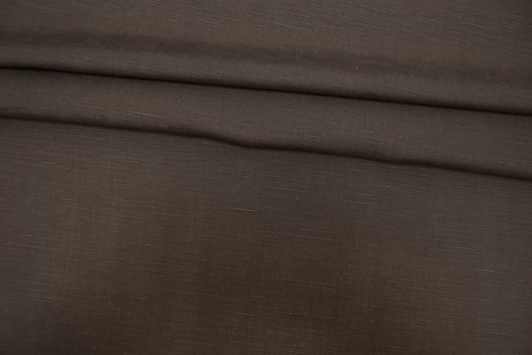 Классная позиция костюмно-плательной плотности лен с добавлением шёлка, полотняного плетения в красивом коричневом оттенке(есть лёгкая белёсость, как у купры), и присутствует тёплый подтон, как у какао. Тактильно мягкий, гладкий и приятный наощупь. С уплотнениями свойственными льну. Не тянется. Немного сминается. Не просвечивает. Отлично подойдет на летние платья, костюмы, юбки, брюки. Уход деликатный. Учитывайте возможную усадку.