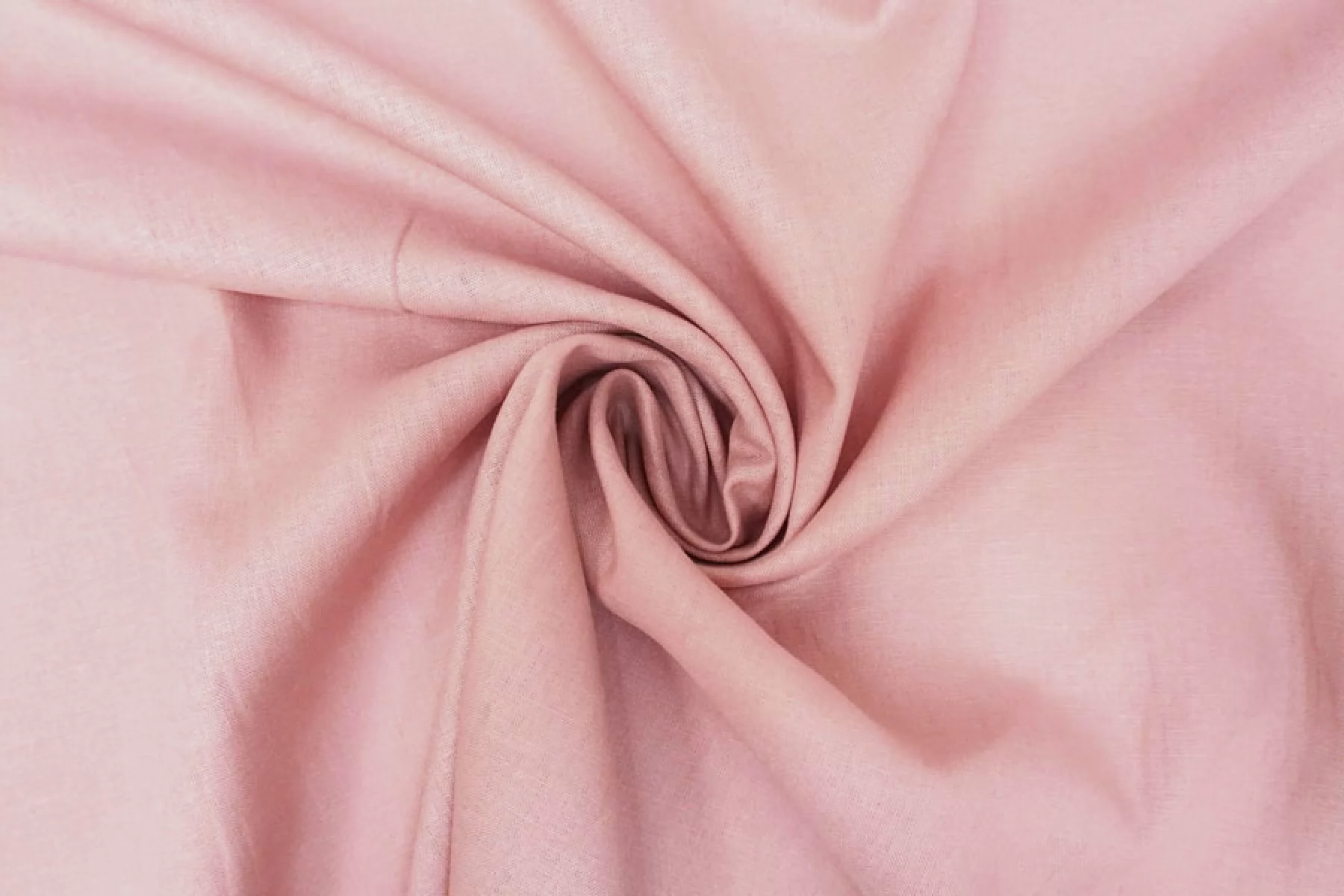 Плательный лён с вискозой полотняного плетения розового цвета. Материал мягкий, гладкий, с красивыми пластикой и блеском. Есть уплотнения свойственные льну. Мнется. Просвечивает. Плетение не плотное. Не тянется. Прекрасно подойдет на платья, рубашки, юбки и кимоно.