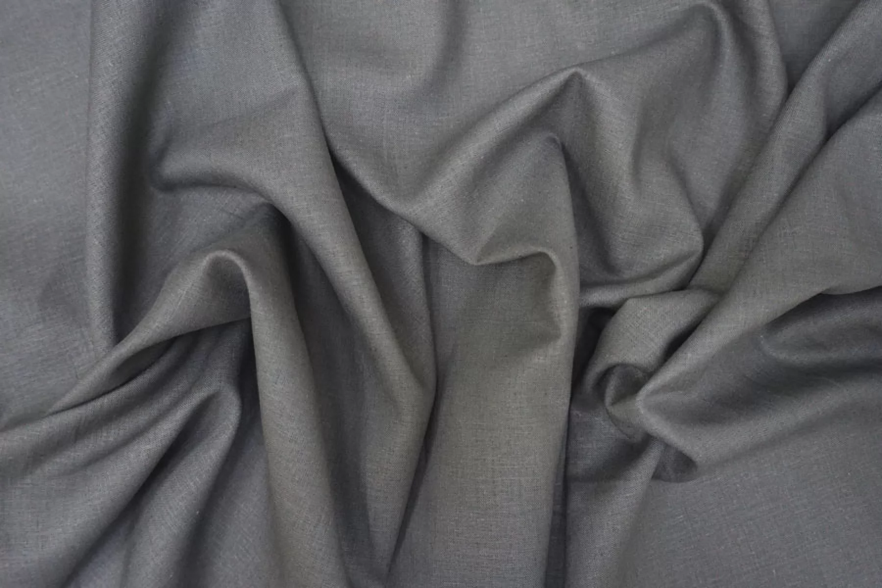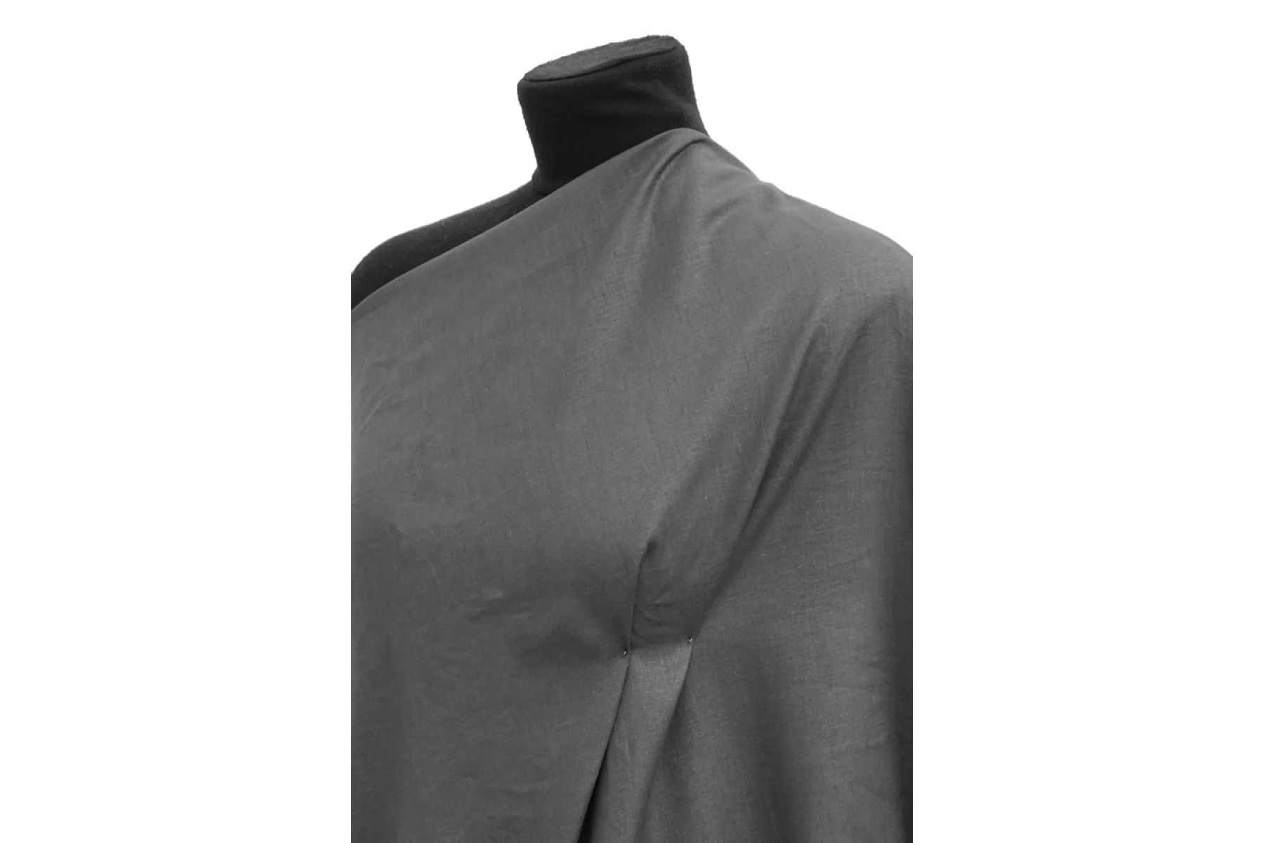 Плательный лён с вискозой полотняного плетения серого цвета. Материал мягкий, гладкий, с красивыми пластикой и блеском. Есть уплотнения свойственные льну. Мнется. Просвечивает. Плетение не плотное. Не тянется. Прекрасно подойдет на платья, рубашки, юбки и кимоно.