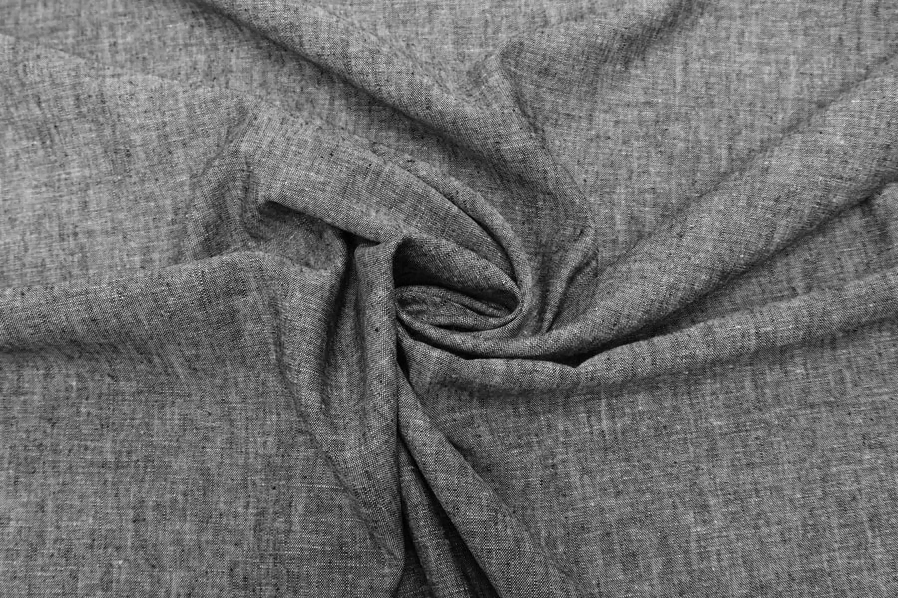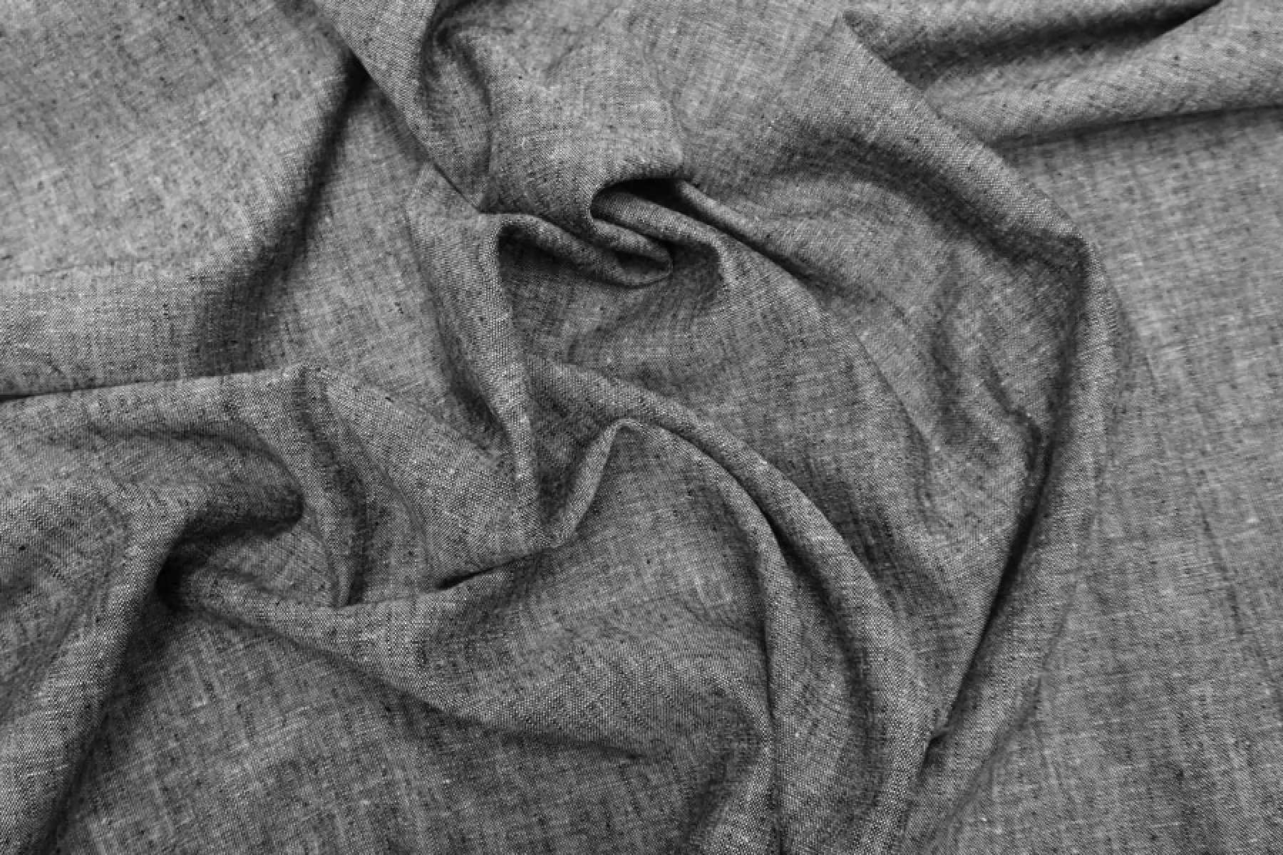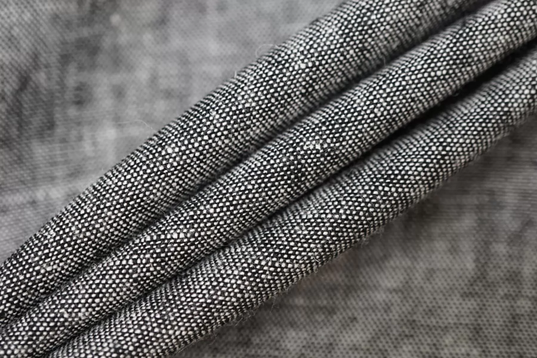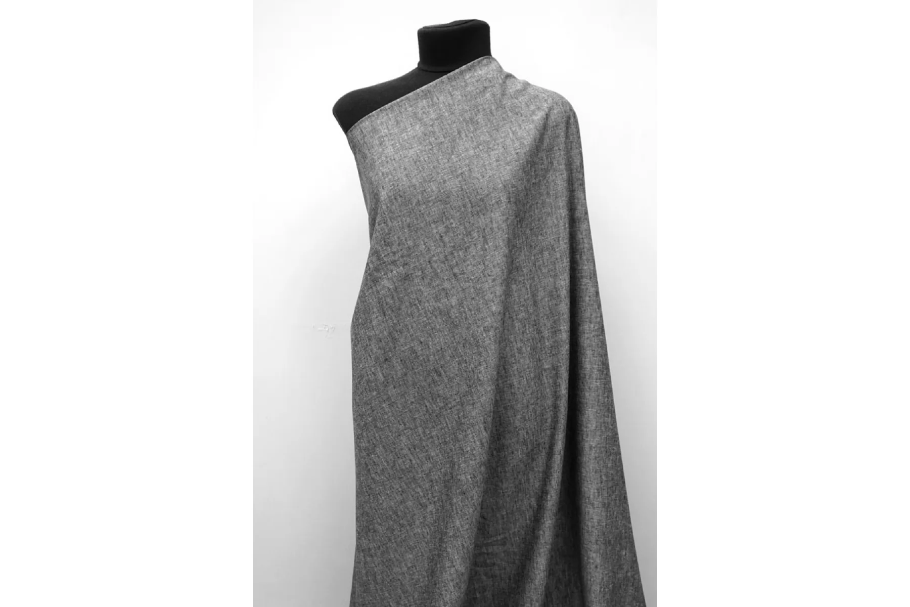 Плательно-костюмный хлопок с добавлением льна и вискозы, нити черного и белого цвета. Напоминает твид. С классическими для льна утолщениями нити. Не тянется, не просвечивает. Мягкий, тактильно слегка суховат, сминаемость средняя. Пластичный, форму практически не держит. Вариант на летние костюмы, платья, рубашки, юбки и не только. Если кожа чувствительная, может понадобиться подкладка.