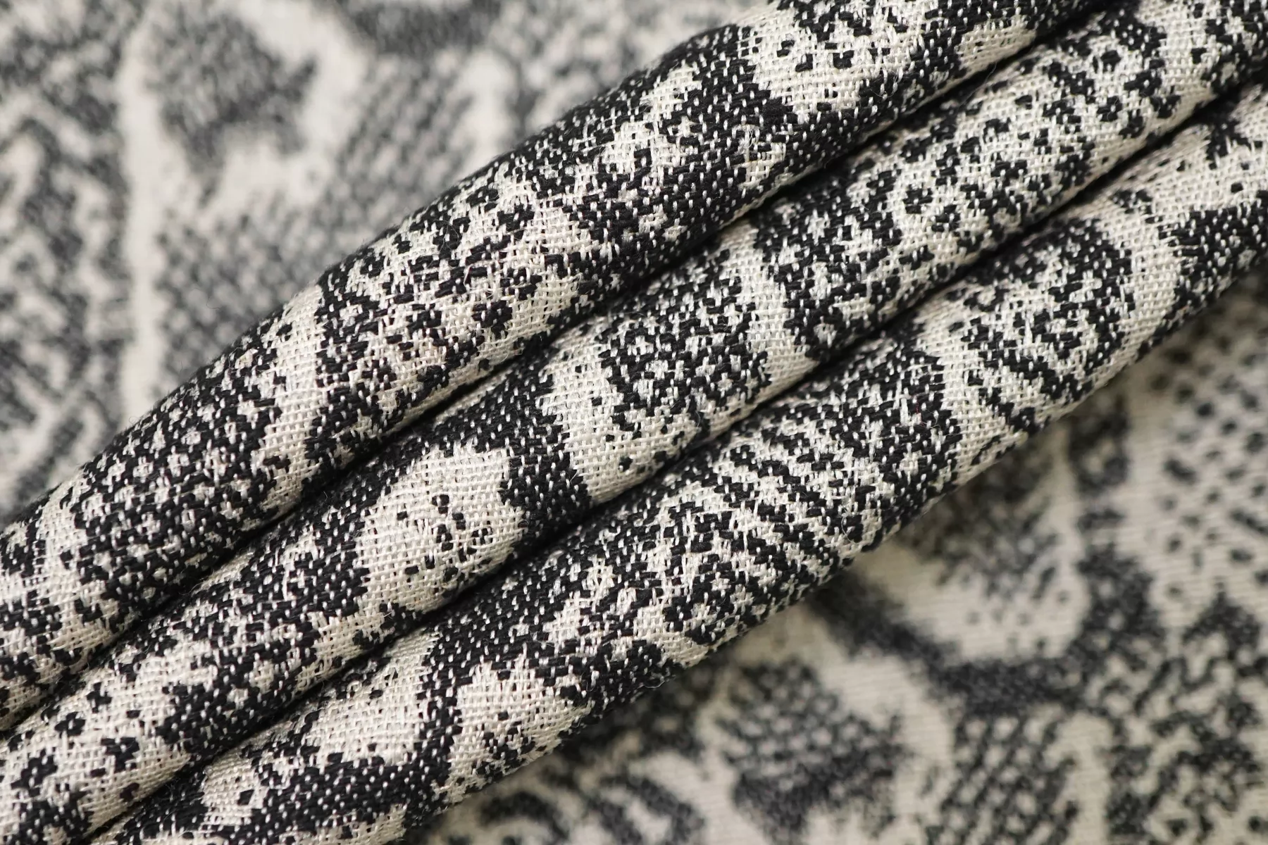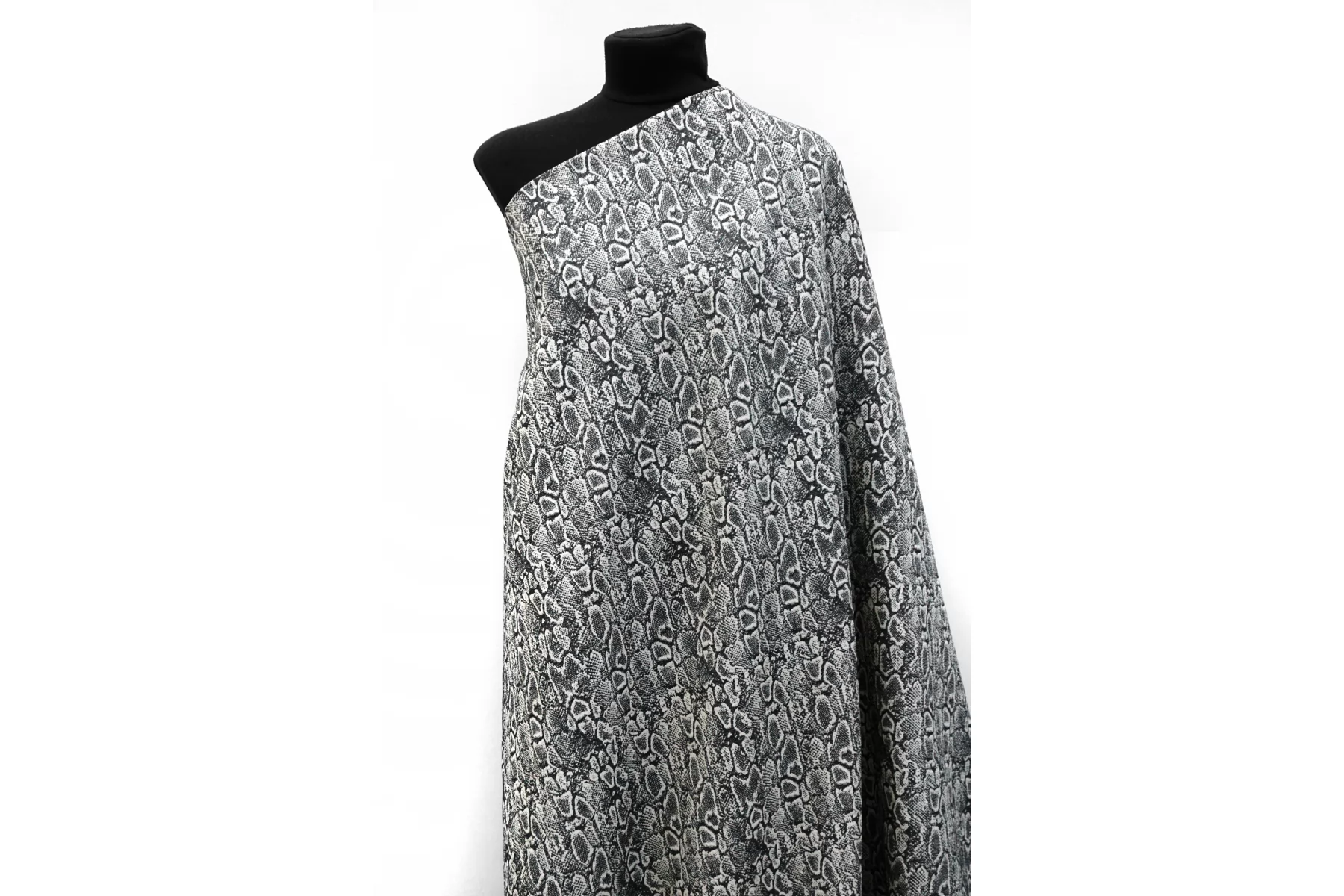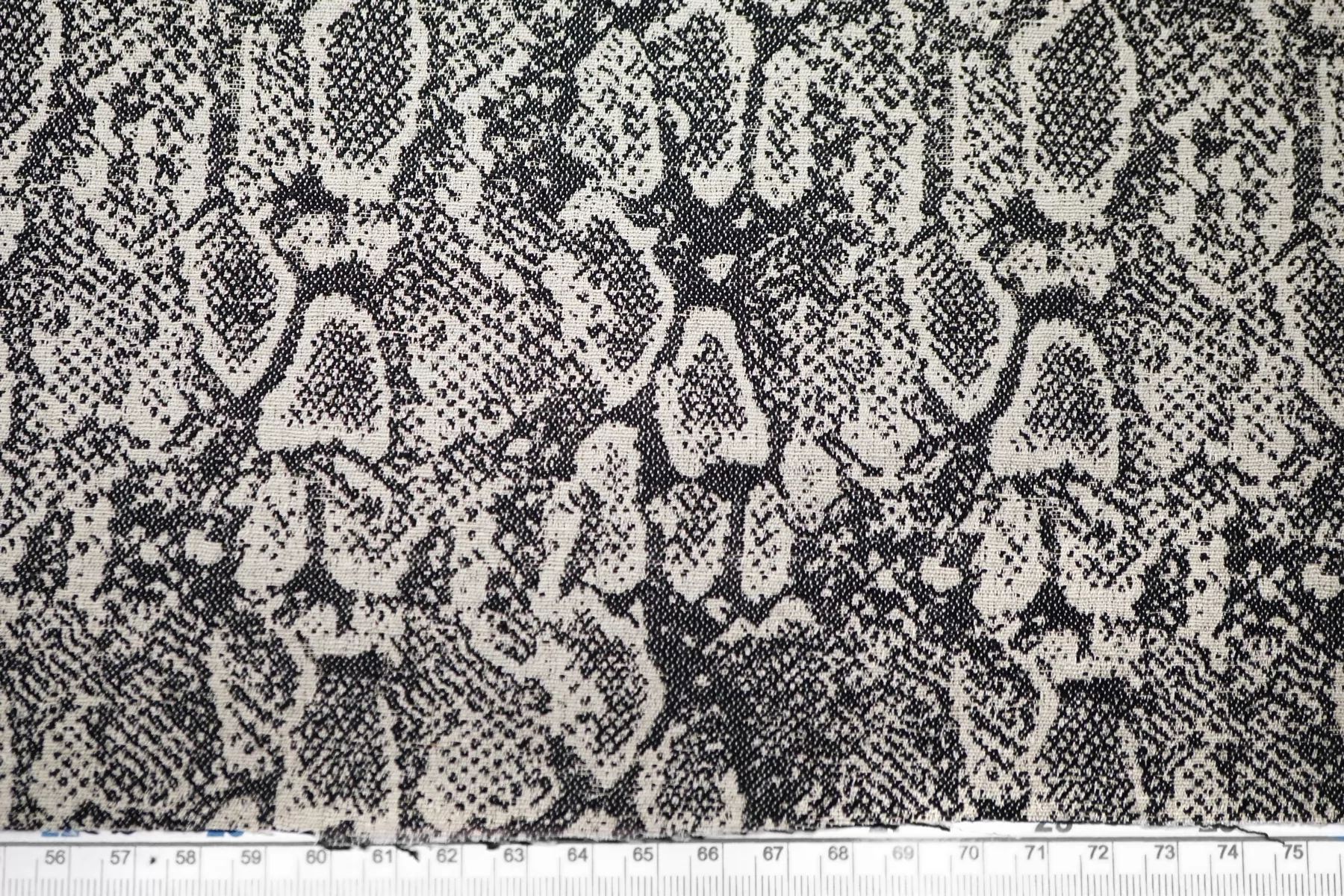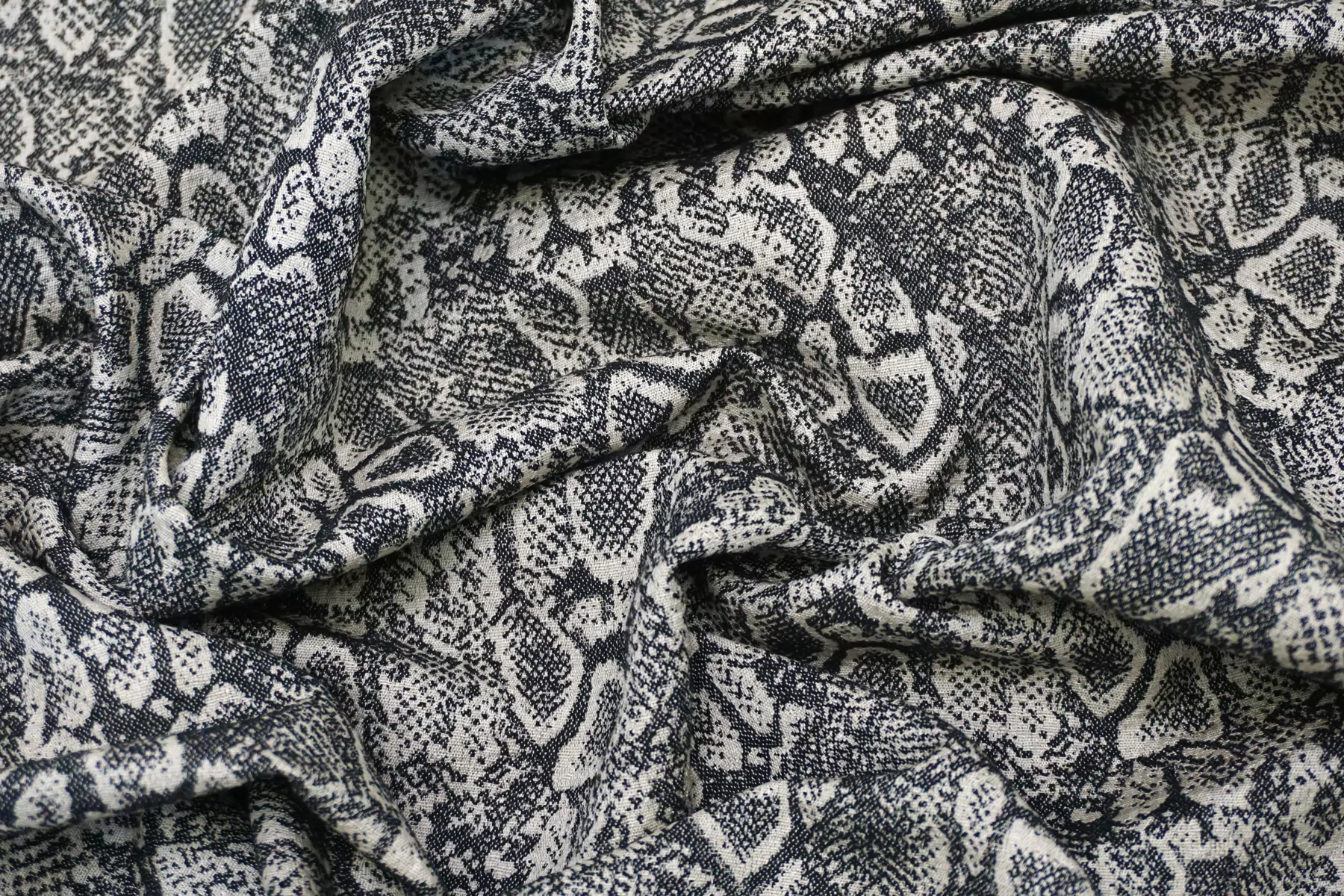 Очень интересный лен костюмно-плательной плотности с жаккардовой анималистичной выработкой из переплетения нитей молочно-бежевого и черного цвета. С красивым лоском. Тактильно материал тонкий, суховатый, слегка чувствуется фактурность плетения, приятный. Плетение достаточно плотное, не рыхлое. Хорошо держит форму. Не просвечивает. Не тянется, практически не мнется. Красив в пластике. Шьем костюм, платье, юбку, жакет и не только. При необходимости используйте подкладочный вариант.