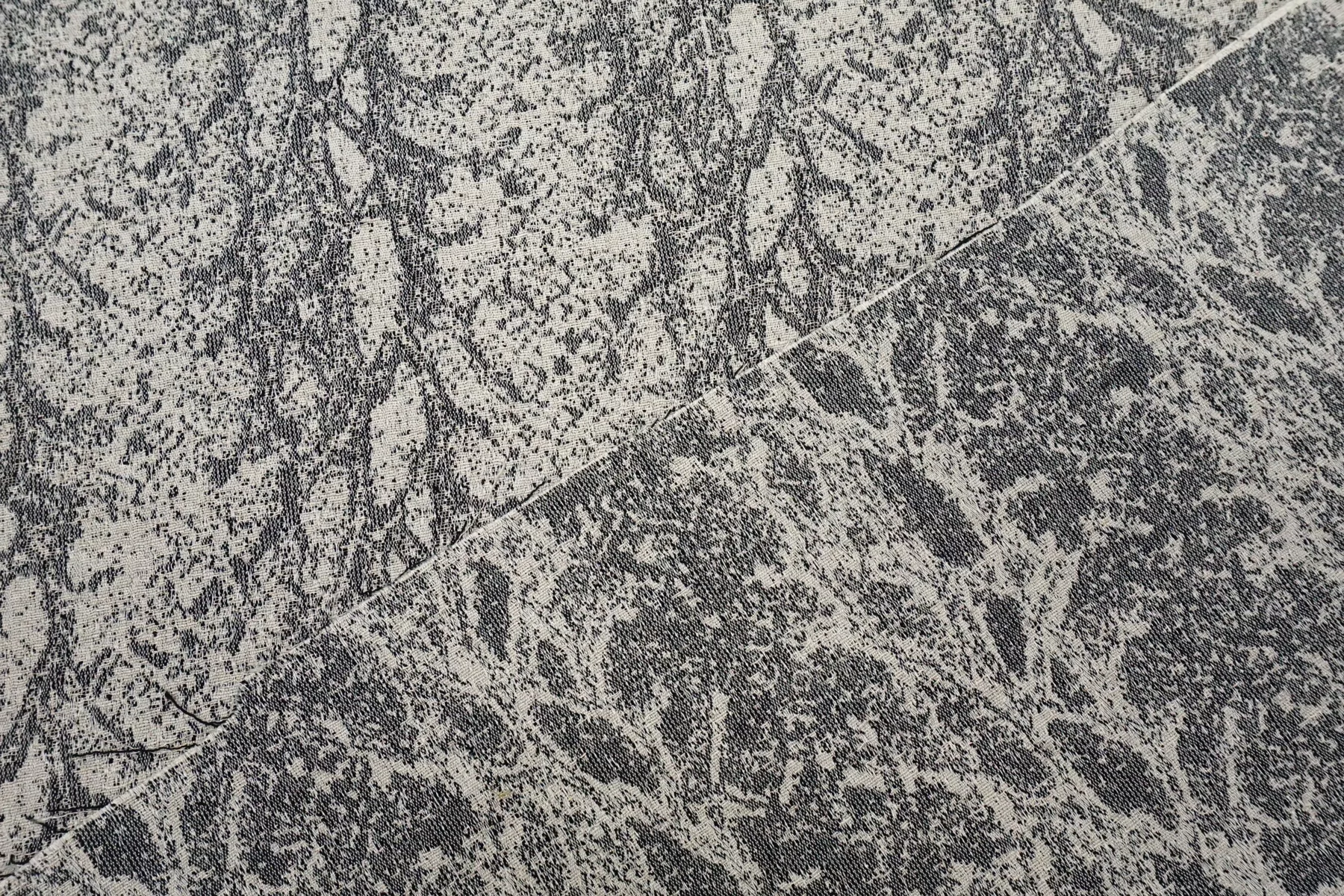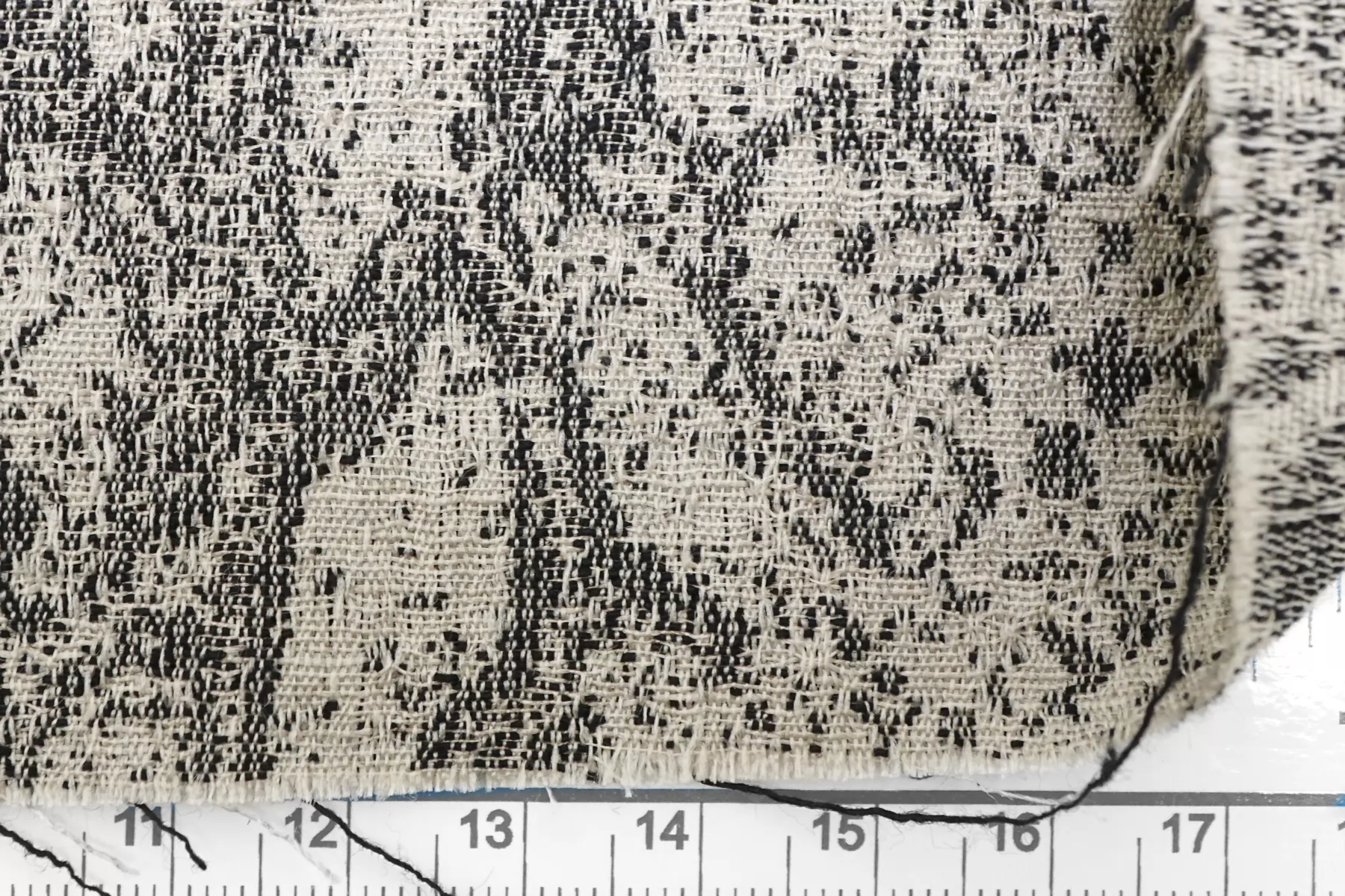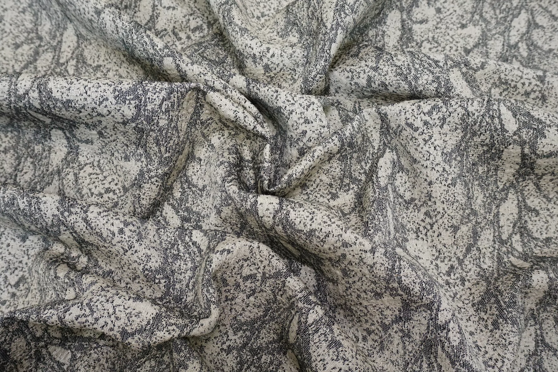Очень интересный лен костюмно-плательной плотности с жаккардовой анималистичной выработкой из переплетения нитей молочно-бежевого и черного цвета. С красивым лоском. Тактильно материал тонкий, суховатый, слегка чувствуется фактурность плетения, приятный. Плетение достаточно плотное, не рыхлое. Хорошо держит форму. Не просвечивает. Не тянется, практически не мнется. Красив в пластике. Шьем костюм, платье, юбку, жакет и не только. При необходимости используйте подкладочный вариант.