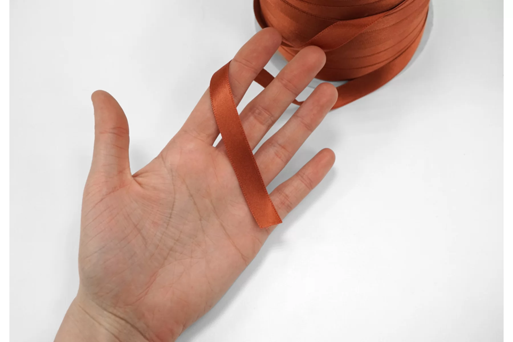 Лента атласная терракотового цвета, мягкая и приятная на ощупь. Используется для украшения и отделки одежды, рукоделия, в скрапбукинге, в изготовлении цветов и тд. Ширина 1.2 см.