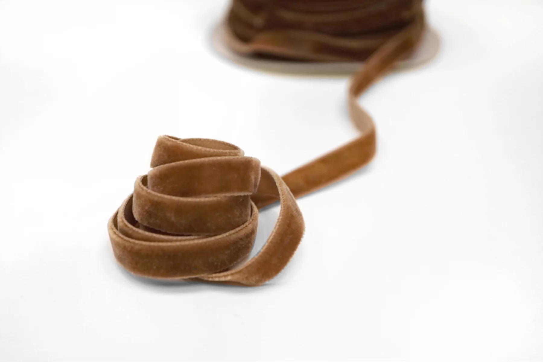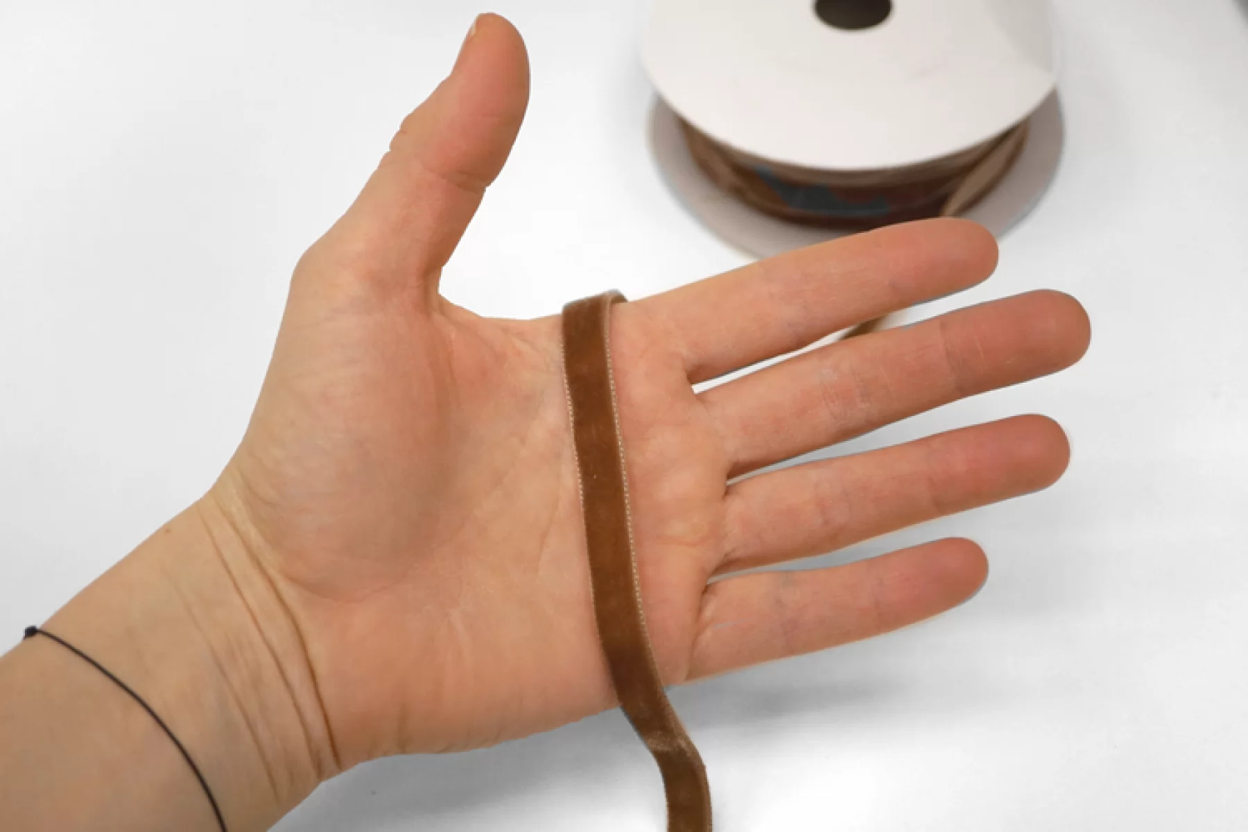 Бархатная лента шириной 10 мм в оттенке какао, не тянется, плотная.