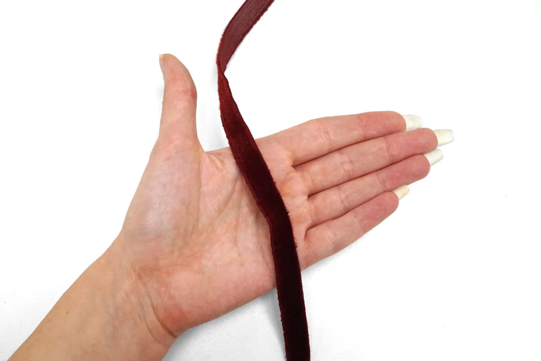Бархатная лента шириной 12 мм темно-красного оттенка , не тянется, плотная.