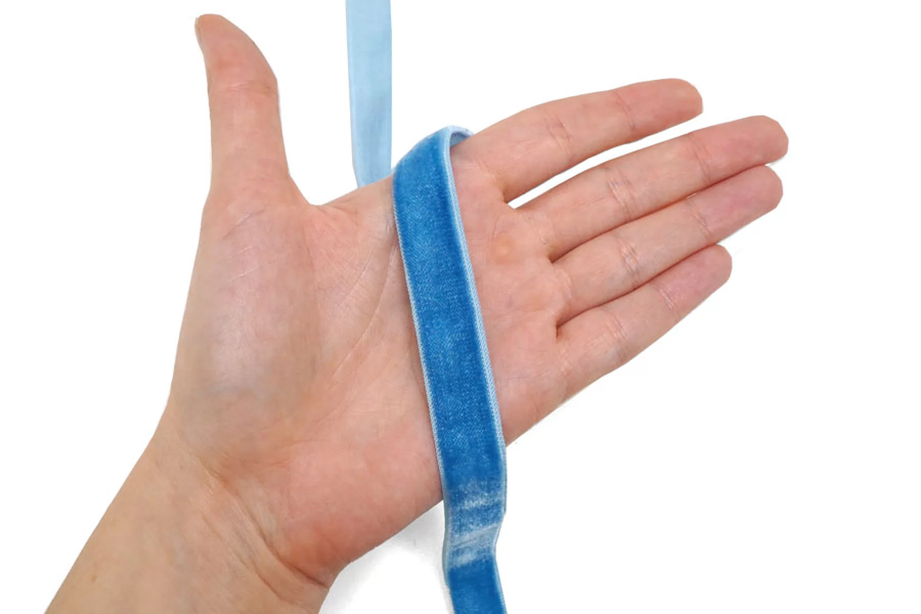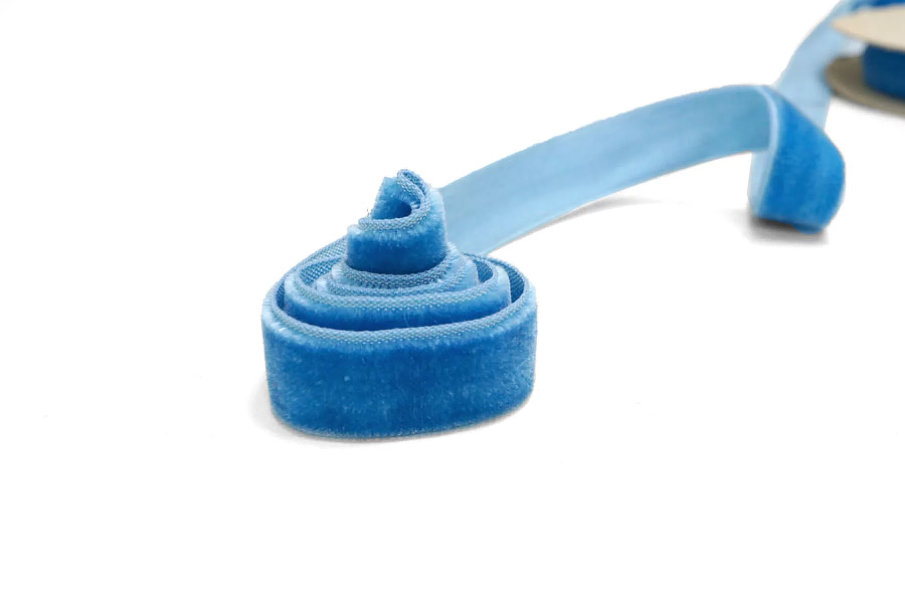 Бархатная лента шириной 15 мм голубого оттенка , не тянется, плотная.