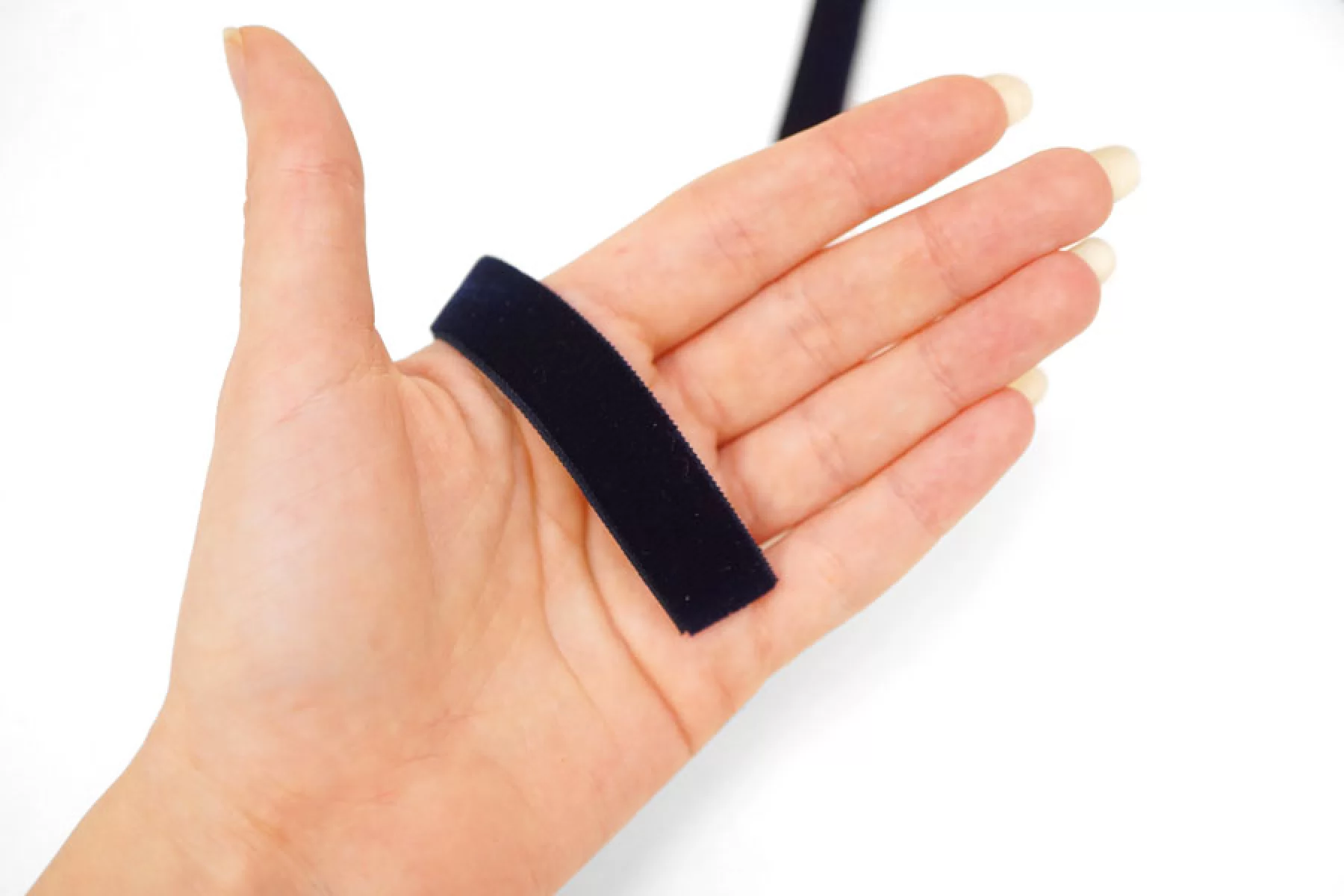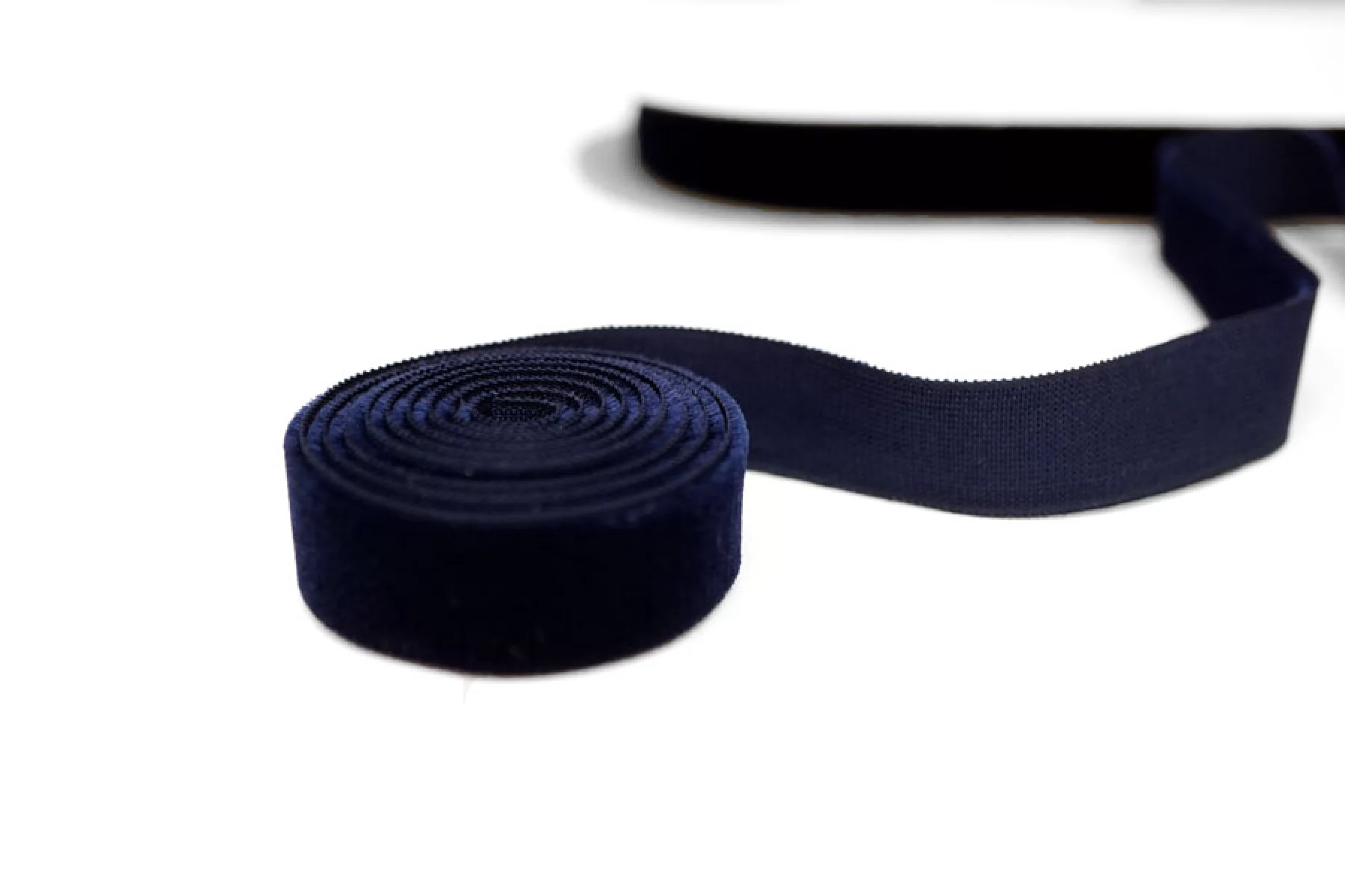 Бархатная лента шириной 15 мм темно-синего цвета, не тянется, плотная.
