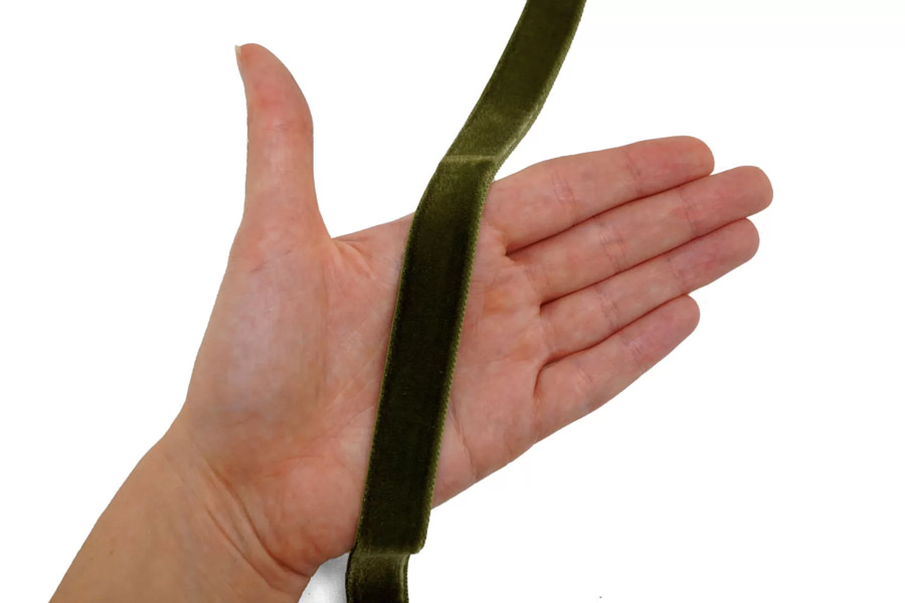 Бархатная лента шириной 16 мм зеленого оттенка , не тянется, плотная.