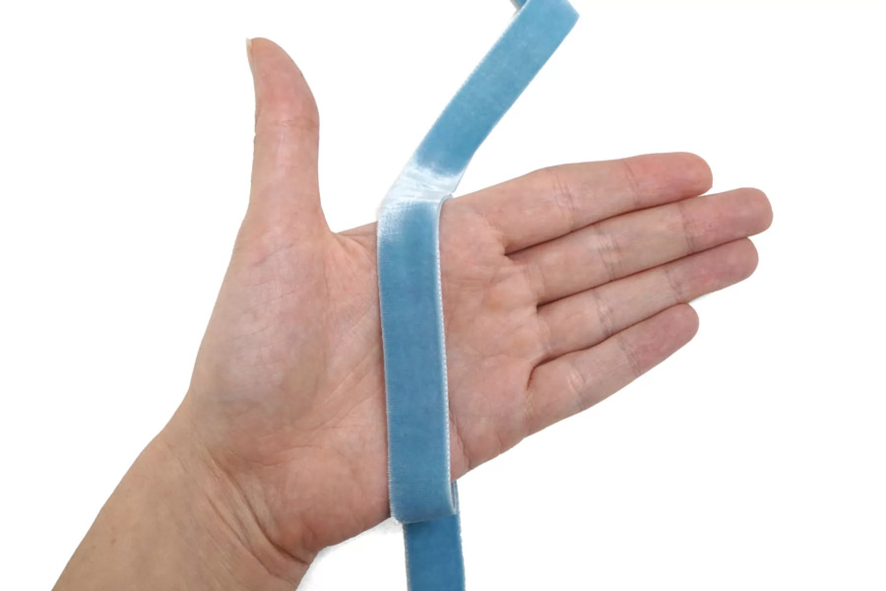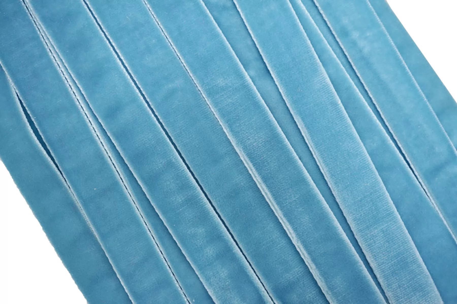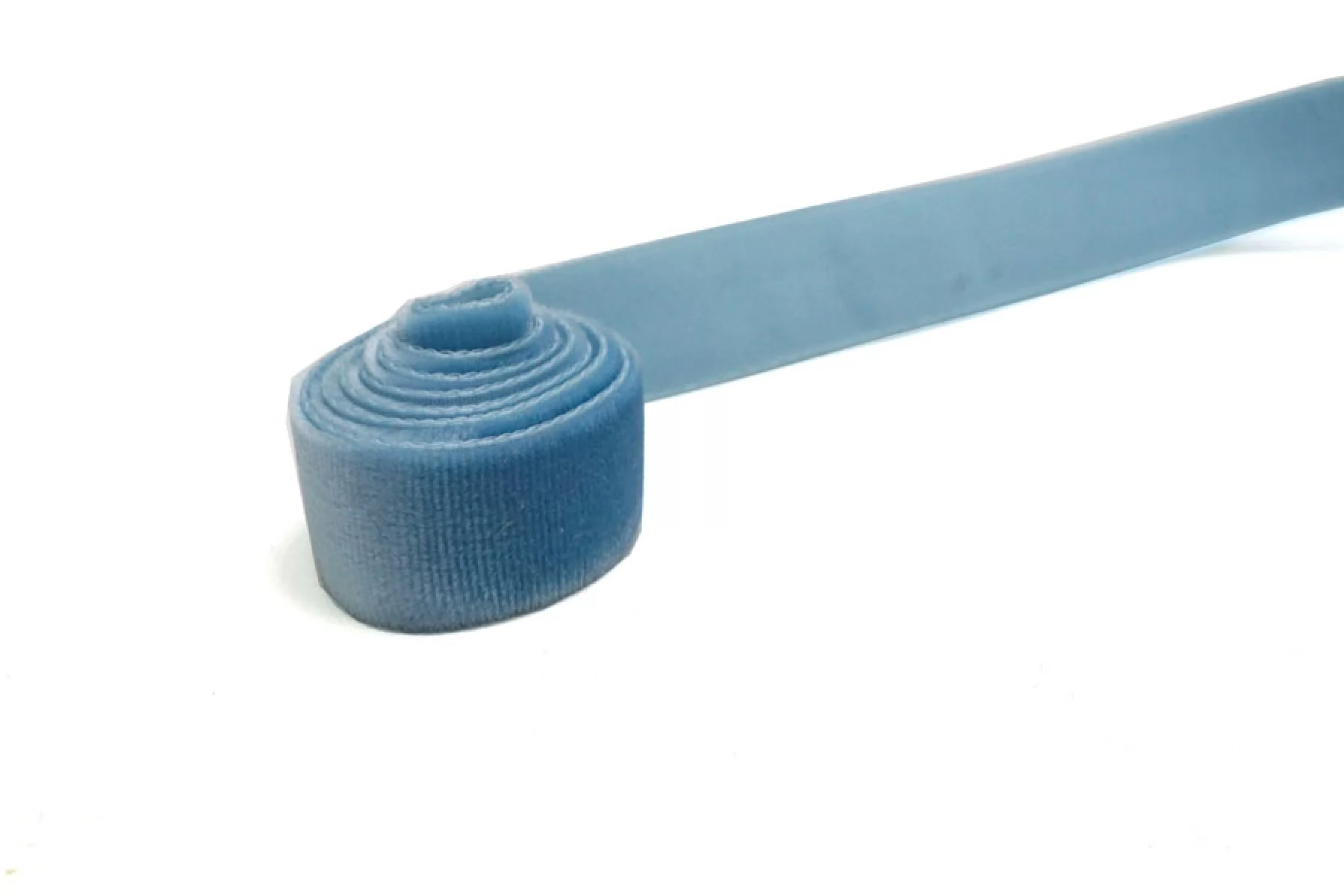 Бархатная лента шириной 16 мм голубого оттенка , не тянется, плотная.