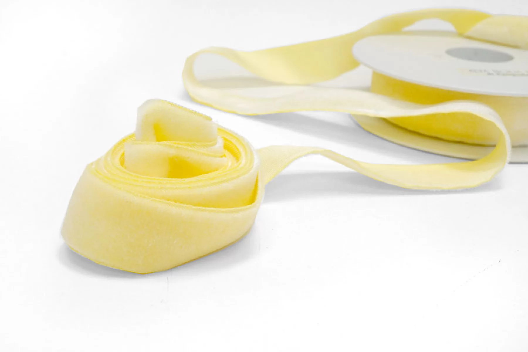 Бархатная лента шириной 23 мм бледно-желтого оттенка , не тянется, плотная.