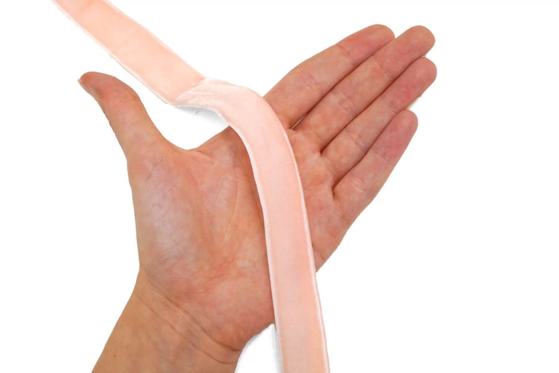 Бархатная лента шириной 23 мм светло-розового оттенка , не тянется, плотная.