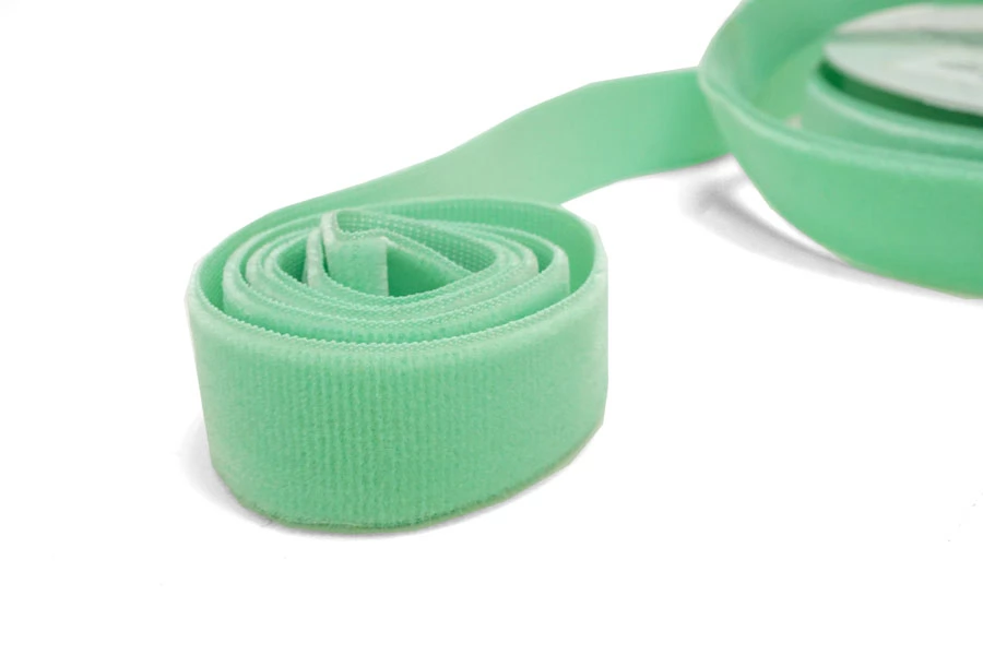 Бархатная лента шириной 23 мм светло-зеленого оттенка , не тянется, плотная.