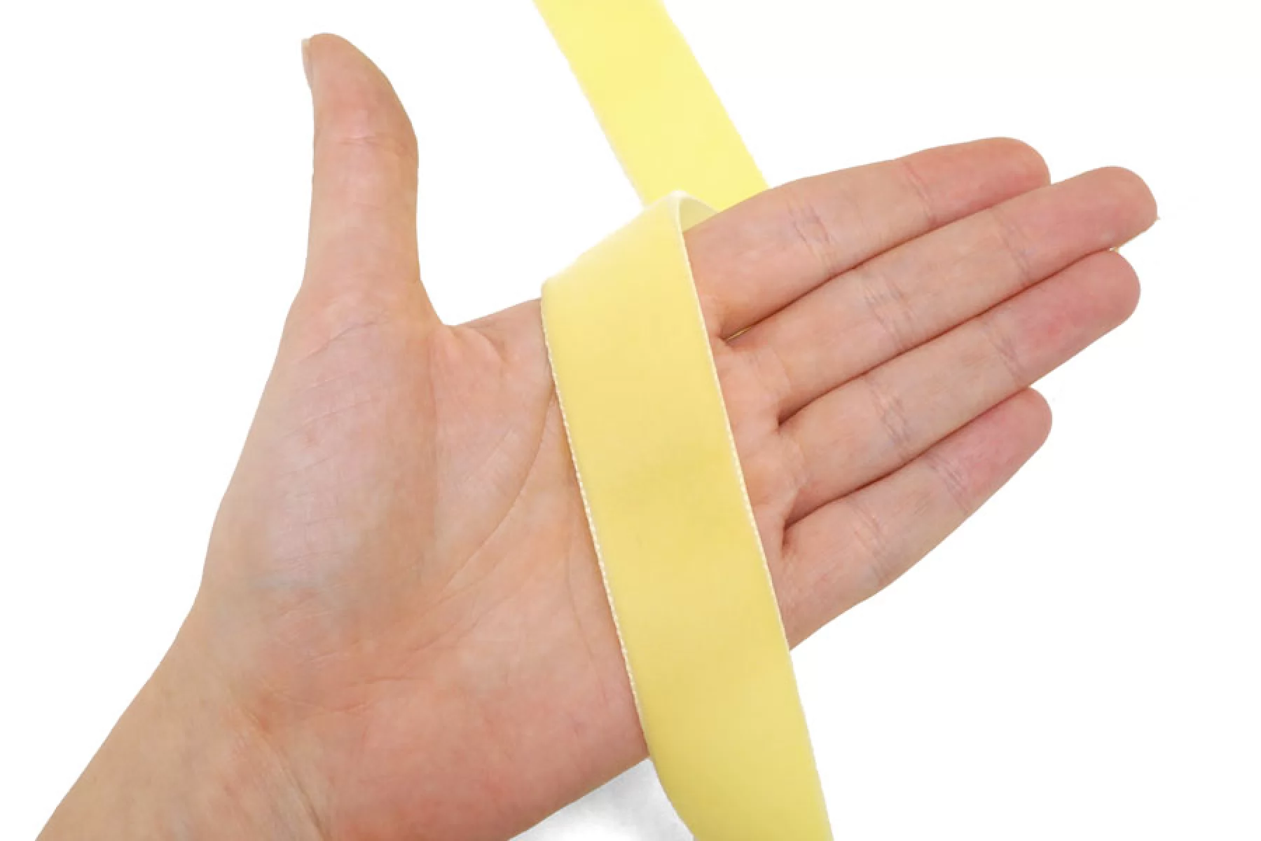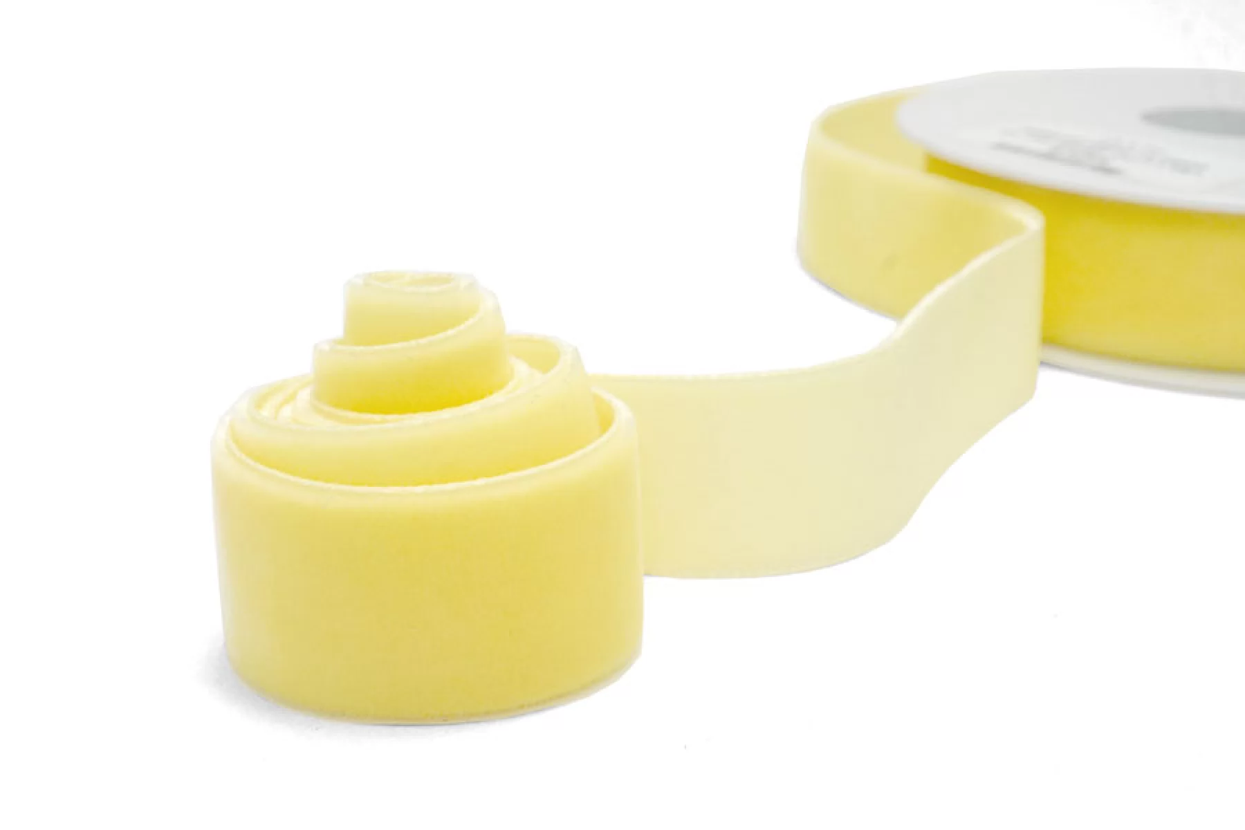 Бархатная лента шириной 23 мм желтого оттенка , не тянется, плотная.