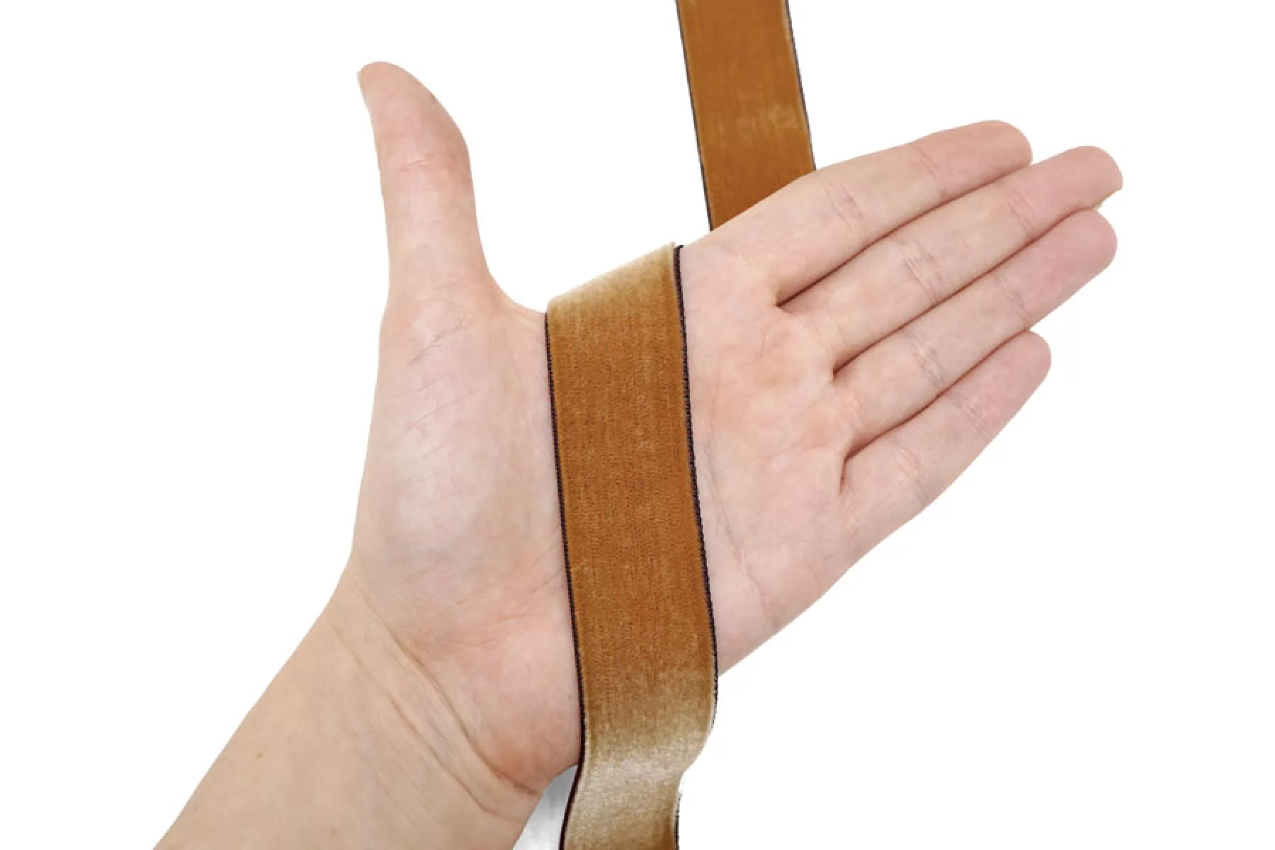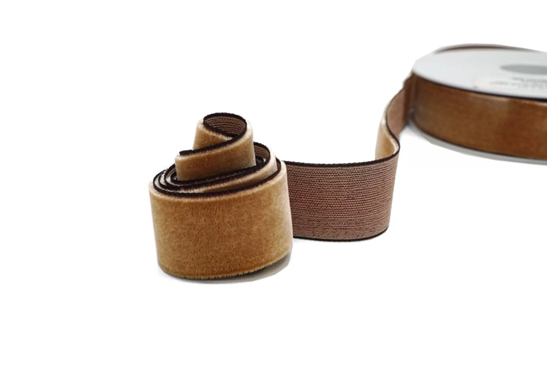 Бархатная лента шириной 25 мм светло-коричневого оттенка , не тянется, плотная.