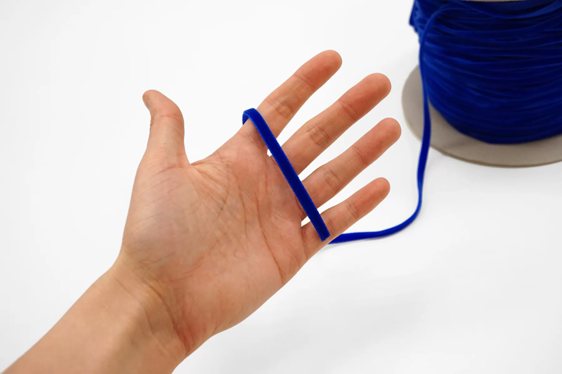 Бархатная лента, синего цвета, ширина 5 мм. Подойдет для декорирования одежды, аксессуаров и бижутерии.