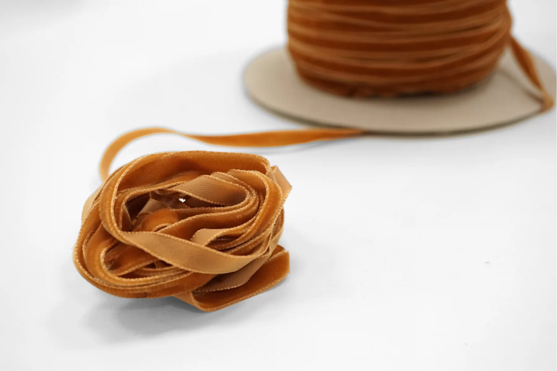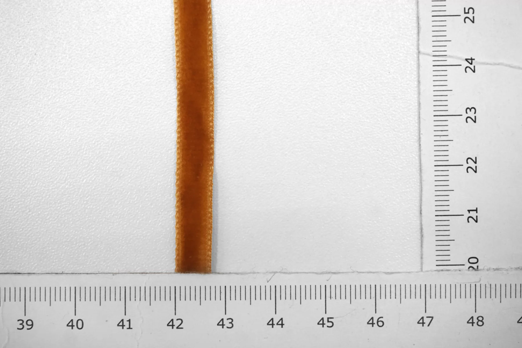 Бархатная лента, темно-оранжевого цвета, ширина 5 мм. Подойдет для декорирования одежды, аксессуаров и бижутерии.