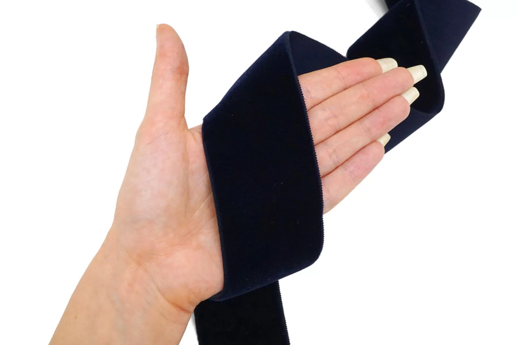 Бархатная лента шириной 50 мм темно-синего оттенка, не тянется, плотная.