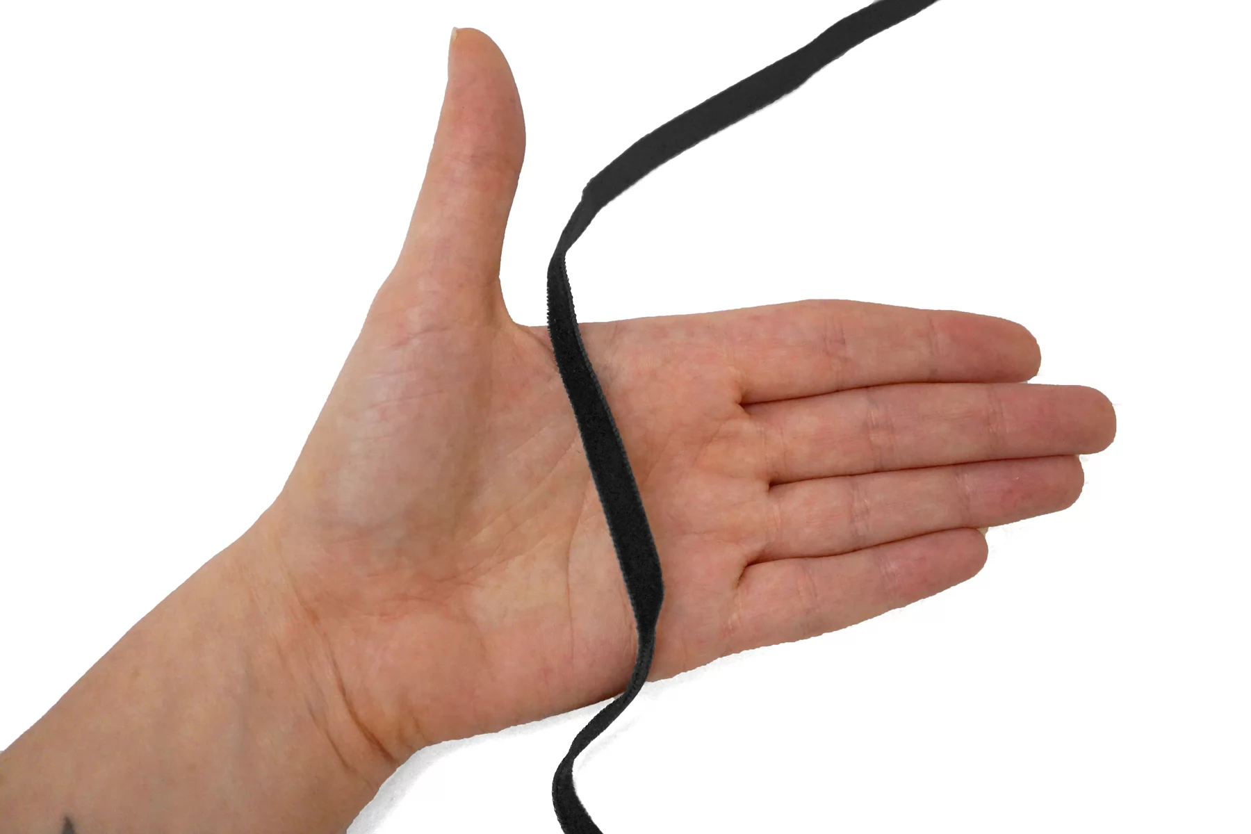 Бархатная лента шириной 7 мм черного цвета , не тянется, плотная.