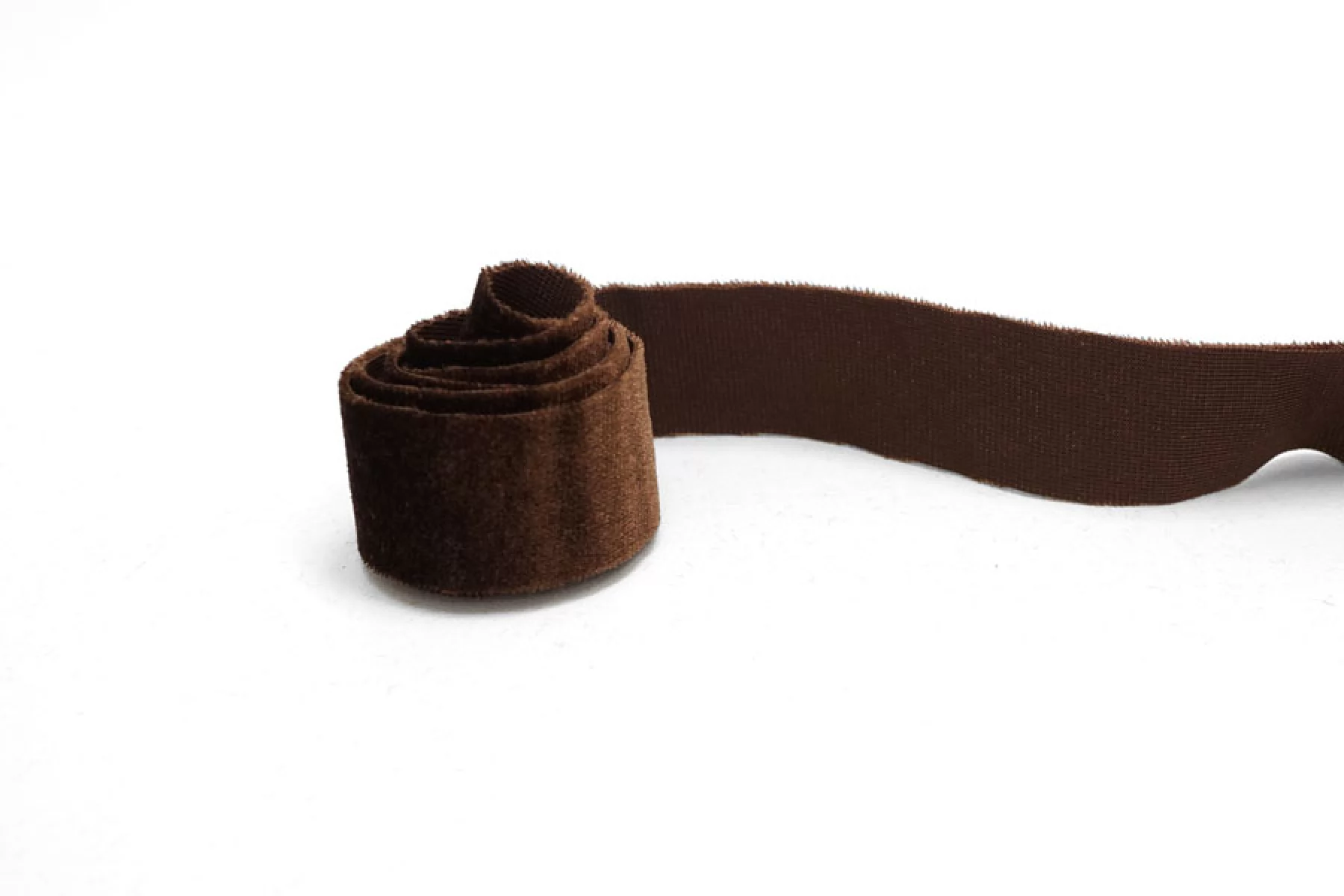 Бархатная трикотажная лента шириной 20 мм коричневого цвета , тянется, плотная.