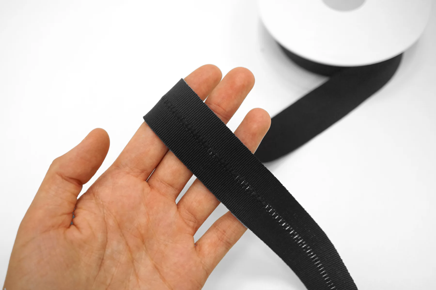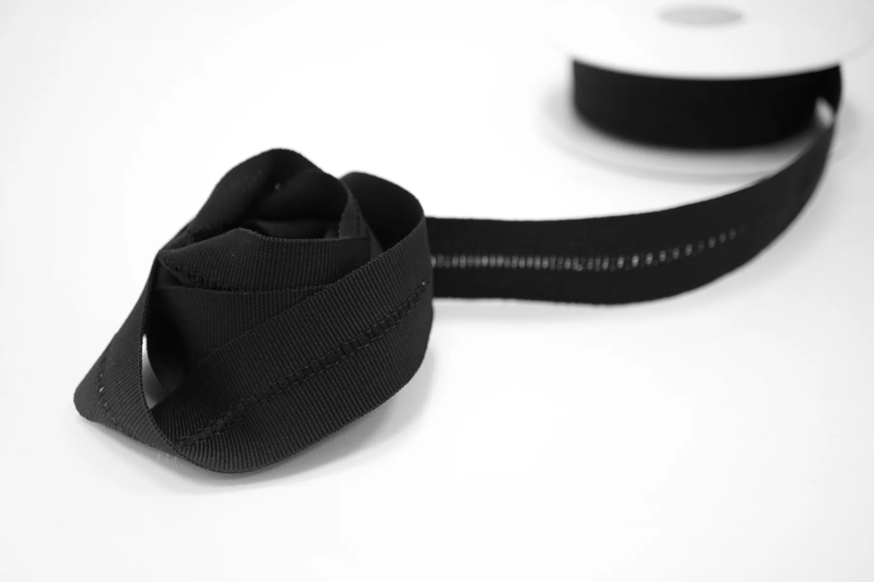 Репсовая лента для швов черного цвета. Ширина 2,6 см. Прочная трикотажная лента необходима для укрепления швов, на линии которых приходится большая нагрузка при носке. Этот окантовочный материал предотвращает расхождение швов и защищает от предварительной деформации.
