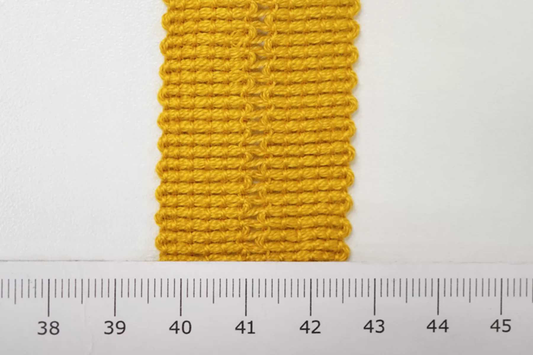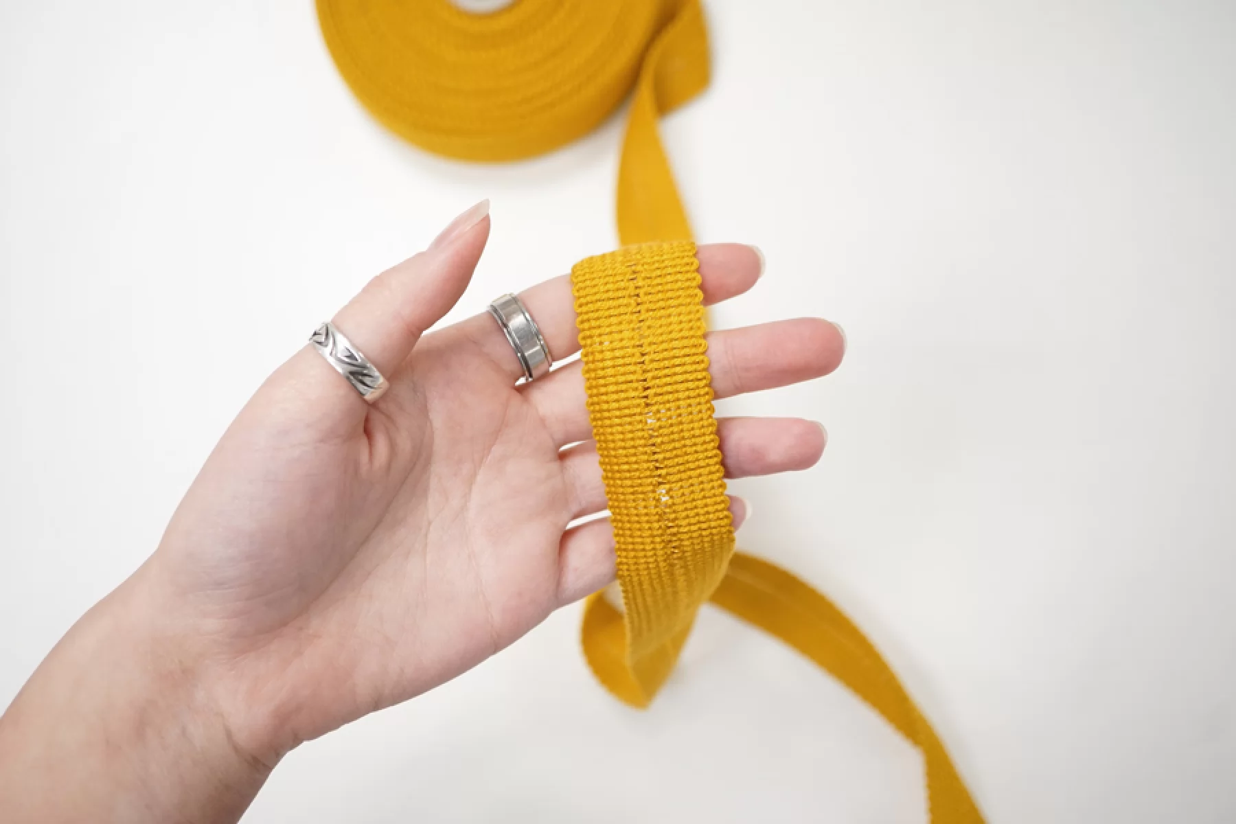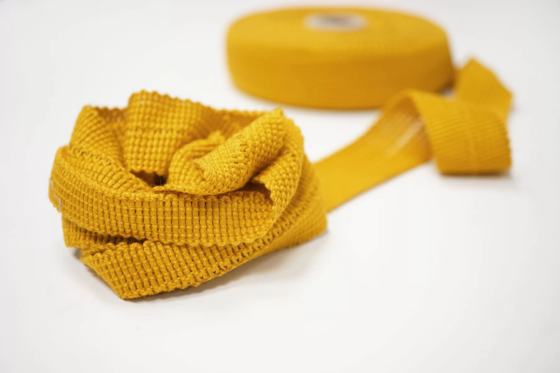 Трикотажная лента для швов горчичного цвета. Ширина 3 см. Прочная трикотажная лента необходима для укрепления швов, на линии которых приходится большая нагрузка при носке. Этот окантовочный материал предотвращает расхождение швов и защищает от предварительной деформации.