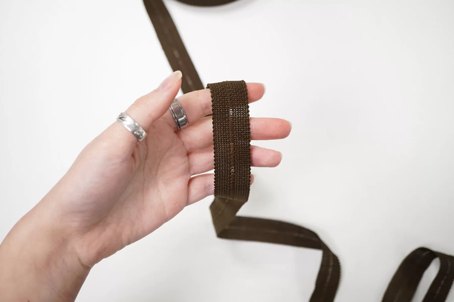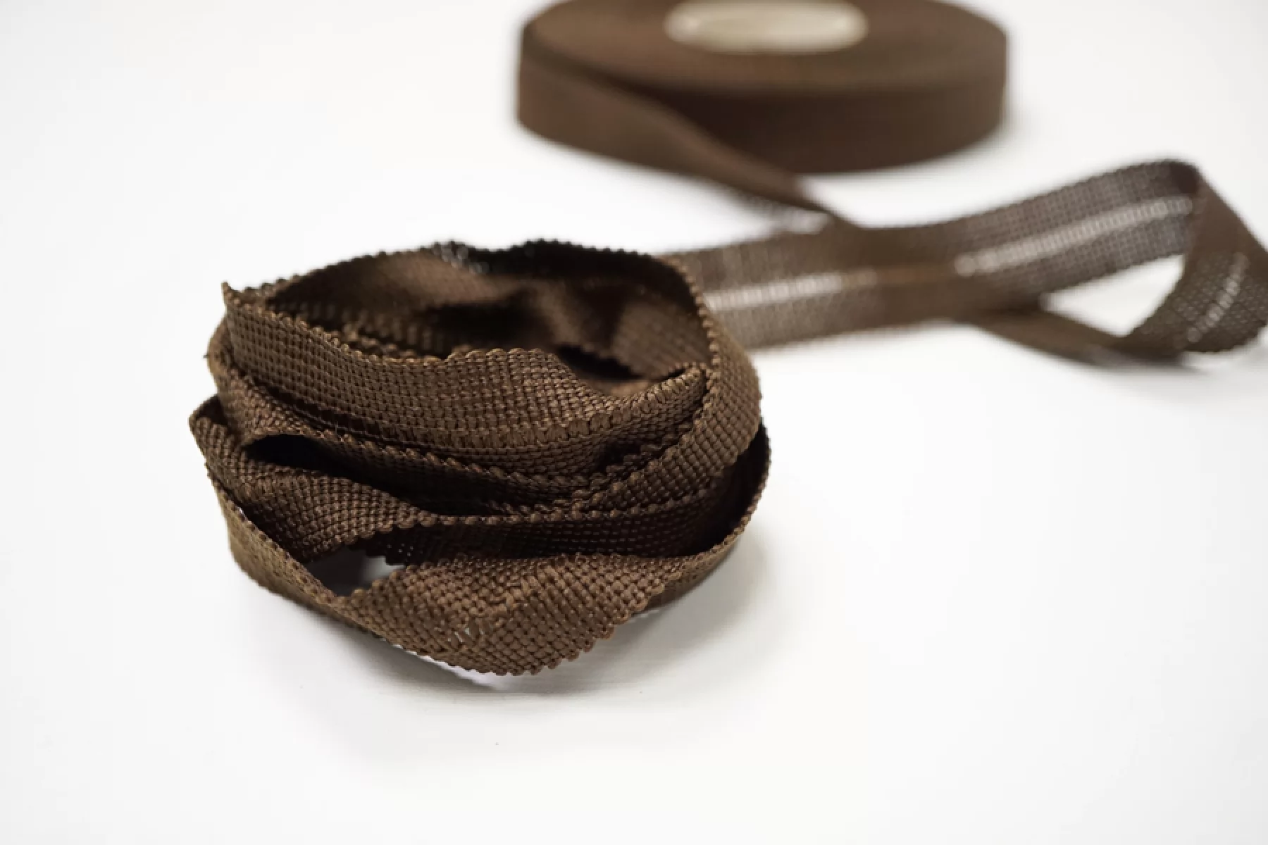 Трикотажная лента для швов коричневого цвета. Ширина 3 см. Прочная трикотажная лента необходима для укрепления швов, на линии которых приходится большая нагрузка при носке. Этот окантовочный материал предотвращает расхождение швов и защищает от предварительной деформации.