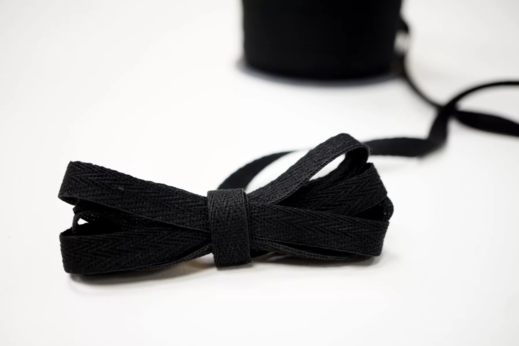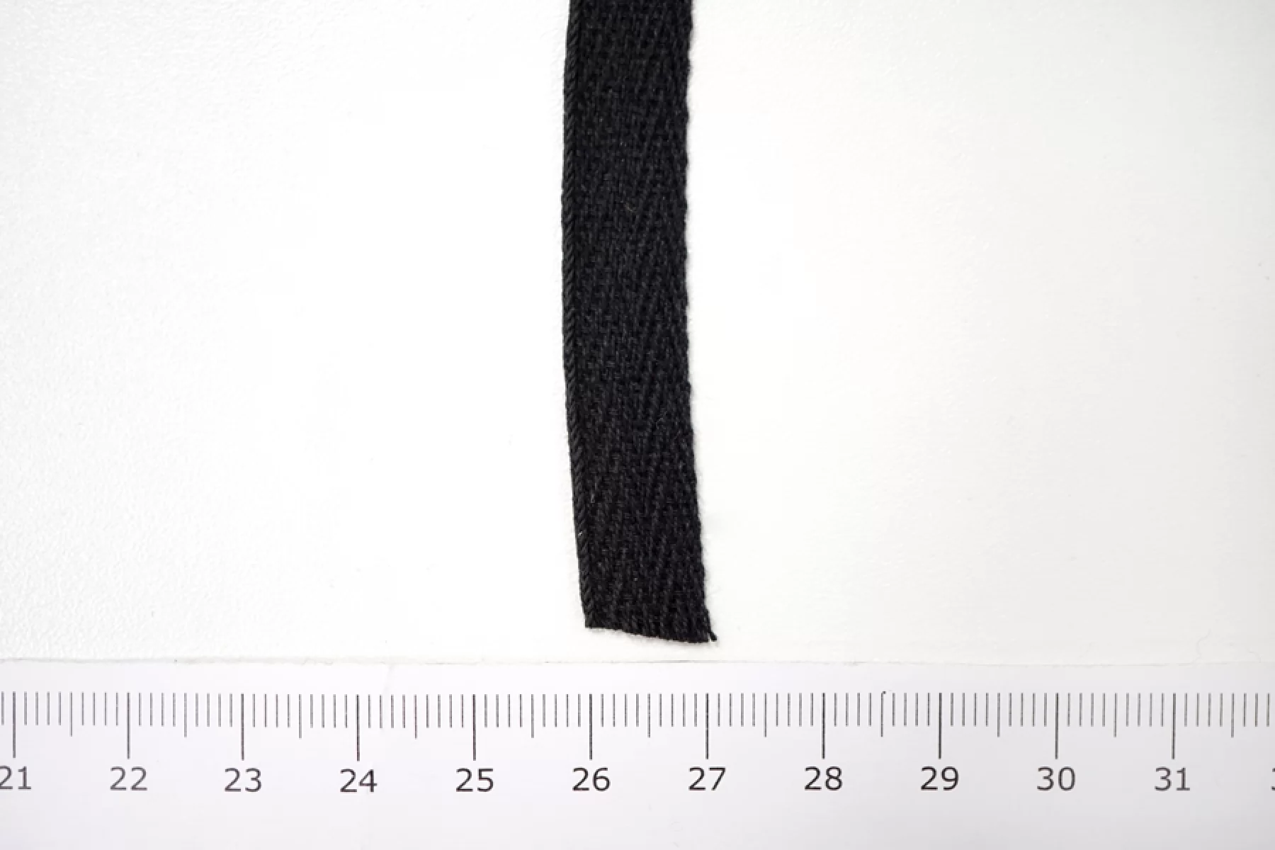 Лента киперная черного цвета с зеленым подтоном из хлопка, шириной 1 см.