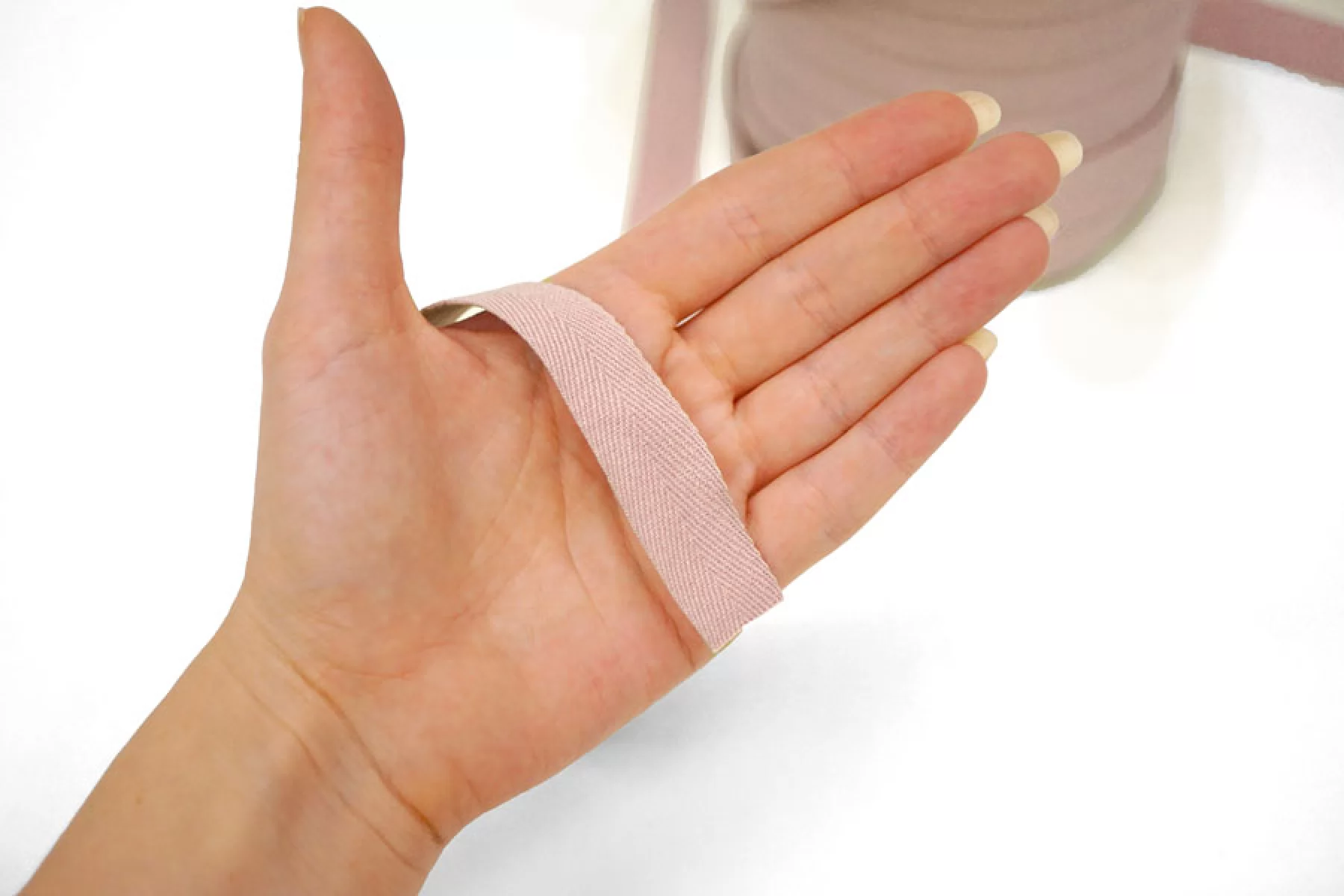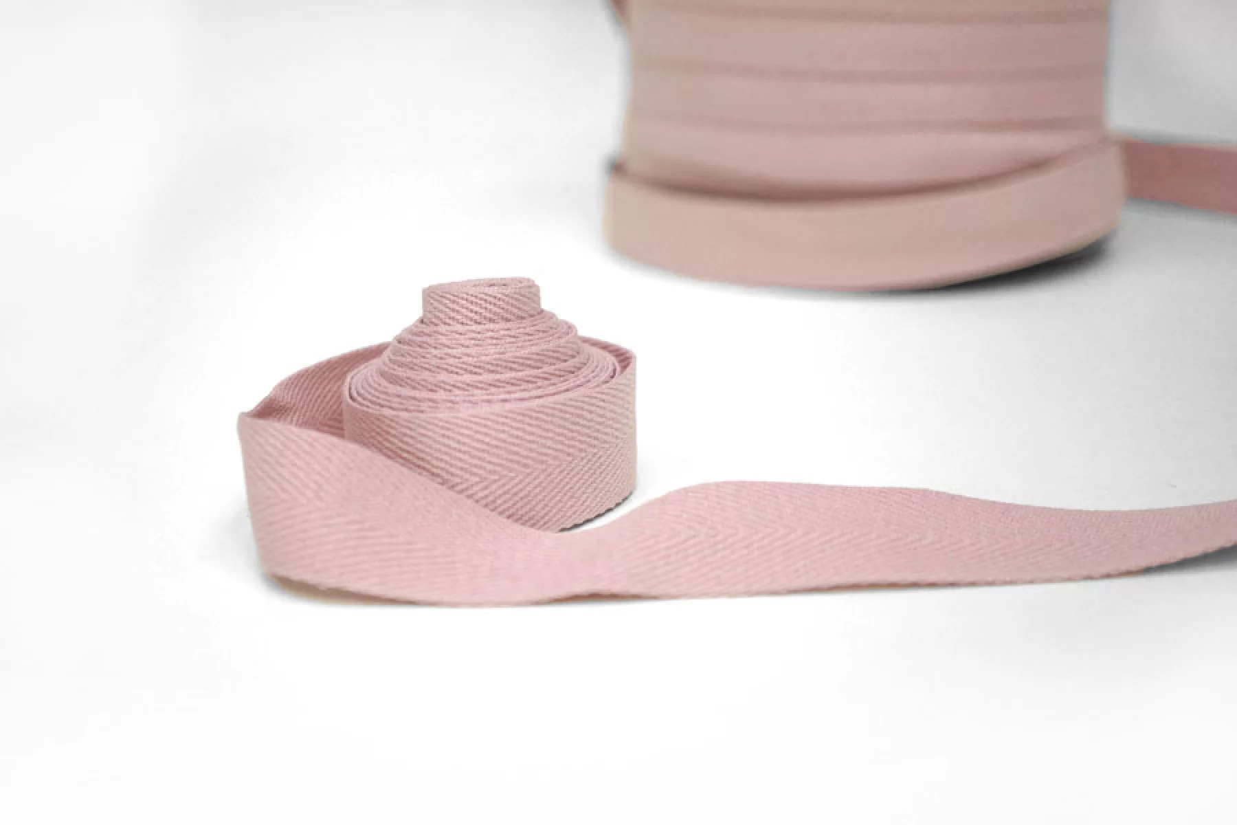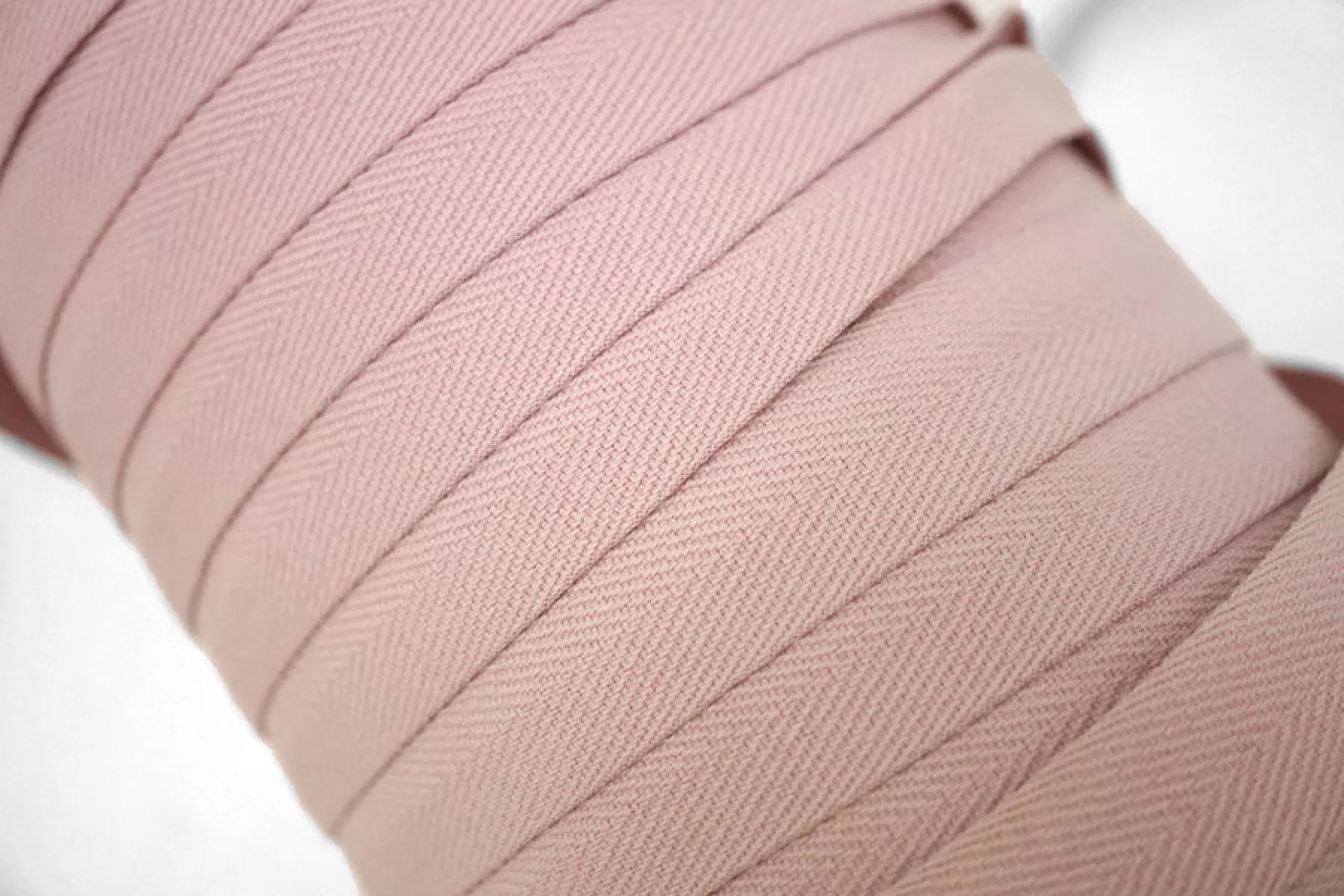 Хлопковая лента киперная пепельно-розового оттенка шириной 2 см.