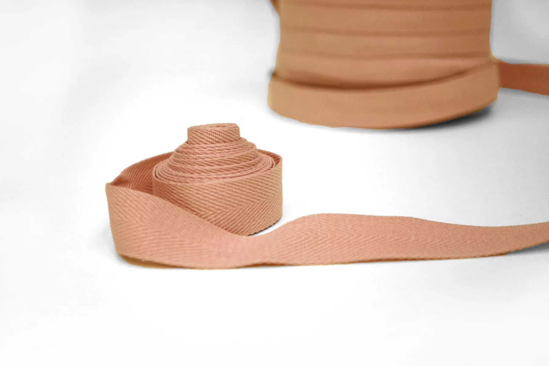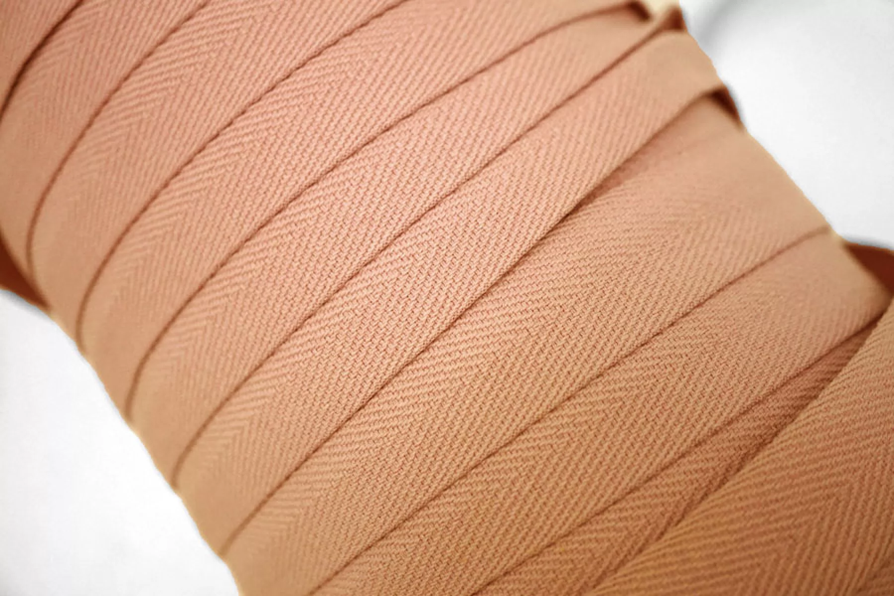 Хлопковая лента киперная персикового оттенка шириной 2 см.