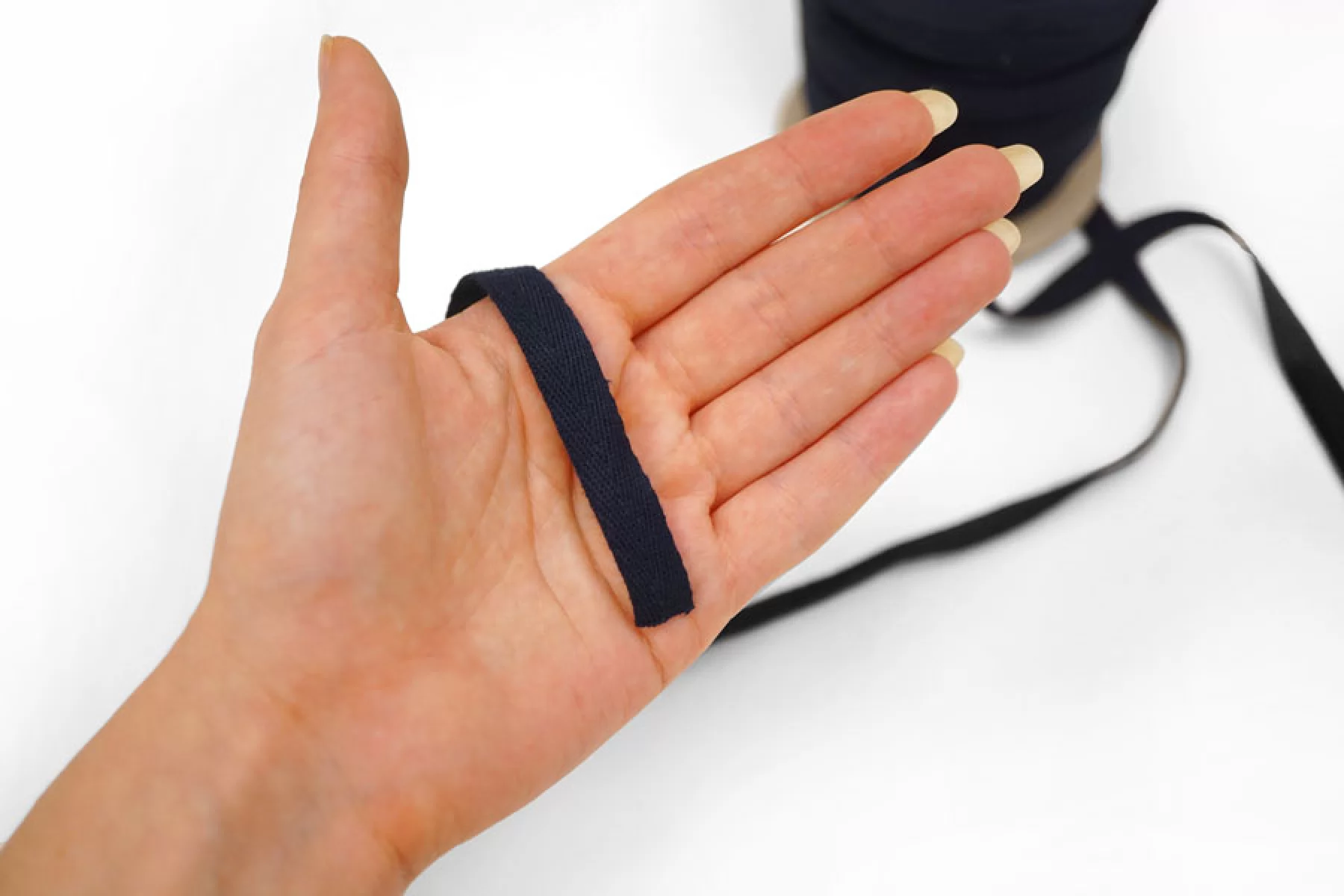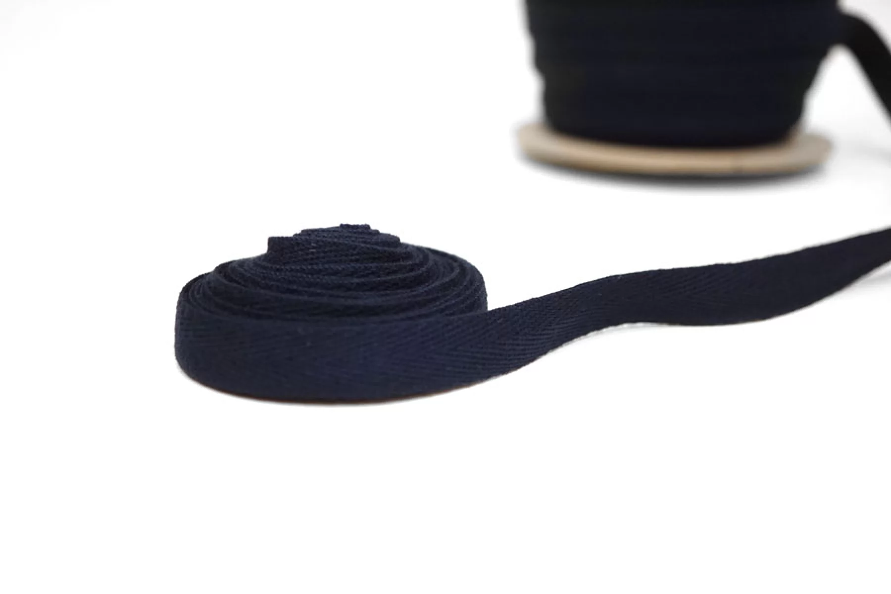 Хлопковая лента киперная темно-синего цвета, шириной 1 см. Мягкая наощупь.