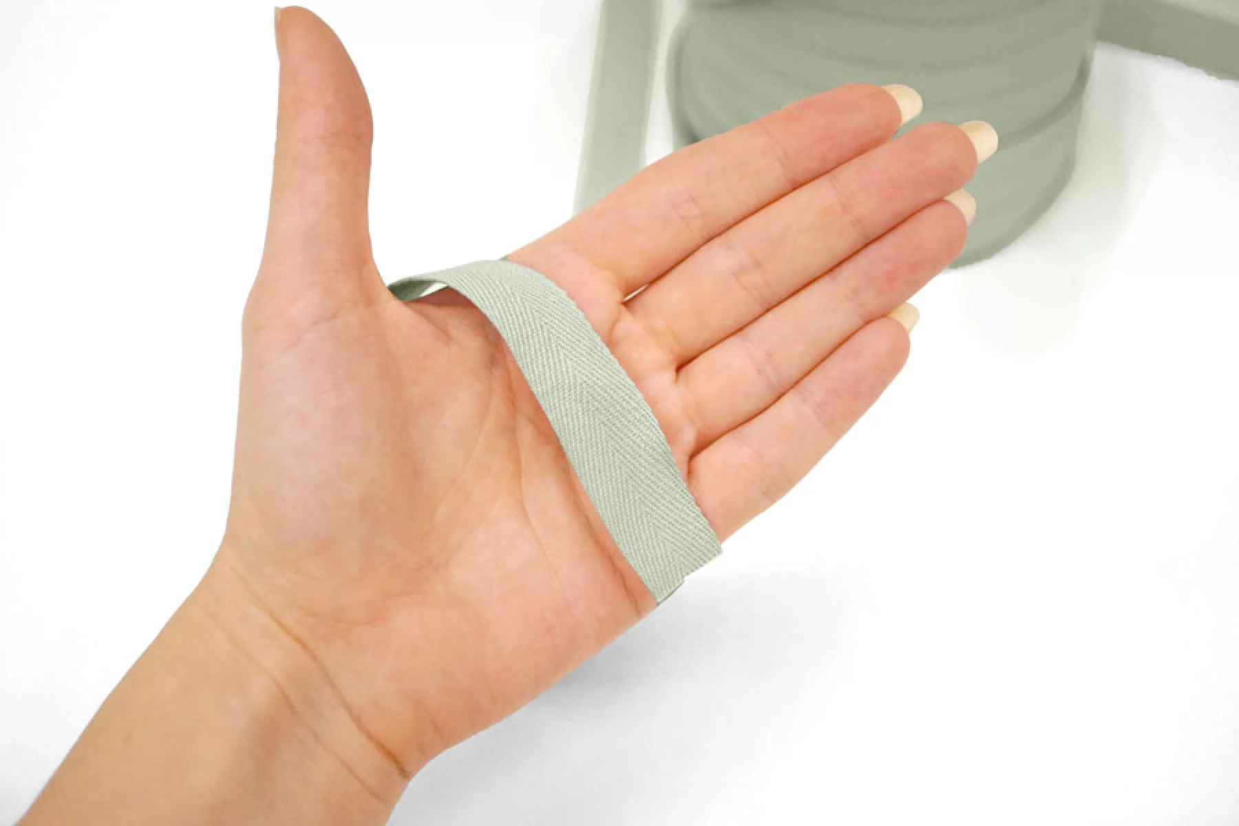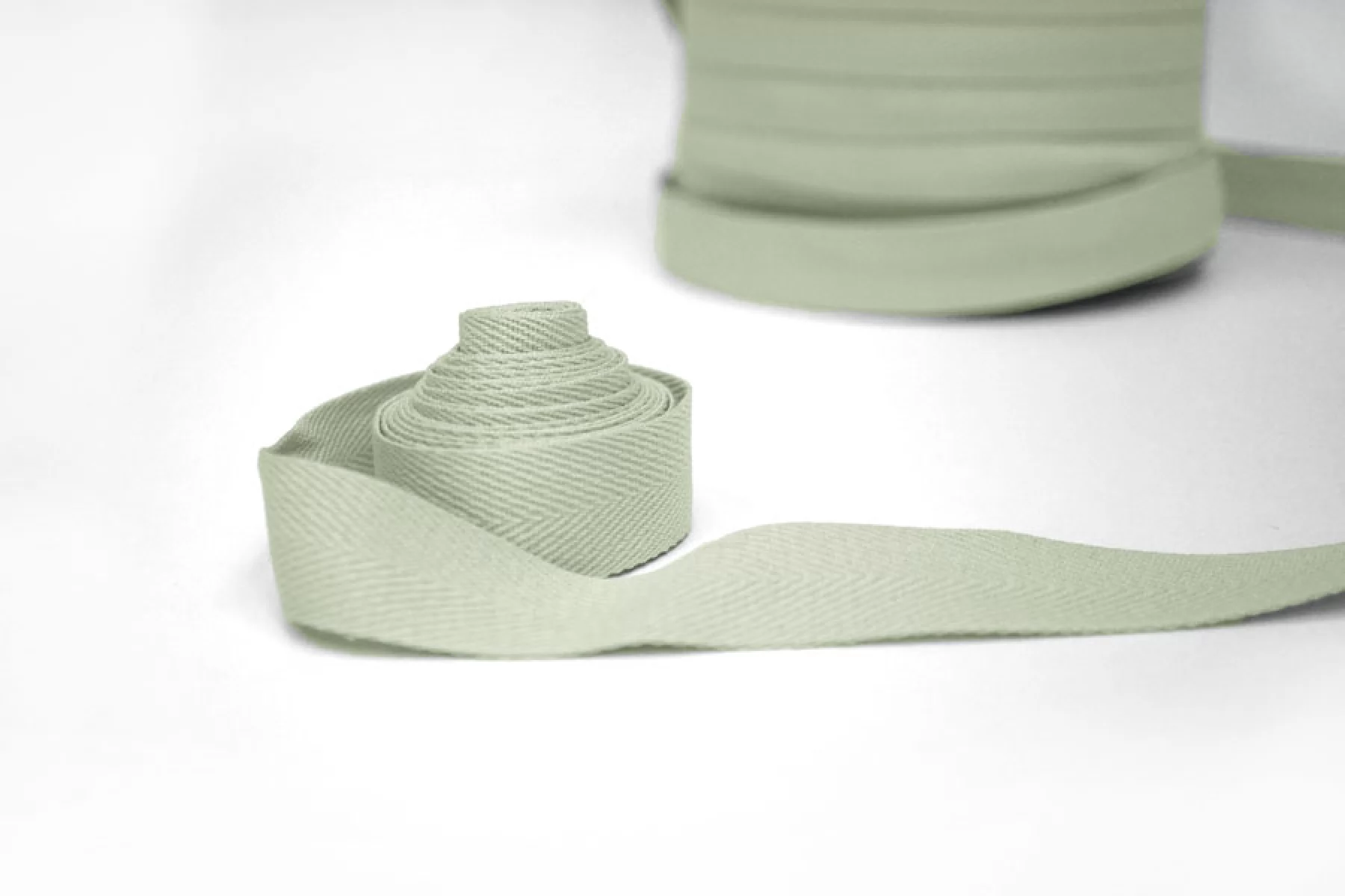 Хлопковая лента киперная оттенка светлый шалфей шириной 2 см.