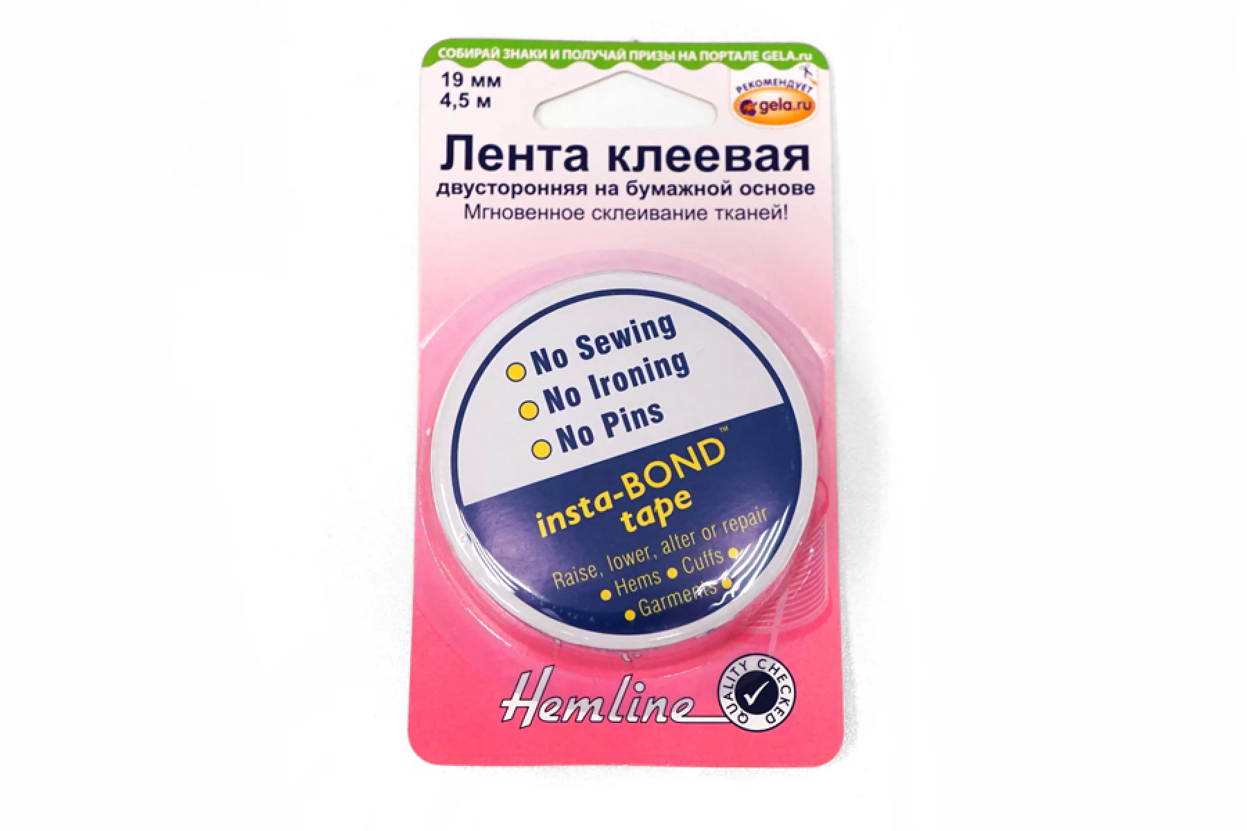 Лента клеевая двусторонняя на бумажной основе, 4,5 м. 19 мм. HEMLINE 782