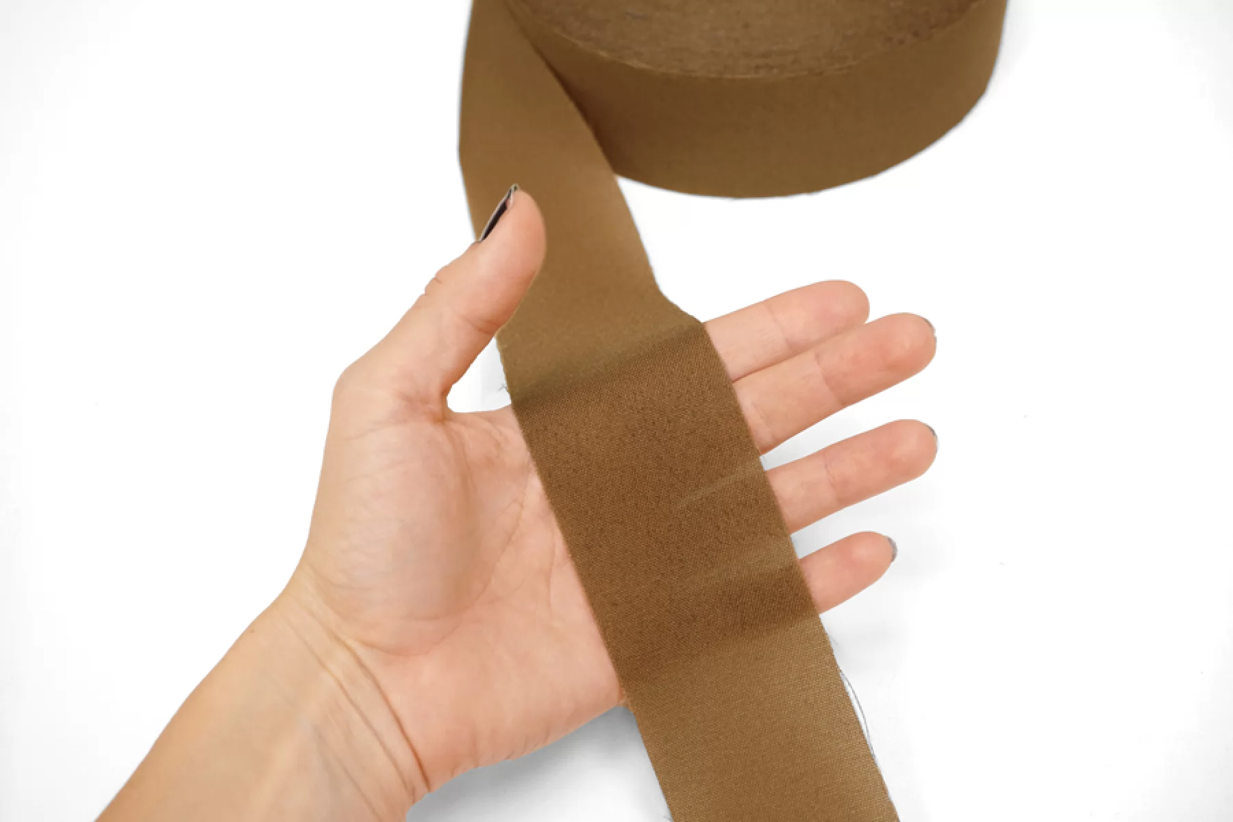 Клеевая лента на тканной основе коричневого цвета. Ширина 5 см. Подходит для большенства тканей. Защищает детали одежды от растяжения. Фиксируется утюгом.