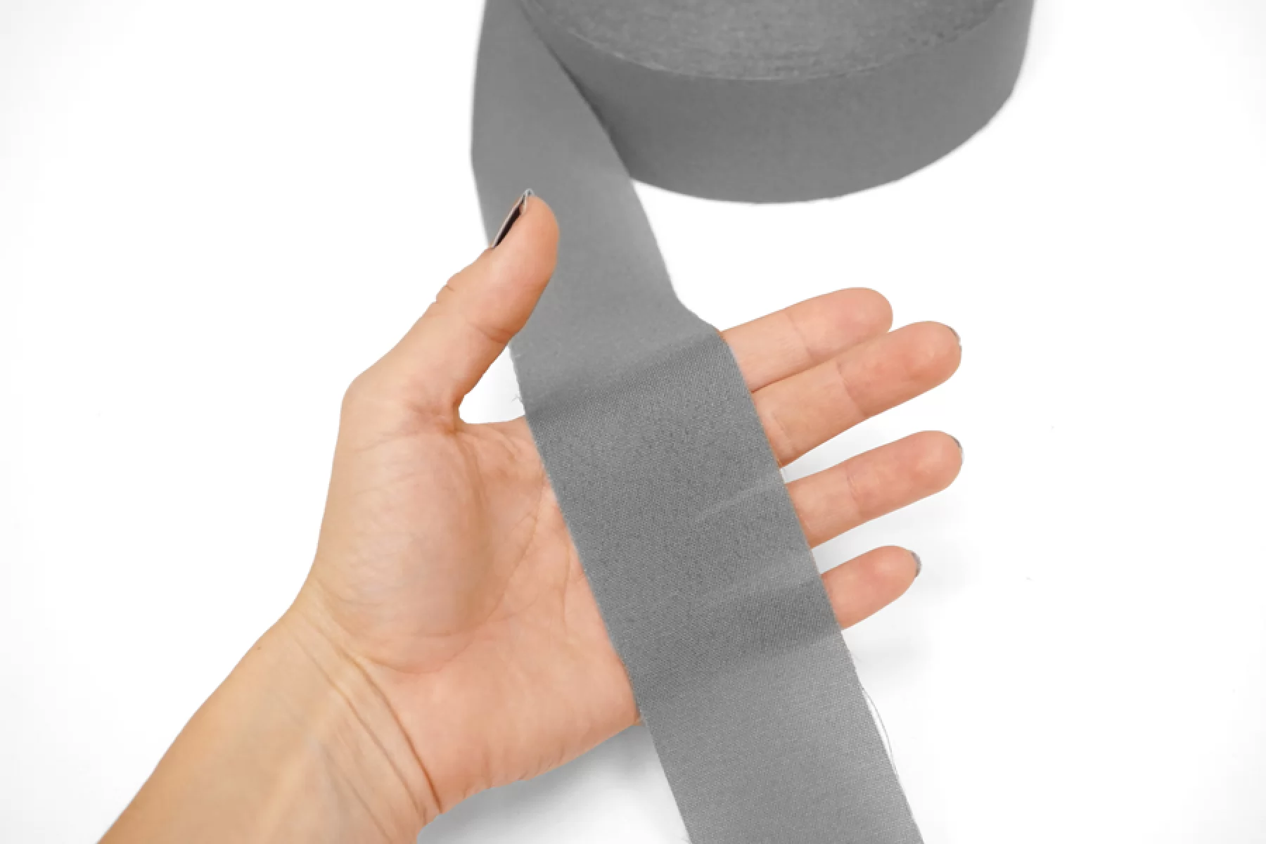 Клеевая лента на тканной основе серая цвета. Ширина 5 см. Подходит для большенства тканей. Защищает детали одежды от растяжения. Фиксируется утюгом.