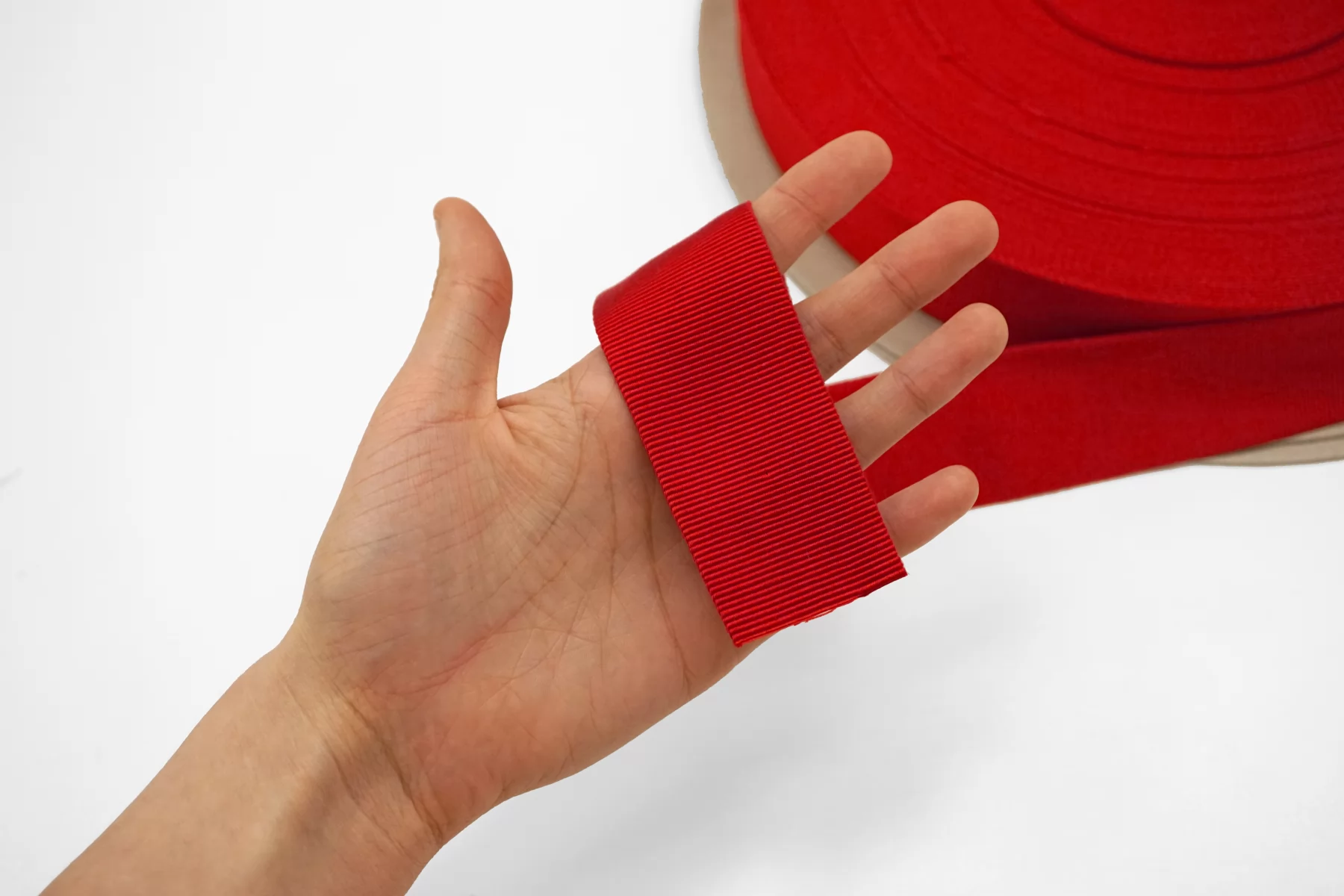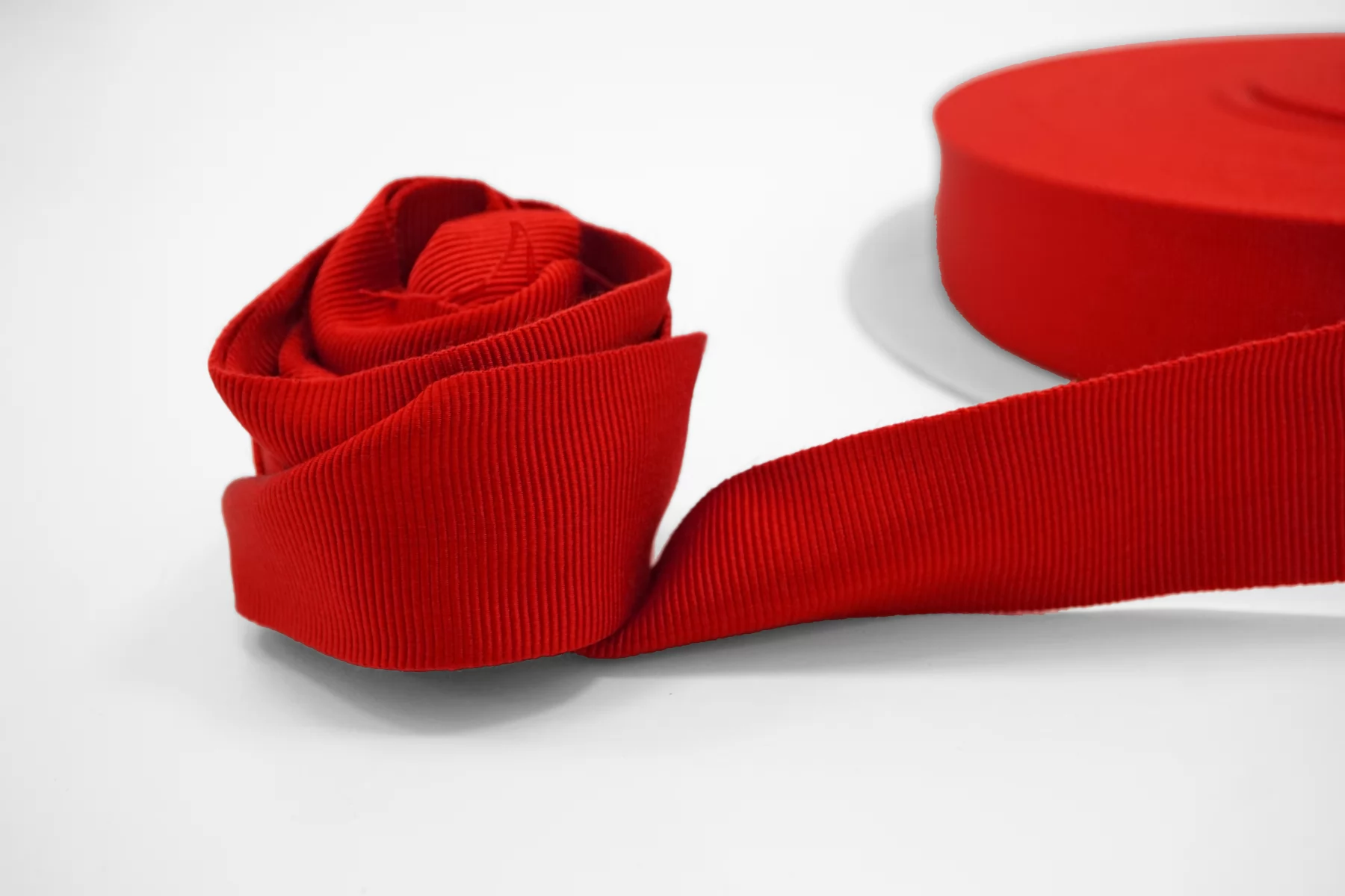 Репсовая отделочная двойная полая лента красного цвета. Довольно жесткая. Ширина 4 см.