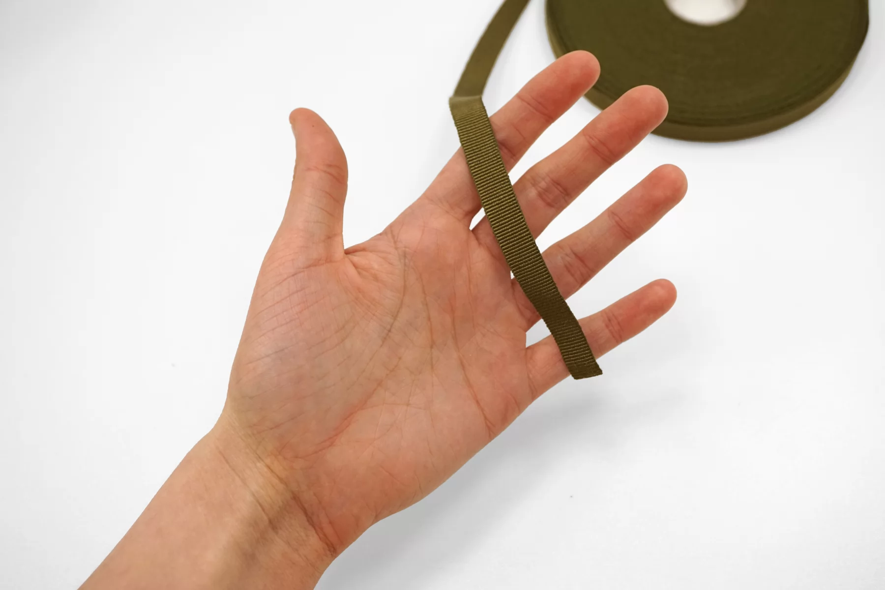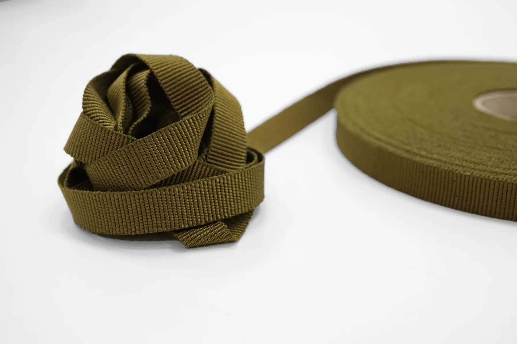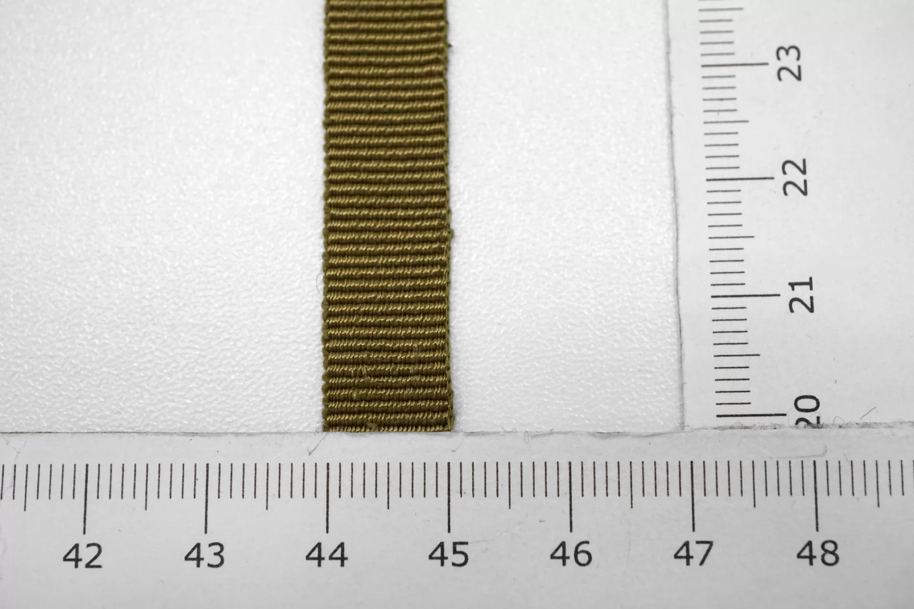 Репсовая лента цвета хаки цвета. Довольно жесткая. Ширина 1см.