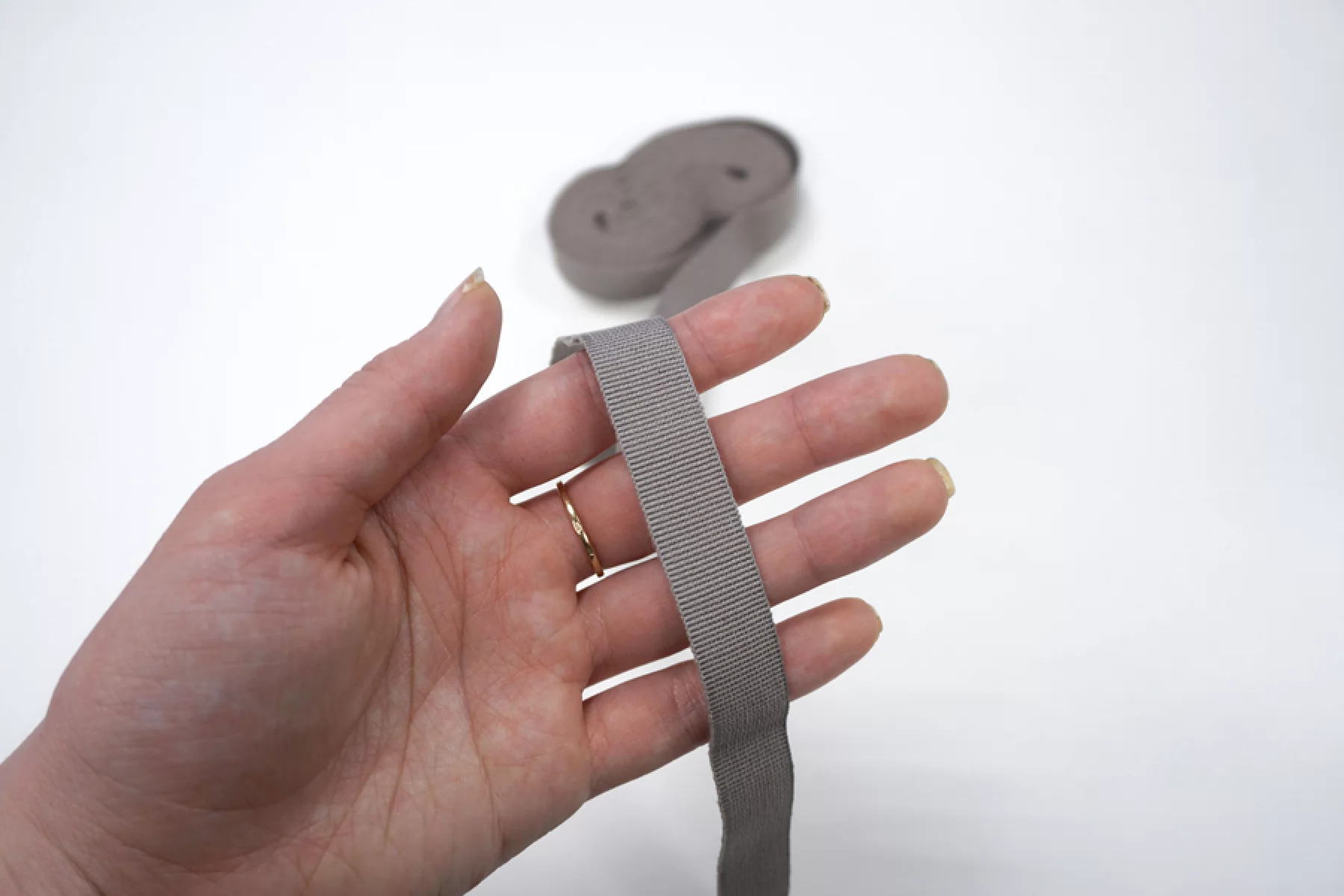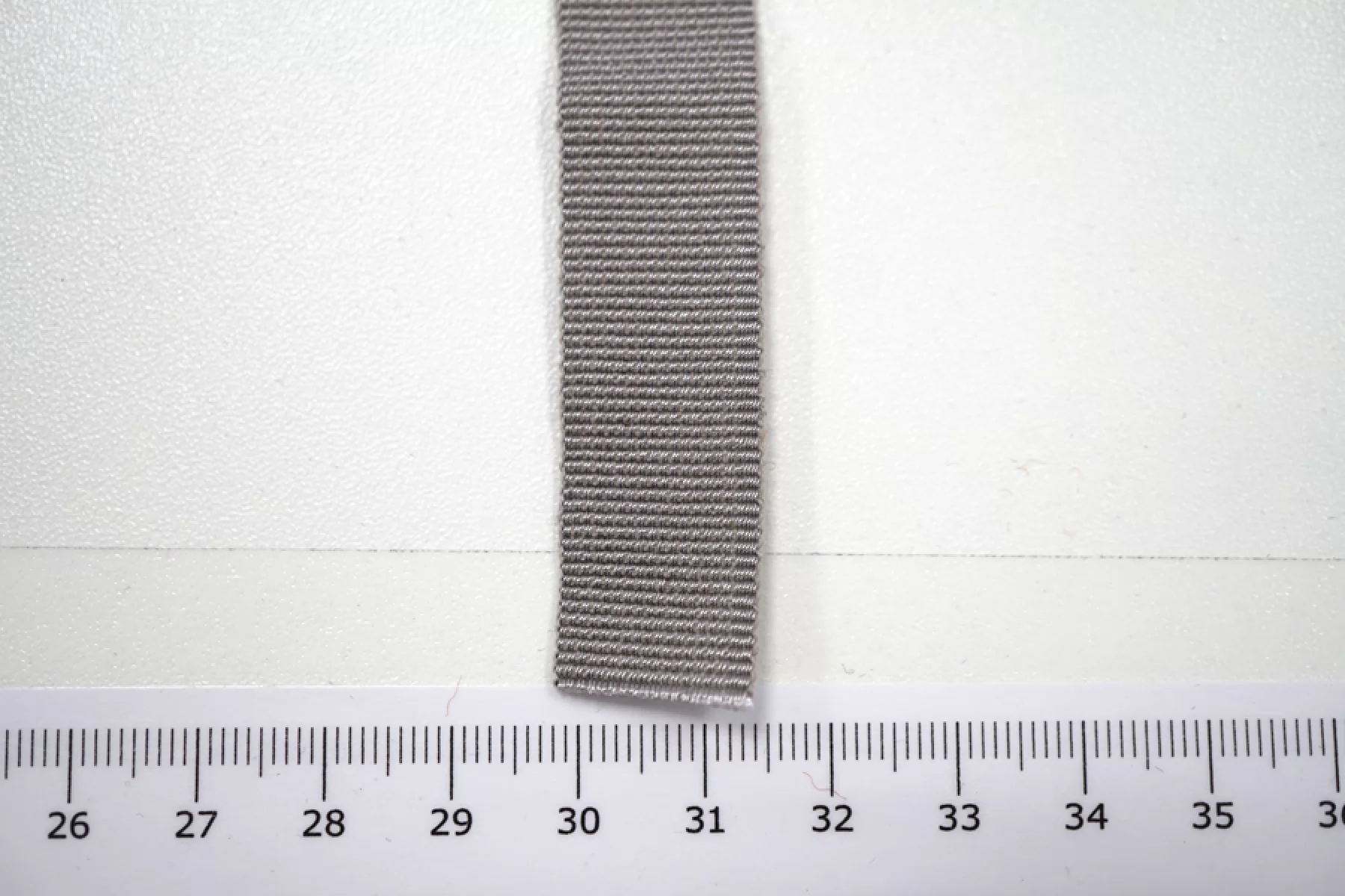 Репсовая лента шириной 1,5 см в серо-бежевом цвете.