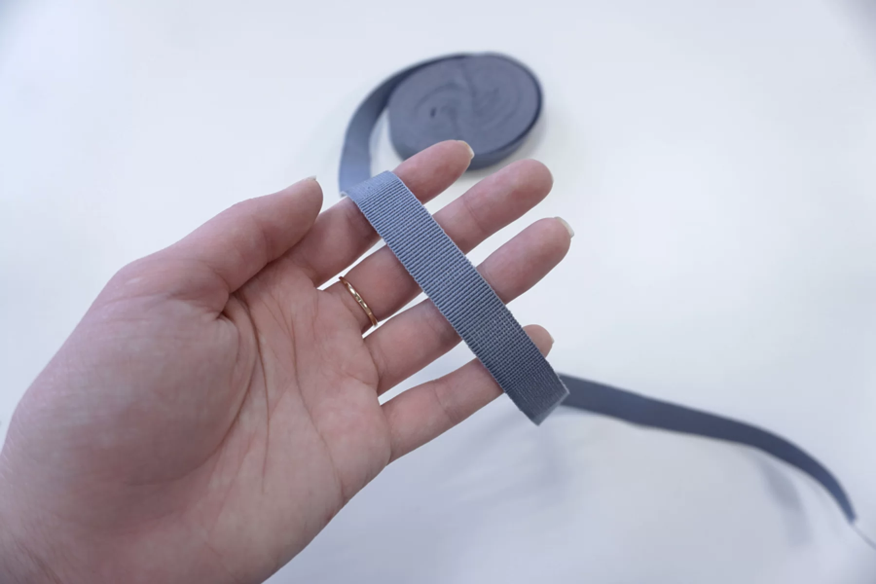 Серо-голубая репсовая лента шириной 1,5 см.