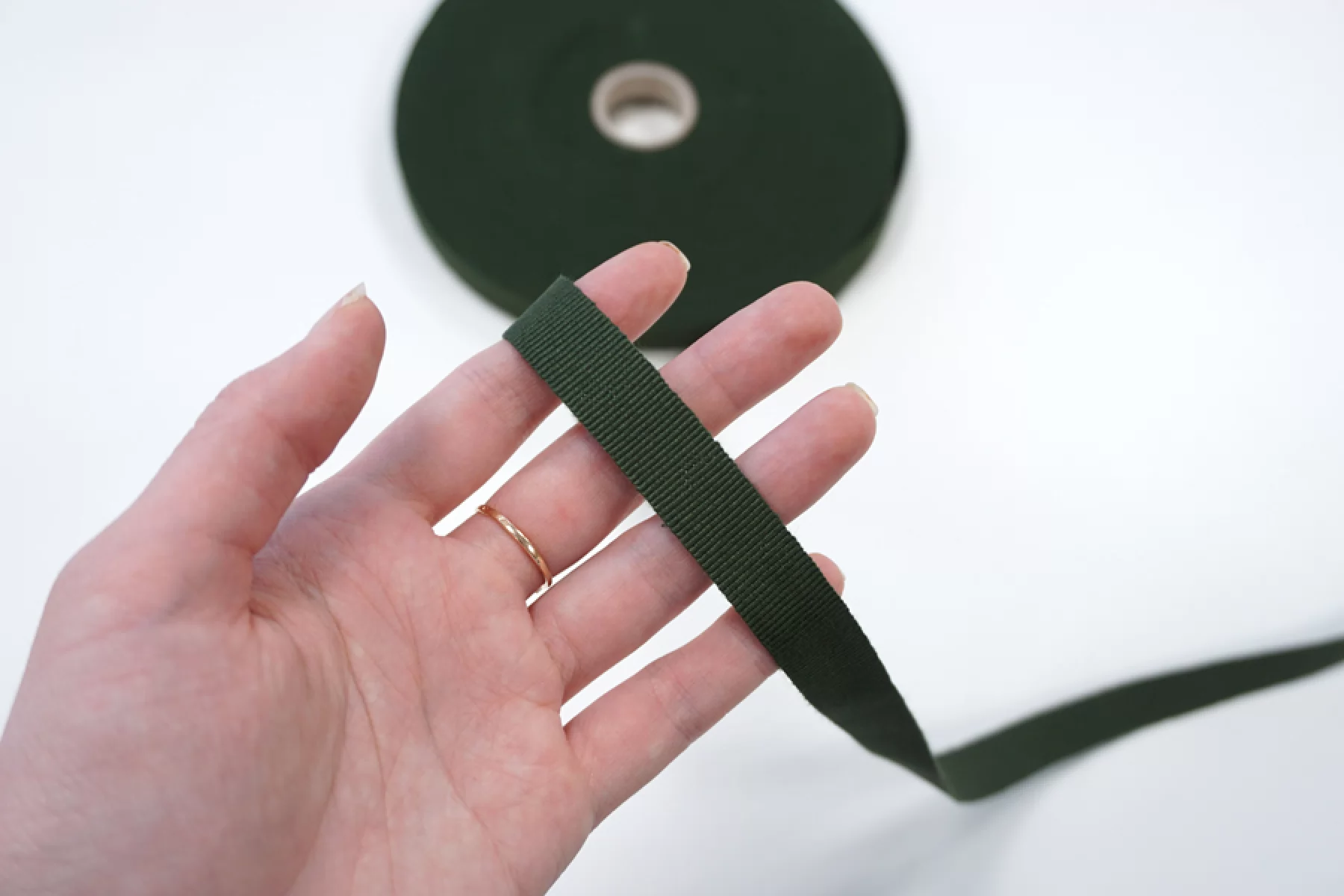 Репсовая лента шириной 1,5 см темно-травяного цвета.