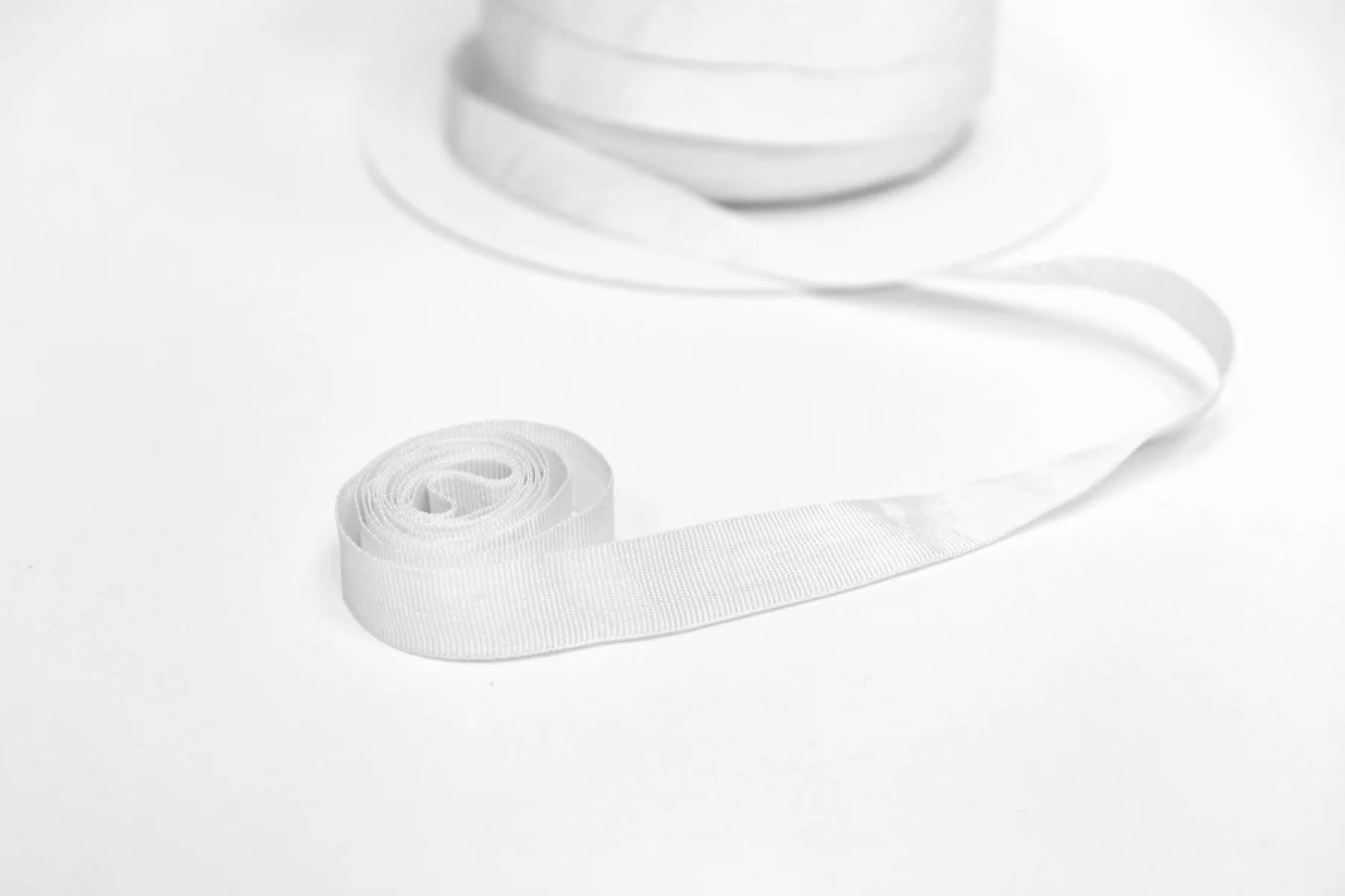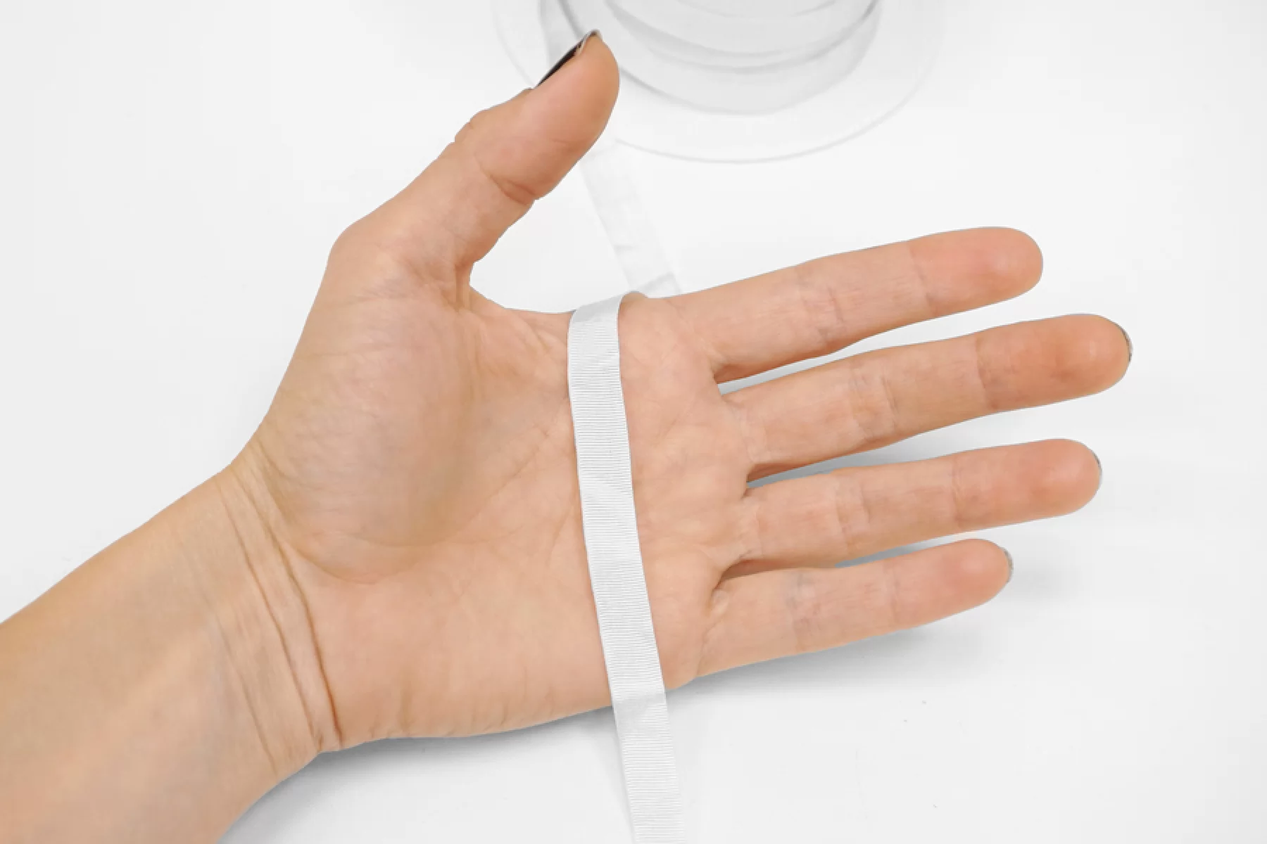 Репсовая лента белого цвета. Ширина 1 см. Состав: 100% вискоза