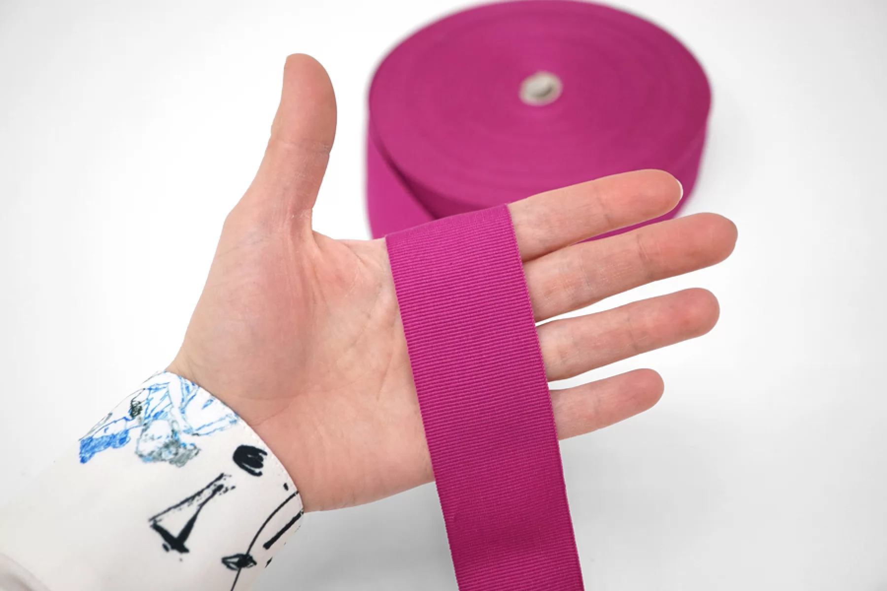 Репсовая лента оттенка фуксии с прохладным подтоном. Мягкая, с легким лоском. Ширина 3,9 см. Используется при пошиве и отделке одежды, а так же в декоре и рукоделии.