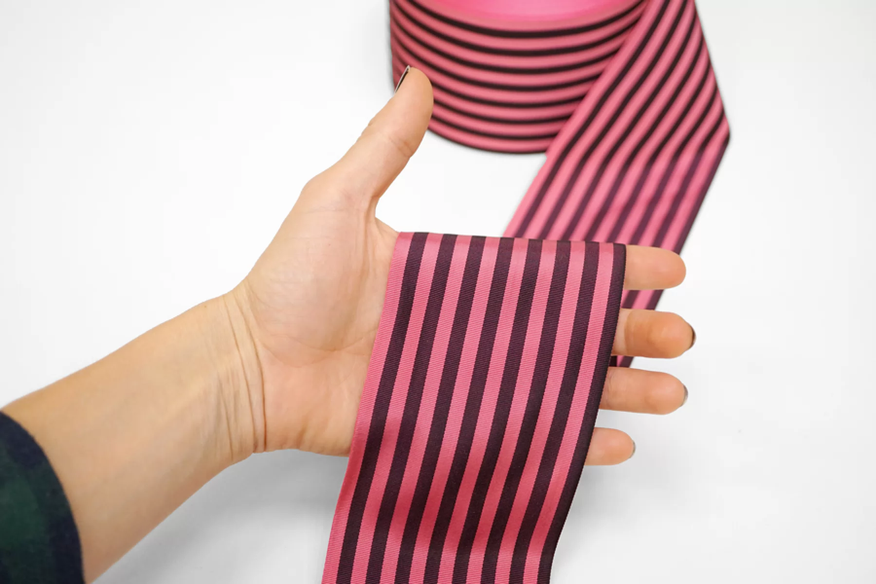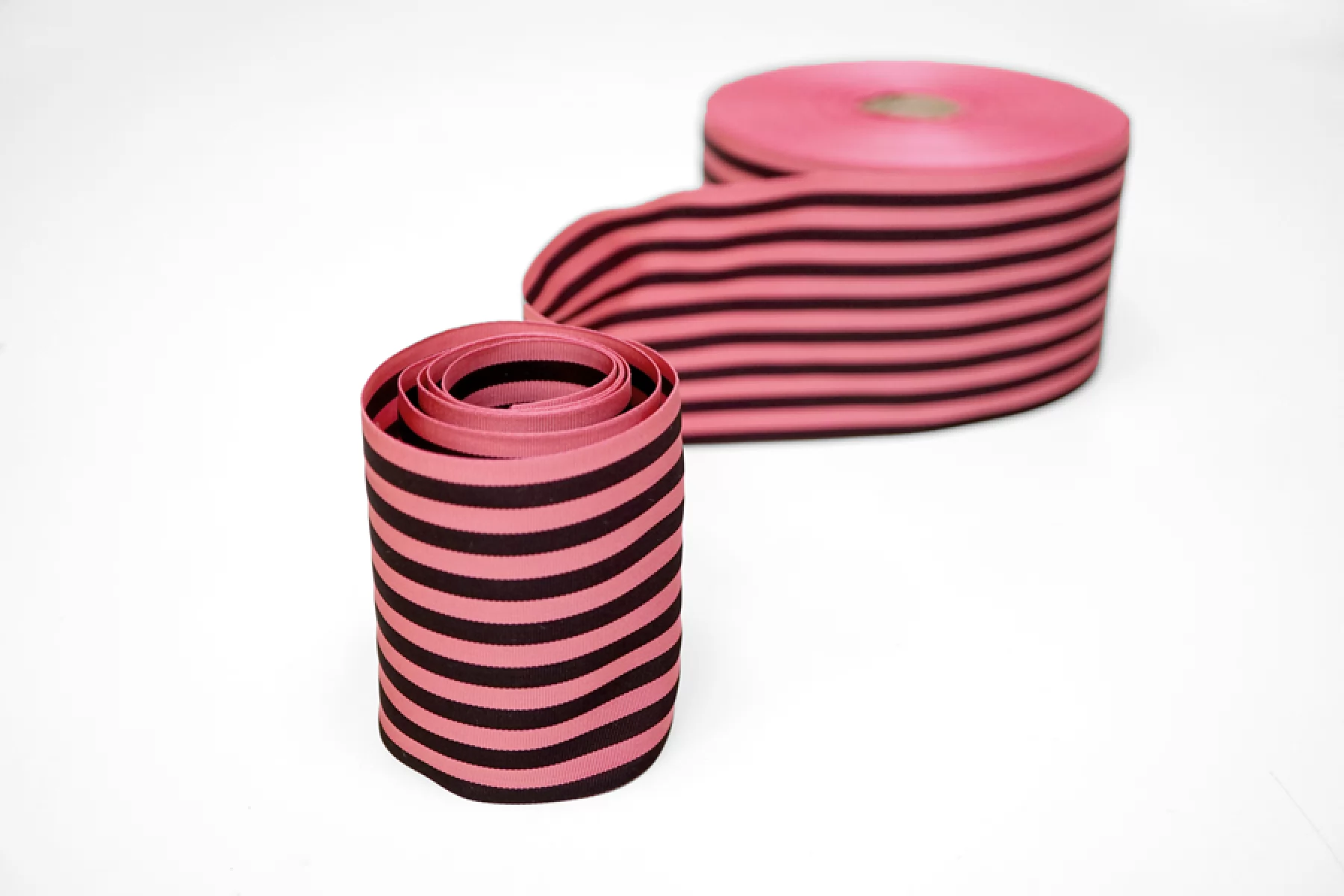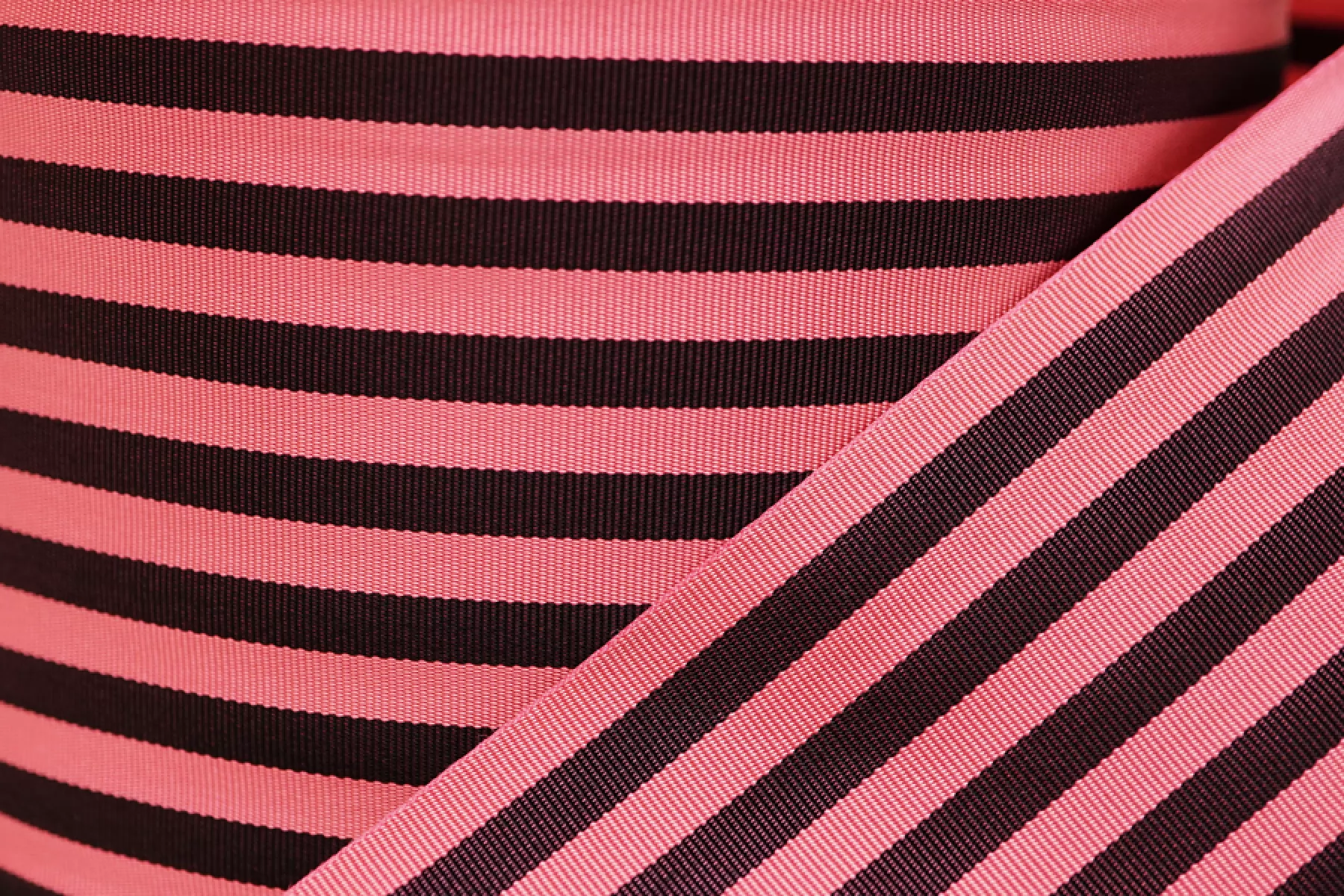 Репсовая лента в полоску розовую с черным. Ширина 8 см. Состав: 100% вискоза.
