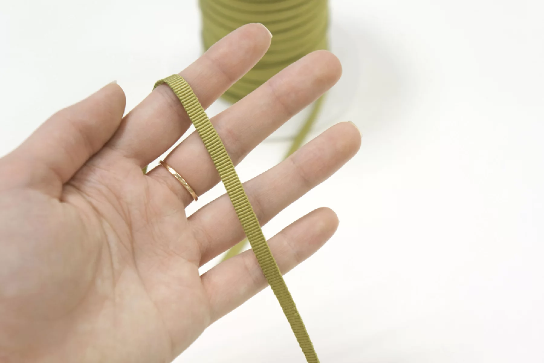 Репсовая лента. Ширина 5 мм. Цвет золотисто-зеленый.