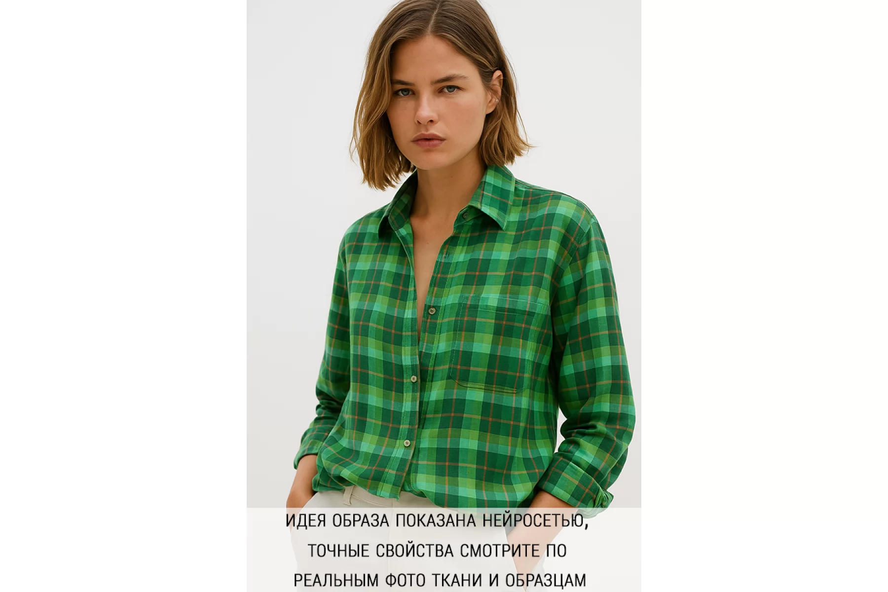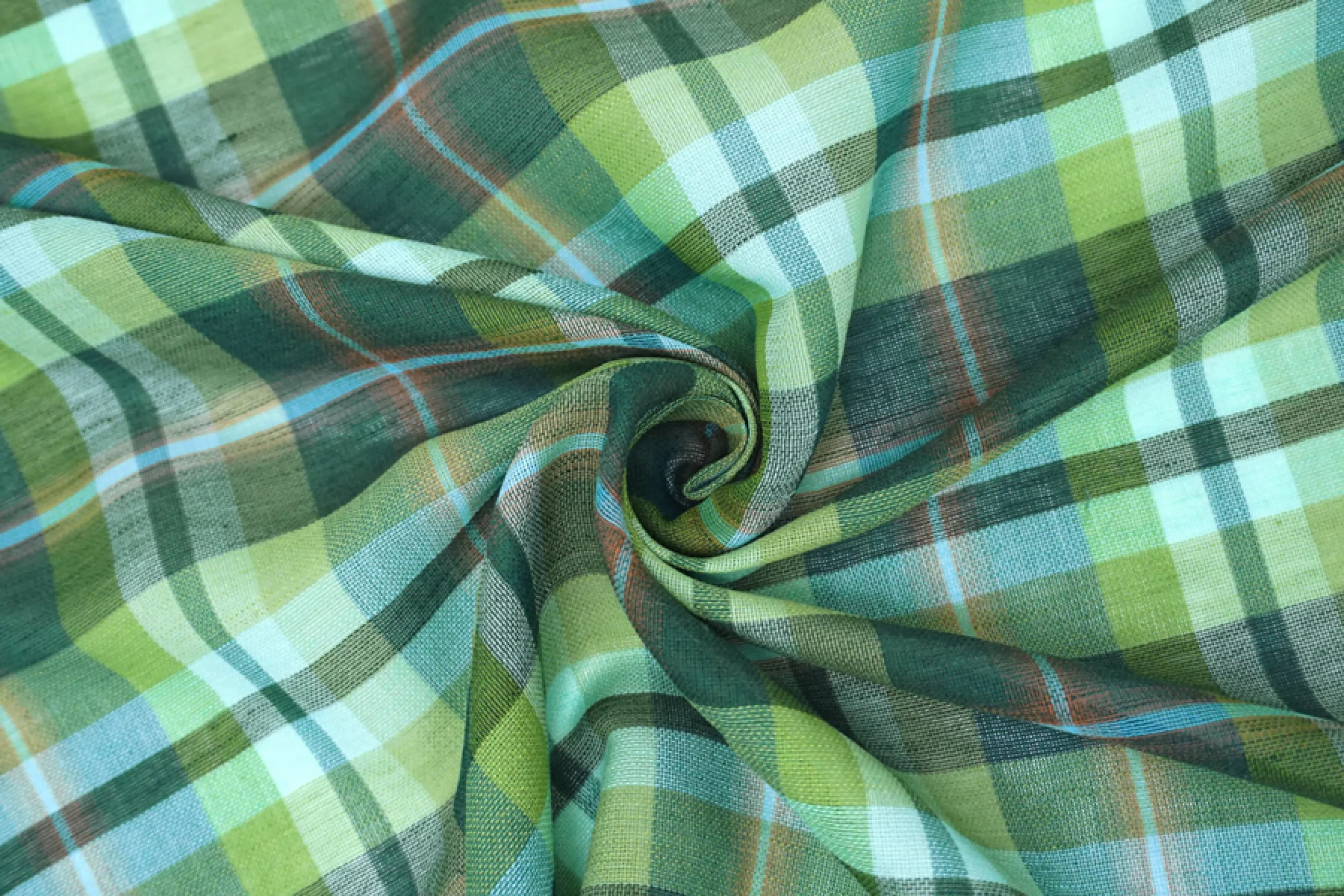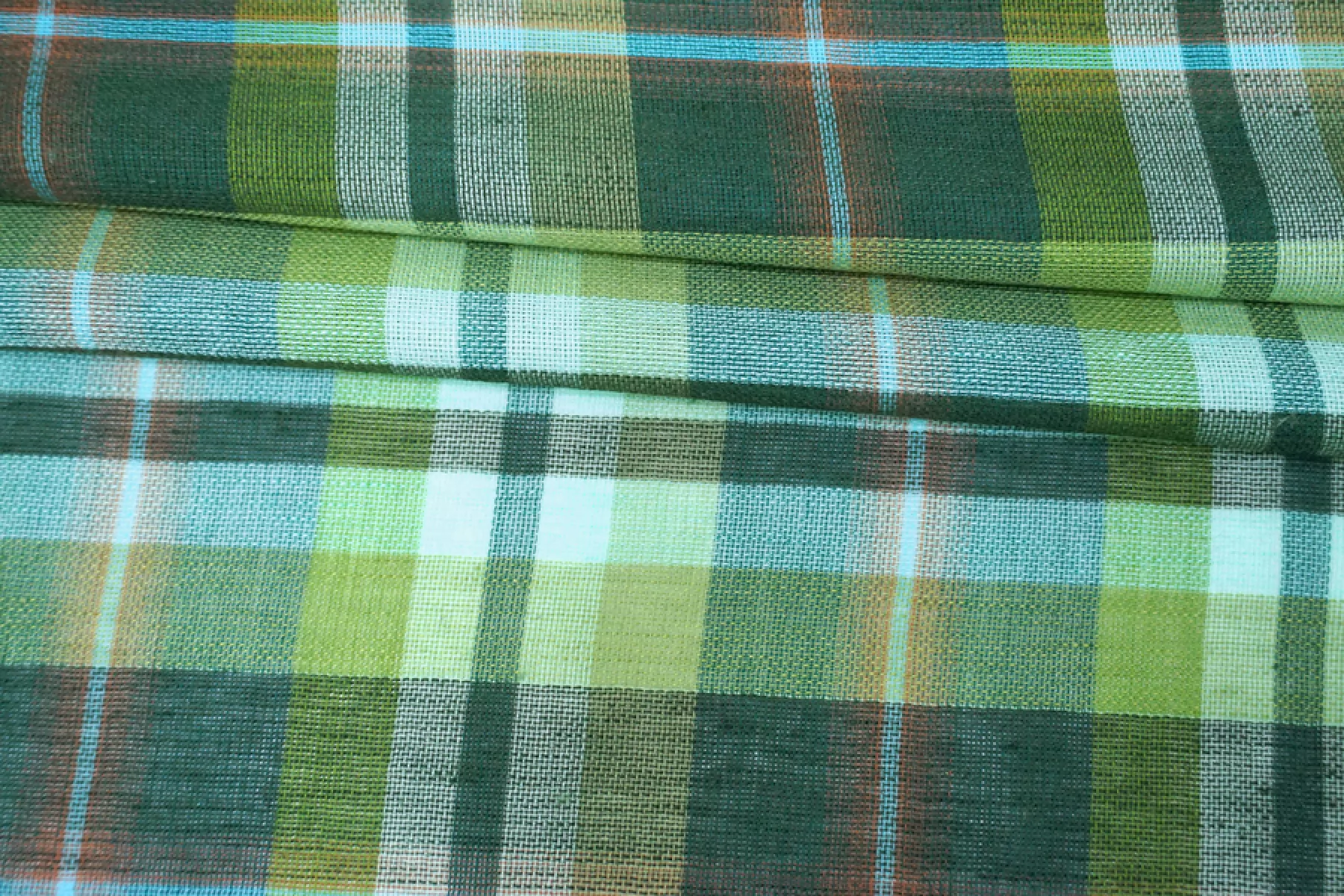 Льняная марлевка BRUNELLO CUCINELLI в клетку Зеленая TIG H16/2 E00 10112302