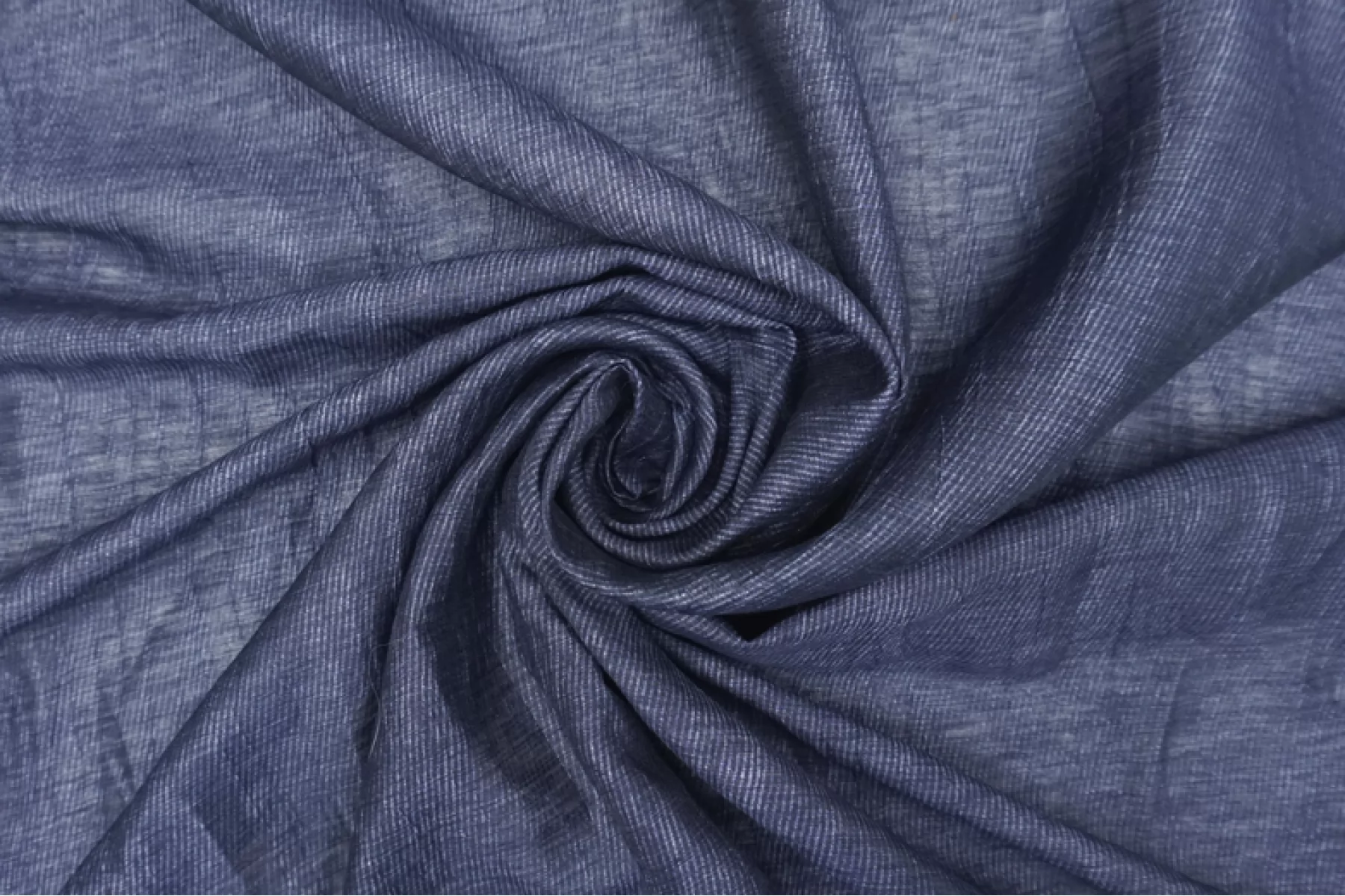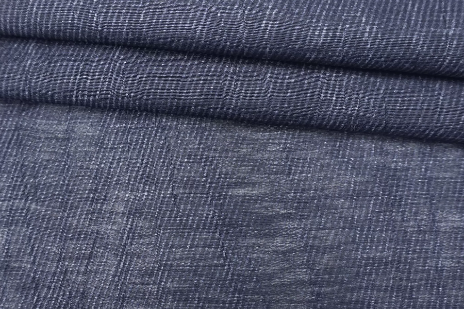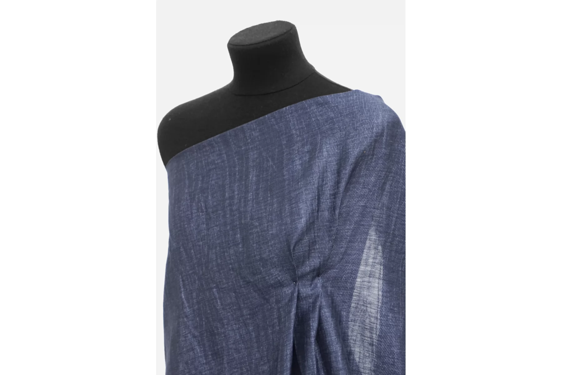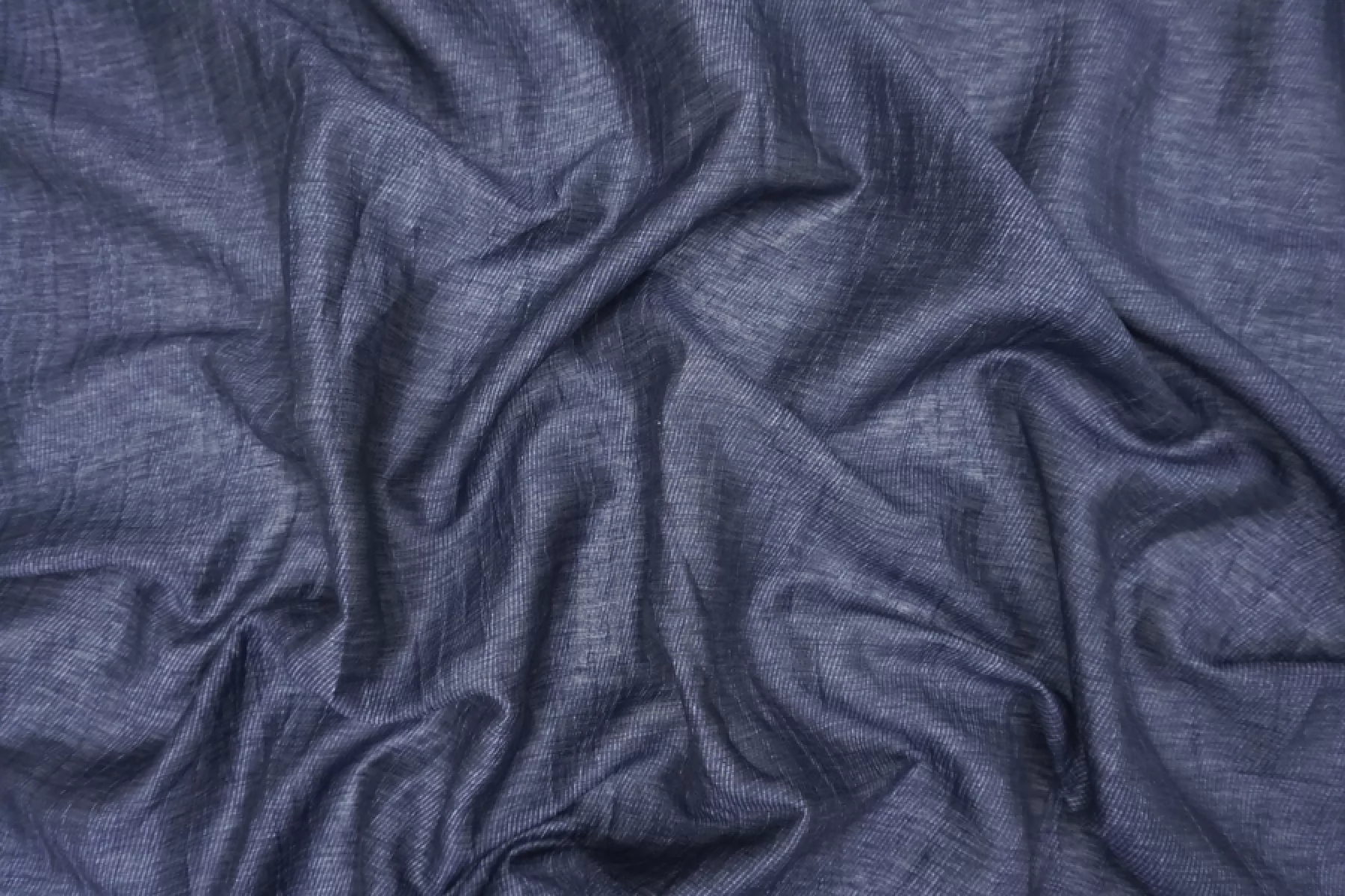 Льняная органза на капроне припыленно-синего цвета с легким лоском и выраженной диагональю. Поверхность слегка крешированная, т.е. немного жатая. Основа полупрозрачная. Неплохо держит форму. Не тянется. Отлично подойдет для рубашек, платьев, и там где есть сборки или где нужны объемы, а также для отделки отдельных элементов одежды. При необходимости используйте подкладочный материал.