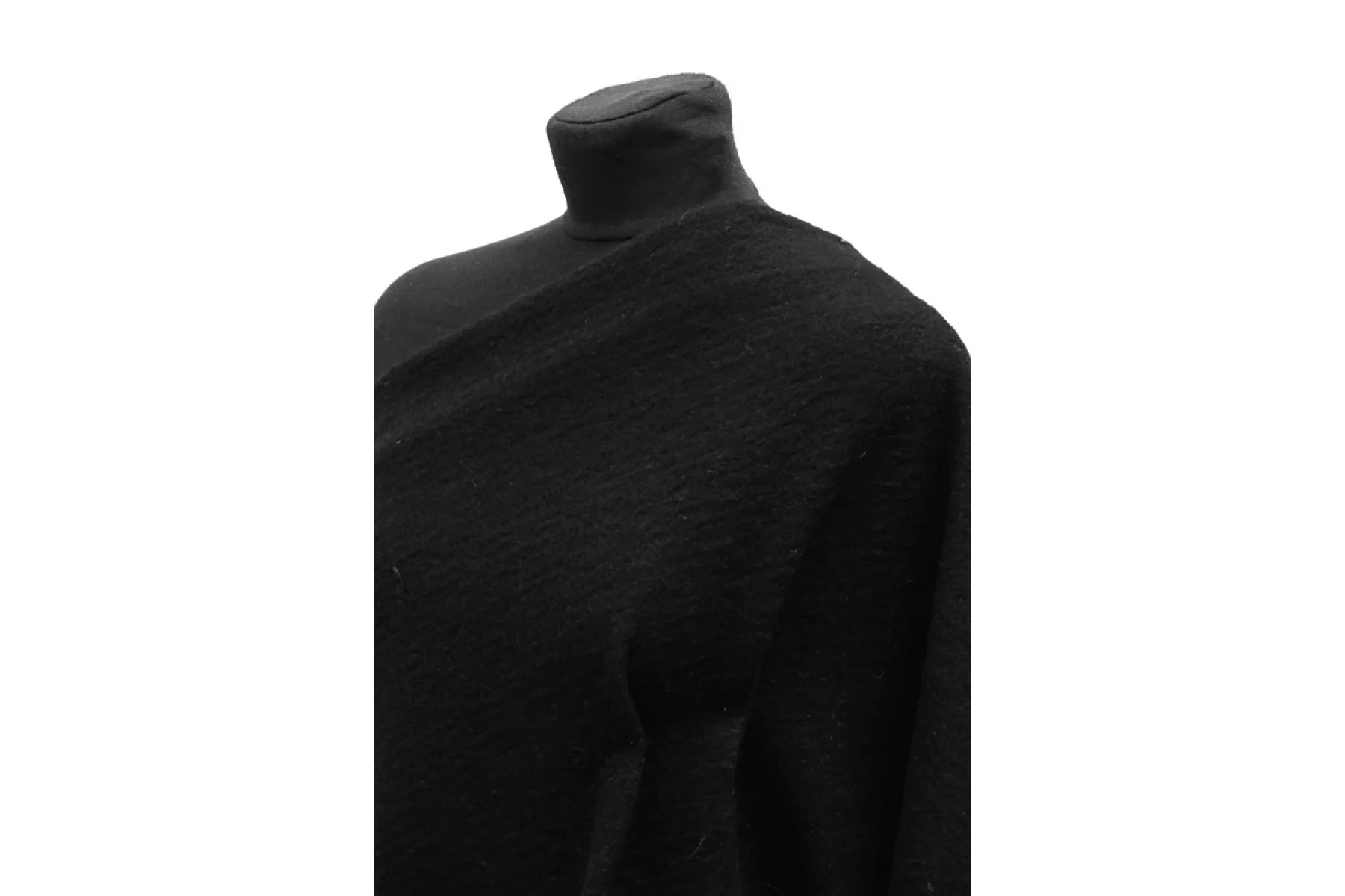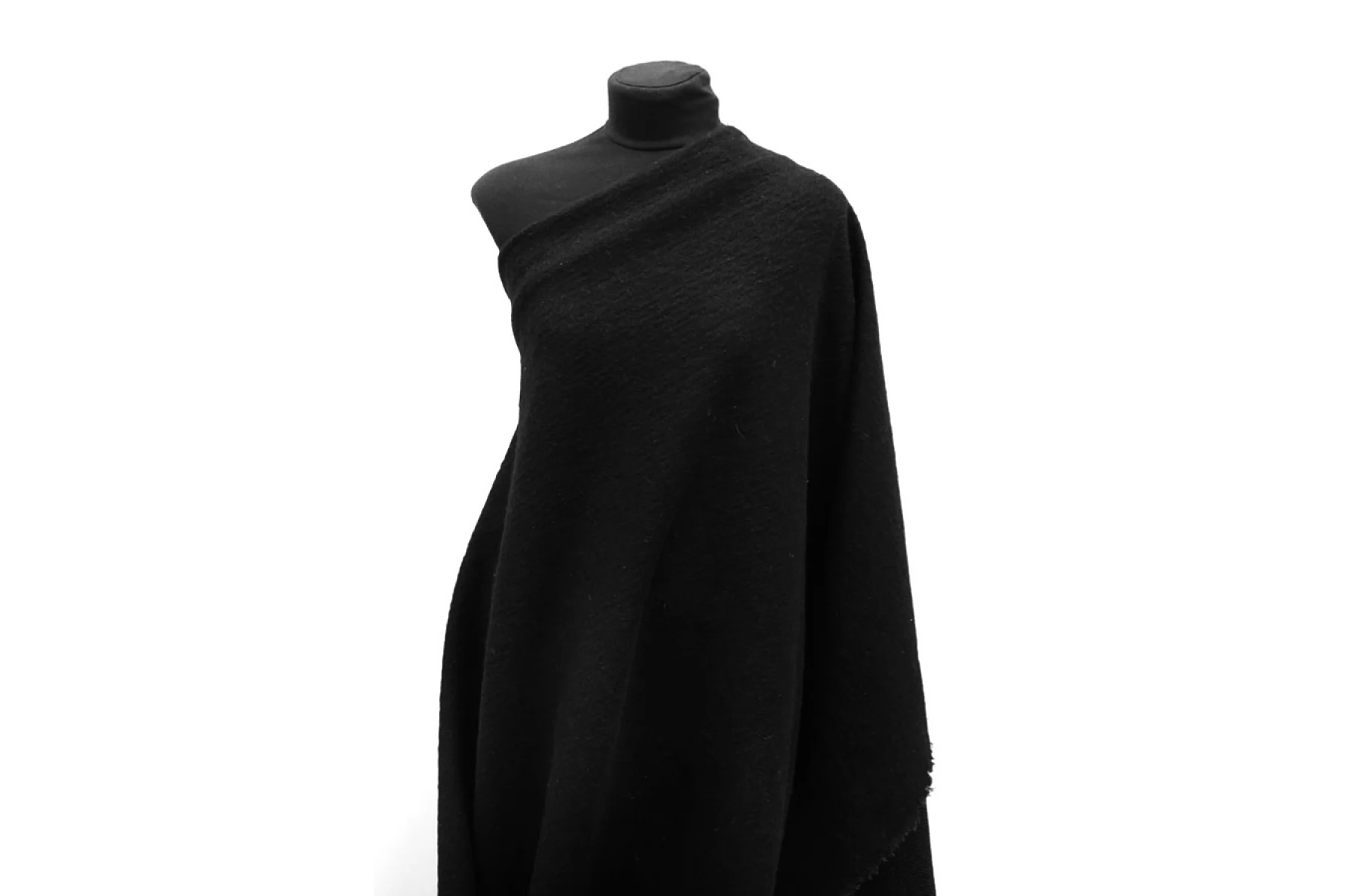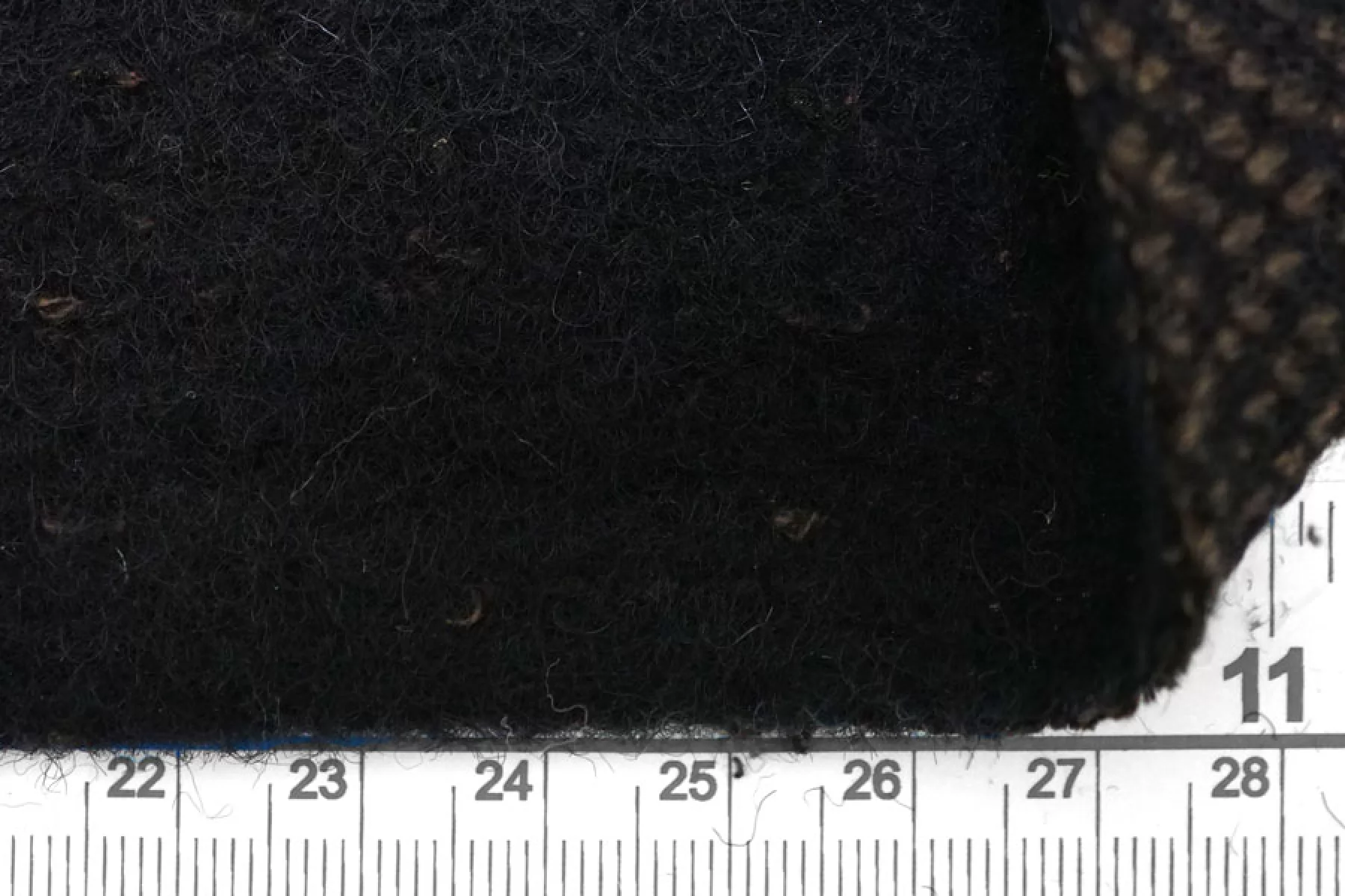Отличный шерстяной пальтовый трикотажный лоден в крупную елочку черного и коричневого цвета. Изнанка полностью черная. Можно использовать две стороны. Суховатый и шероховатый наощупь, мягкий, с легким прижатым ворсом. Чувствуется, что шерсть, немного колется. Плотный. Очень толстенький, ~5 мм. Немного тянется. Не просвечивает. Не мнется. Неплохо держит форму. Довольно пластичный. Идеальный вариант на теплые пальто, кардиганы. Уход деликатный.