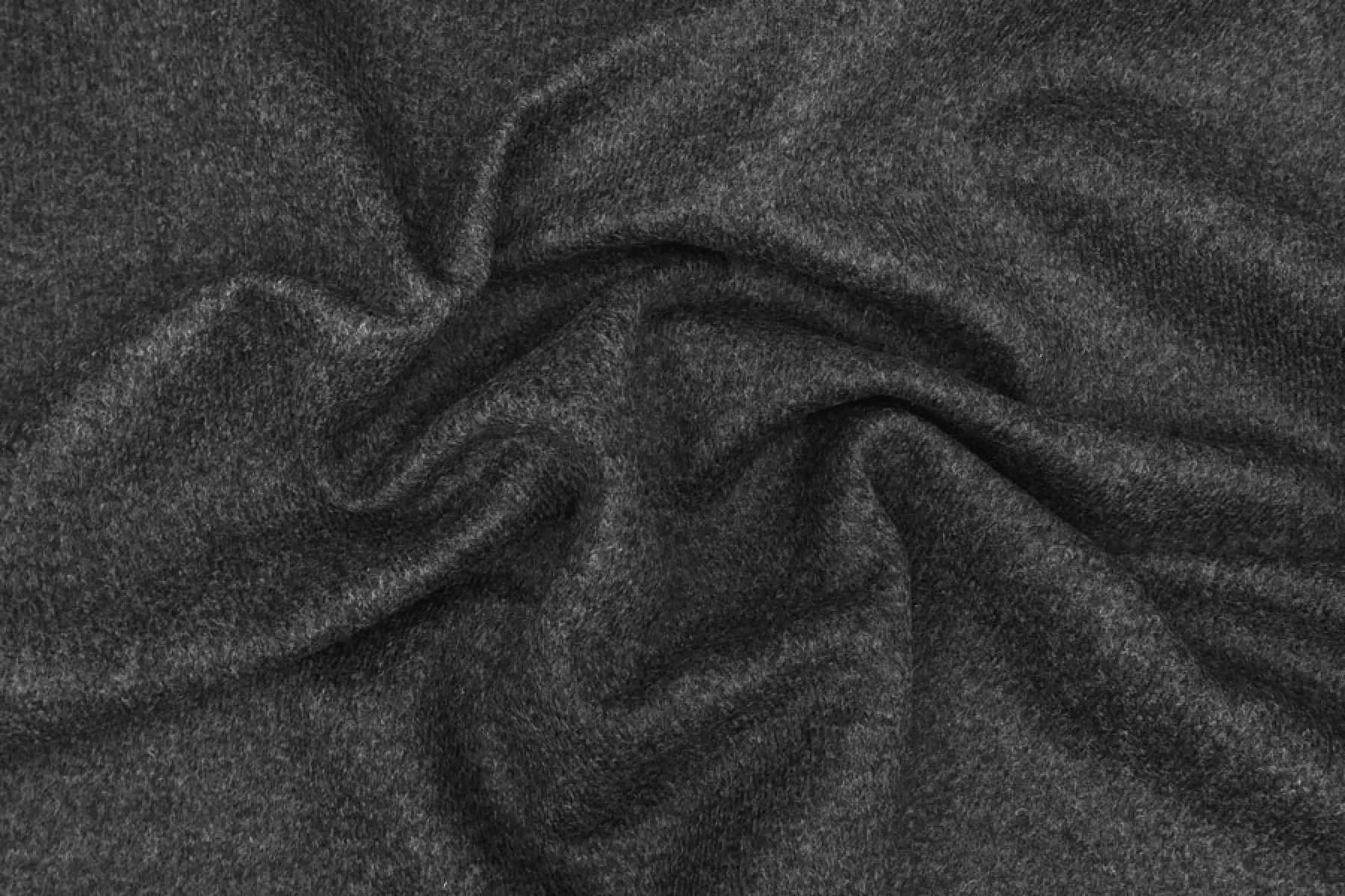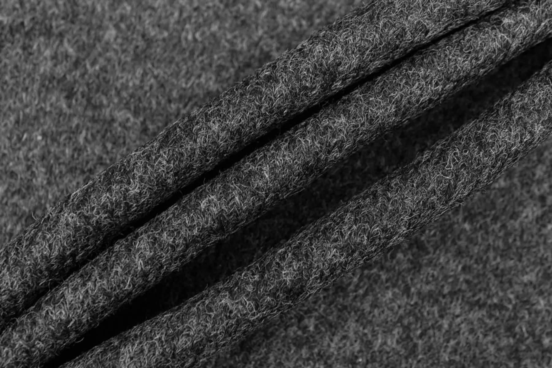 Отличный шерстяной лоден на дублерине плотный пальтовый темно-серого цвета меланж. Суховатый и шероховатый наощупь, с легким прижатым ворсом. Чувствуется, что шерсть, немного колется. Плотный. Очень толстенький, ~5 мм. Не тянется. Не просвечивает. Не мнется. Неплохо держит форму. Не очень пластичный. Идеальный вариант на зимние пальто. Уход деликатный.