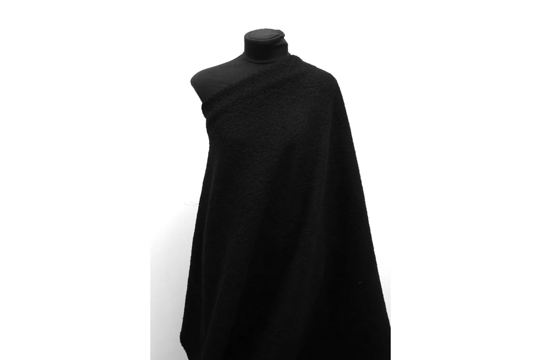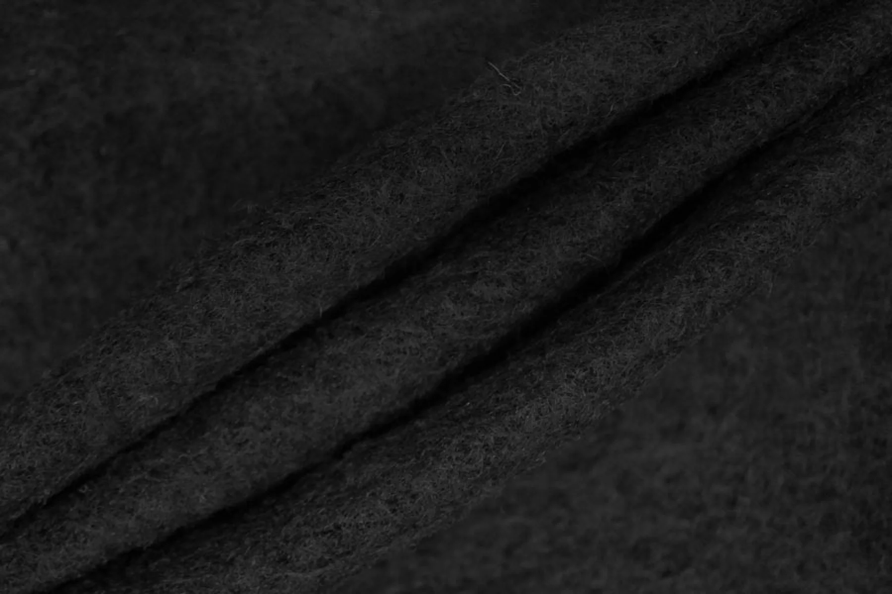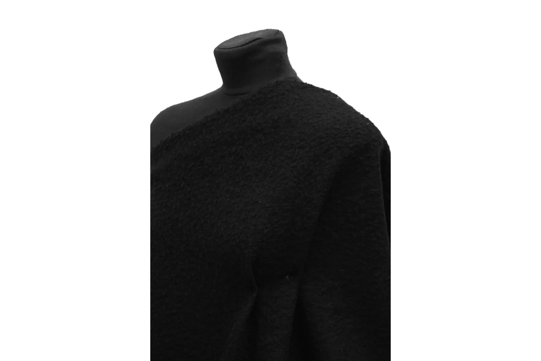 Шерстяной лоден от Stella McCartney в чёрном цвете. Мягкий, слегка суховат. Трикотажное полотно отлично тянется. Ворс свалянный, прижатый, без направления. Не мнется. Форму держит. Отлично подойдет на бомберы, шубки в стиле тедди, демисезонные пальто (лучше утеплить), кардиганы.