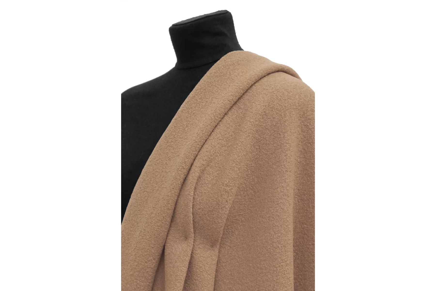 Шикарный пальтово-костюмный шерстяной лоден бежевого оттенка. Тактильно сухой, слегка шероховатый, мягкий, и не колется. Растяжим за счет плетения. Плотненький, около 1-1,5 мм толщиной. Не просвечивает. Слегка сминается, но восстанавливается. Неплохо держит форму и складки, хорошо драпируется. Срезы, как и у любого лодена, не осыпаются. Отличный вариант как для костюма, так и для облегченного пальто, а также пальто-рубашки, жакета и не только. Уход, как за любой шерстью деликатный.